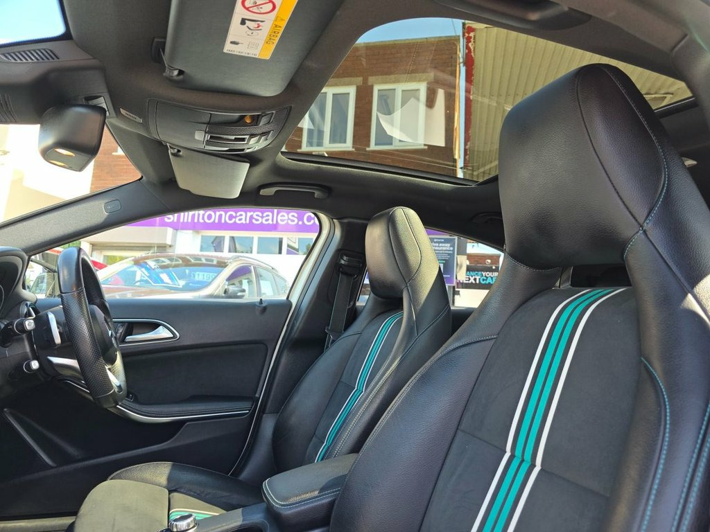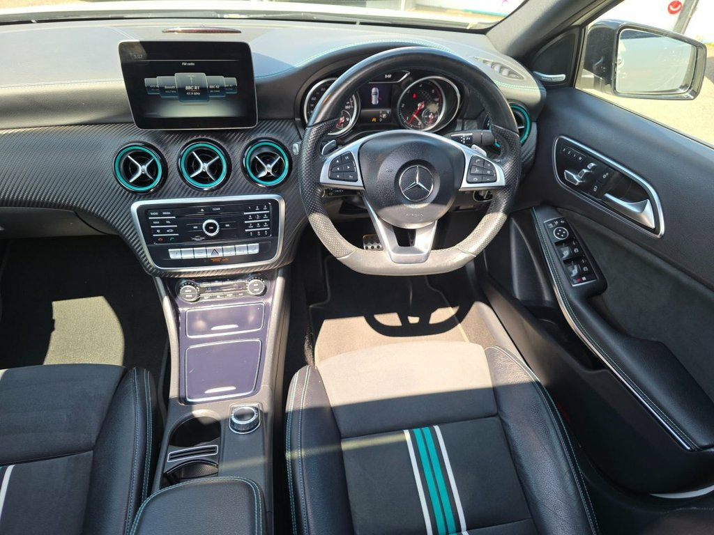 With only two previous owners and a full dealership service history, this 2016 Mercedes-Benz A Class A220d Motorsport Edition is a well-maintained example. The Motorsport Edition trim adds a touch of sporty flair to this practical hatchback, powered by a responsive 2.1L diesel engine that meets Euro 6 emission standards. Enjoy peace of mind with the included 6-month warranty and a clear vehicle history check. The last service was completed on 6th January 2025 at 68,804 miles. Inside, you'll find a host of features designed for comfort and convenience, including heated front seats, THERMOTRONIC luxury automatic climate control with two zones, and a DAB digital radio tuner. The COMAND Online System and Remote Online Services keep you connected on the go. The A220d's acceleration is particularly impressive, reaching 0-60mph in just 7.5 seconds. This brisk performance sets it apart from other vehicles in its class, offering a more engaging driving experience. Remote Online Services, DAB Digital Radio Tuner, COMAND Online System, Leather-DINAMICA - Black with Petrol Gre, Cirrus White, 12V Socket, 12V Socket in Luggage Compartment, 18in Alloy Wheels - AMG Multi-Spoke Pain, 8-inch Frameless Tablet-style Colour Dis, ABS - Anti-Lock Braking System with BAS , AMG Bodystyling - Front and Rear Apron a, ATTENTION Assist, Active Bonnet - Pedestrian Safety Measur, Active Braking Assist, Adaptive Brake Assist with Hold Function, Adaptive Brake Lights, Air Vents with Black Surround - Petrol G, Airbags - Dual Stage - Driver and Front , Airbags - Head and Sidebags - Driver and, Airbags - Windowbags for Driver and Fron, Alarm System with Immobiliser and Interi,