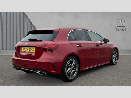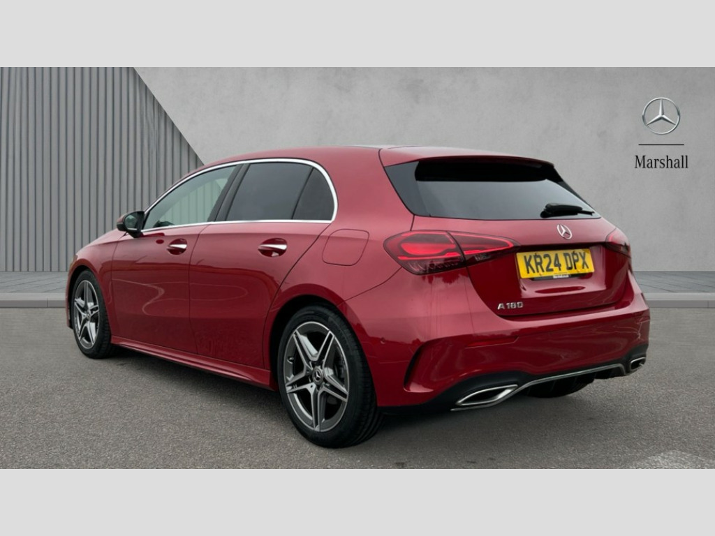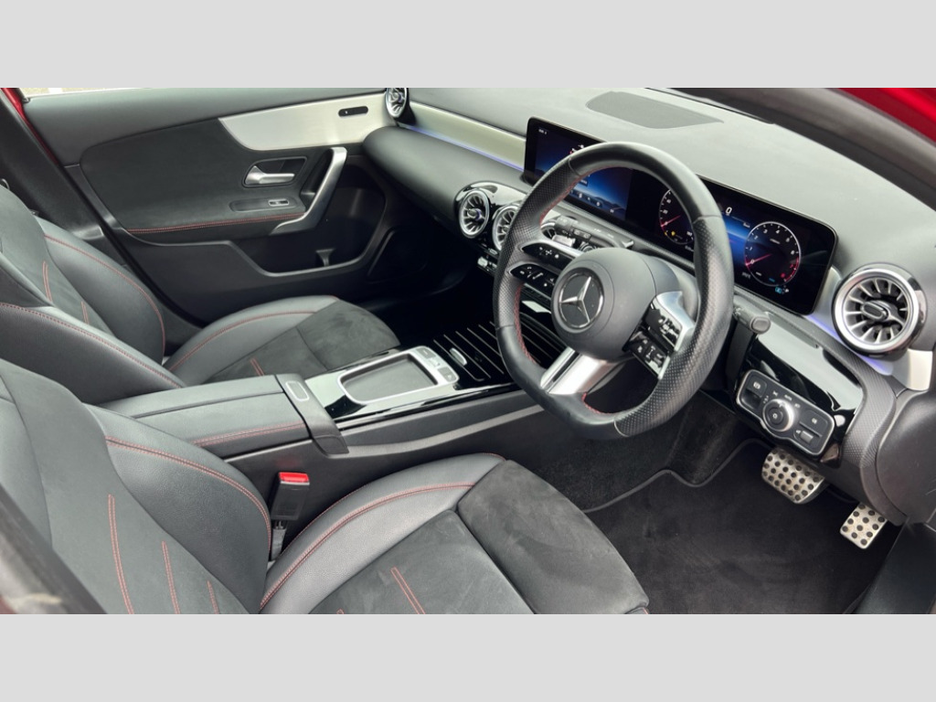Terms and conditions apply 10.25 inch touchscreen central media display, 10.25" Digital instrument cluster display screen, Attention assist, Brake pad wear indicator warning light, Car wash mode, Cruise control + speed limiter, Direct steering, Direction indicators with lane change function, Dual bluetooth interfaces, DYNAMIC SELECT with a choice of driving modes (ECO, Comfort, Sport and Individual), Easy pack tailgate hands-free access, ECO start/stop function, Engine start/stop button, Fluid level warning indicator for fuel, oil, coolant and washer fluid, Fluorescent jacket for driver, Hard-disk navigation, Hey Mercedes Voice activation, Lamp failure indicator, Lane keeping system, Mercedes me connect including emergency call system, accident recovery, breakdown and maintenance management, Mercedes me remote services, Outside temperature gauge, Owners manual in English, Pre-installation of private car share, Preinstallation for Mercedes Benz link, Remote boot closing, Service indicator (ASSYST), Smartphone integration with Apple CarPlay and Android auto, Speed limit assist, Speed sensitive power steering, Tailgate, Trip computer in multifunction display with current consumption indicator, Wireless charging, Lowered comfort suspension, DAB Digital radio, MBUX multimedia system, Mercedes Benz sound system (100 W) with 6 speakers, 4 Electric Front and Rear windows, Adaptive brake lights, AMG body styling - AMG front apron with front splitter and AMG rear apron and visible exhaust tailpipe trim elements, Body colour bumpers, Body colour door handles with chrome inserts, Body colour side skirt, Body coloured door mirrors, Chrome beltline strips, Diamond radiator grille with pins in fine star pattern, Electric adjustable and heated door mirrors with integrated LED side indicators, Exhaust system with 2 visible tailpipe trim elements and rear apron, Headlamp assist automatic headlamp activation, Heat insulating dark tinted rear and rear side windows, Heated glass rear windscreen + timer control, LED High level third brake light, LED High Performance headlamps including integral LED daytime running lamps and adaptive highbeam assist, LED tail lamp, Privacy glass, Radio aerial, Rain sensing windscreen wipers with two sensitivity settings, Rear fog lights, Rear side wing doors, Rear windscreen wiper, Window line trim strip in chrome, 3 seat bench in 2nd row, 3 Spoke flat bottom leather multi function steering wheel with perforated leather in grip area, 4 way lumbar support, 40:20:40 split folding rear seats, Air conditioning - One zone THERMATIC automatic climate control with automatically controlled air distribution, AMG floor mats, Automatic child seat recognition sensor, Black air vents with surround in silver chrome, Black roof lining, Brushed stainless steel sports pedals with rubber studs, Front centre armrest with stowage, Front door sills with Mercedes Benz lettering, Front seat backs luggage nets, Galvanished gear shift paddles on steering wheel, Heated front seats, Height/reach adjustable steering column, Interior lighting - 64 colour Ambient lighting, Interior mirror with reading lamps in black and frameless, Rear armrest with 2 cupholders, Seat occupancy sensor for front passenger seat, Single front passenger seat, Sports seats with integrated headrests, Stowage compartment in centre console with retractable cover, Sunvisors with illuminated vanity mirrors, Twin front cupholders, Light and sight pack - A Class, Mirror package - A Class, Parking pack - A Class, Seat comfort pack - A Class, USB pack plus - A Class, 3 rear 3 point seatbelts, ABS with Brake Assist, Active bonnet, Active brake assist includes forward collision warning system with autonomous braking, Adaptive brake assist with hold function and hill start assist, Black seatbelts, Bonnet with power domes, Childproof locks manually operated for rear doors and electrically operated for rear power windows, Crash responsive emergency lighting, Driver and passenger head and side airbags, Drivers knee airbag, Dual stage driver/passenger airbags, Electronic parking brake, ESP curve dynamic assist, ESP with ASR, Front and rear seatbelt reminder, ISOFIX and top tether child seat fixing points in two outer rear seats, Tyre pressure monitoring system, Warning triangle and first aid kit, Window airbags, Alarm system/interior protection/immobiliser, Guard 360 degree vehicle protection, Keyless entry lock/unlock, Keyless Go, Remote central locking and crash sensor with emergency opening function, Light longitudinal grain aluminium trim, 18" AMG 5 twin spoke light alloy wheels,aerodynamically optimised, painted in termolite grey with high sheen finish, Summer tyres, Tirefit sealant kit