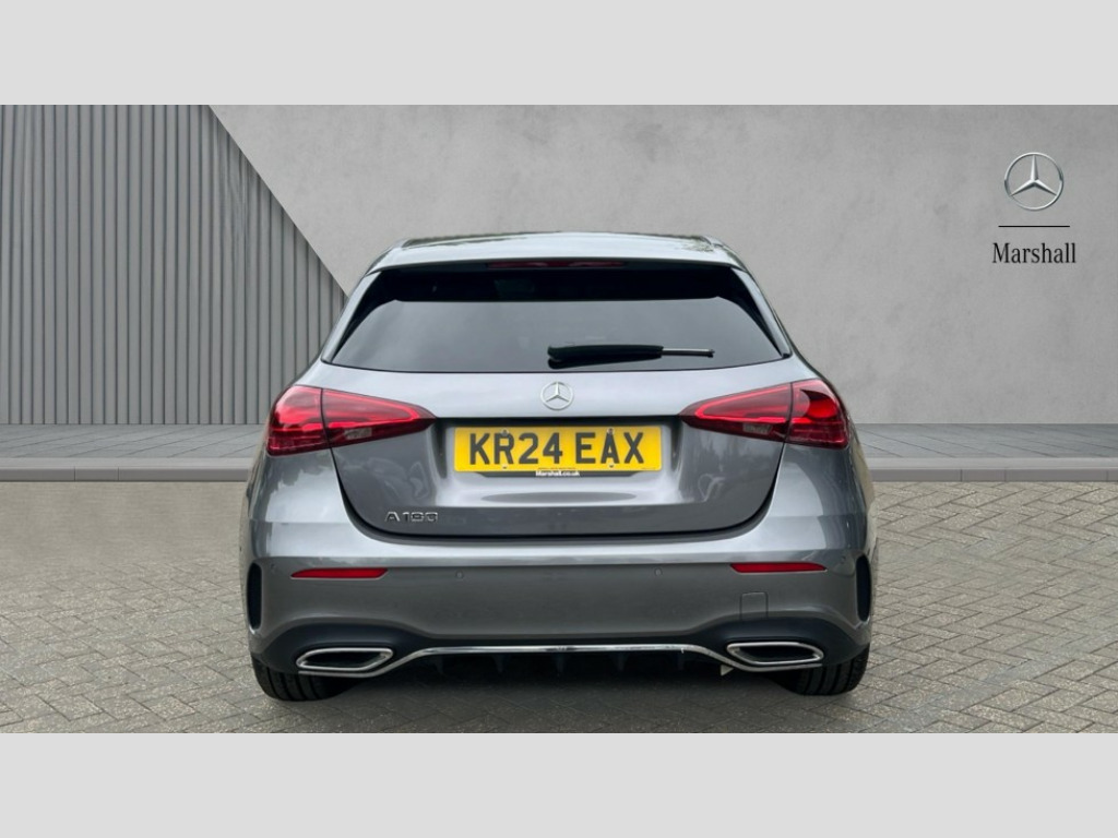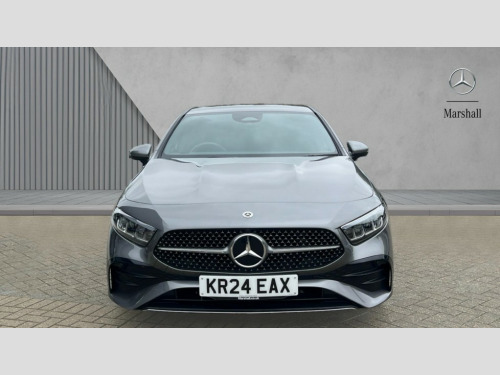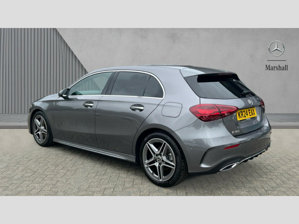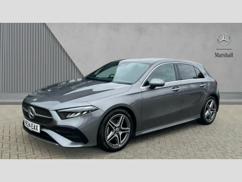 Mercedes-Benz A Class A180 AMG Line Executive 5dr Auto 10.25 inch touchscreen central media display, 10.25" Digital instrument cluster display screen, Attention assist, Brake pad wear indicator warning light, Car wash mode, Cruise control + speed limiter, Direct steering, Direction indicators with lane change function, Dual bluetooth interfaces, DYNAMIC SELECT with a choice of driving modes (ECO, Comfort, Sport and Individual), Easy pack tailgate hands-free access, ECO start/stop function, Engine start/stop button, Fluid level warning indicator for fuel, oil, coolant and washer fluid, Fluorescent jacket for driver, Hard-disk navigation, Hey Mercedes Voice activation, Lamp failure indicator, Lane keeping system, Mercedes me connect including emergency call system, accident recovery, breakdown and maintenance management, Mercedes me remote services, Outside temperature gauge, Owners manual in English, Pre-installation of private car share, Preinstallation for Mercedes Benz link, Remote boot closing, Service indicator (ASSYST), Smartphone integration with Apple CarPlay and Android auto, Speed limit assist, Speed sensitive power steering, Tailgate, Trip computer in multifunction display with current consumption indicator, Wireless charging, Lowered comfort suspension, DAB Digital radio, MBUX multimedia system, Mercedes Benz sound system (100 W) with 6 speakers, 4 Electric Front and Rear windows, Adaptive brake lights, AMG body styling - AMG front apron with front splitter and AMG rear apron and visible exhaust tailpipe trim elements, Body colour bumpers, Body colour door handles with chrome inserts, Body colour side skirt, Body coloured door mirrors, Chrome beltline strips, Diamond radiator grille with pins in fine star pattern, Electric adjustable and heated door mirrors with integrated LED side indicators, Exhaust system with 2 visible tailpipe trim elements and rear apron, Headlamp assist automatic headlamp activation, Heat insulating dark tinted rear and rear side windows, Heated glass rear windscreen + timer control, LED High level third brake light, LED High Performance headlamps including integral LED daytime running lamps and adaptive highbeam assist, LED tail lamp, Privacy glass, Radio aerial, Rain sensing windscreen wipers with two sensitivity settings, Rear fog lights, Rear side wing doors, Rear windscreen wiper, Window line trim strip in chrome, 3 seat bench in 2nd row, 3 Spoke flat bottom leather multi function steering wheel with perforated leather in grip area, 4 way lumbar support, 40:20:40 split folding rear seats, Air conditioning - One zone THERMATIC automatic climate control with automatically controlled air distribution, AMG floor mats, Automatic child seat recognition sensor, Black air vents with surround in silver chrome, Black roof lining, Brushed stainless steel sports pedals with rubber studs, Front centre armrest with stowage, Front door sills with Mercedes Benz lettering, Front seat backs luggage nets, Galvanished gear shift paddles on steering wheel, Heated front seats, Height/reach adjustable steering column, Interior lighting - 64 colour Ambient lighting, Interior mirror with reading lamps in black and frameless, Rear armrest with 2 cupholders, Seat occupancy sensor for front passenger seat, Single front passenger seat, Sports seats with integrated headrests, Stowage compartment in centre console with retractable cover, Sunvisors with illuminated vanity mirrors, Twin front cupholders, Light and sight pack - A Class, Mirror package - A Class, Parking pack - A Class, Seat comfort pack - A Class, USB pack plus - A Class, 3 rear 3 point seatbelts, ABS with Brake Assist, Active bonnet, Active brake assist includes forward collision warning system with autonomous braking, Adaptive brake assist with hold function and hill start assist, Black seatbelts, Bonnet with power domes, Childproof locks manually operated for rear doors and electrically operated for rear power windows, Crash responsive emergency lighting, Driver and passenger head and side airbags, Drivers knee airbag, Dual stage driver/passenger airbags, Electronic parking brake, ESP curve dynamic assist, ESP with ASR, Front and rear seatbelt reminder, ISOFIX and top tether child seat fixing points in two outer rear seats, Tyre pressure monitoring system, Warning triangle and first aid kit, Window airbags, Alarm system/interior protection/immobiliser, Guard 360 degree vehicle protection, Keyless entry lock/unlock, Keyless Go, Remote central locking and crash sensor with emergency opening function, Light longitudinal grain aluminium trim, 18" AMG 5 twin spoke light alloy wheels,aerodynamically optimised, painted in termolite grey with high sheen finish, Summer tyres, Tirefit sealant kit