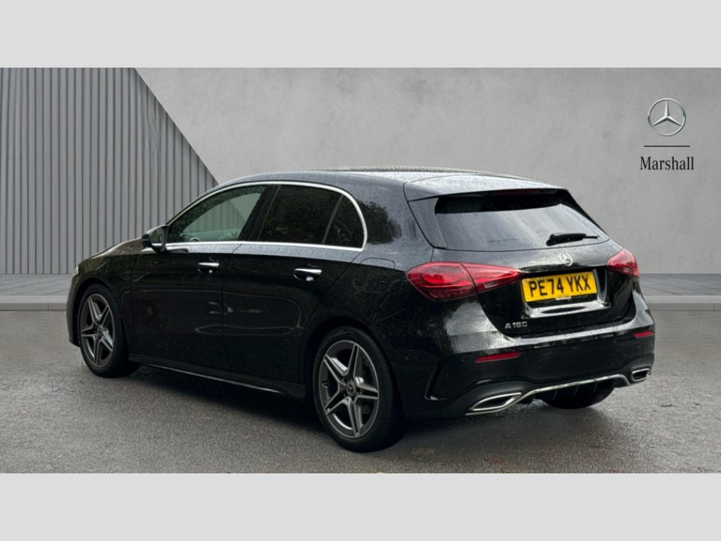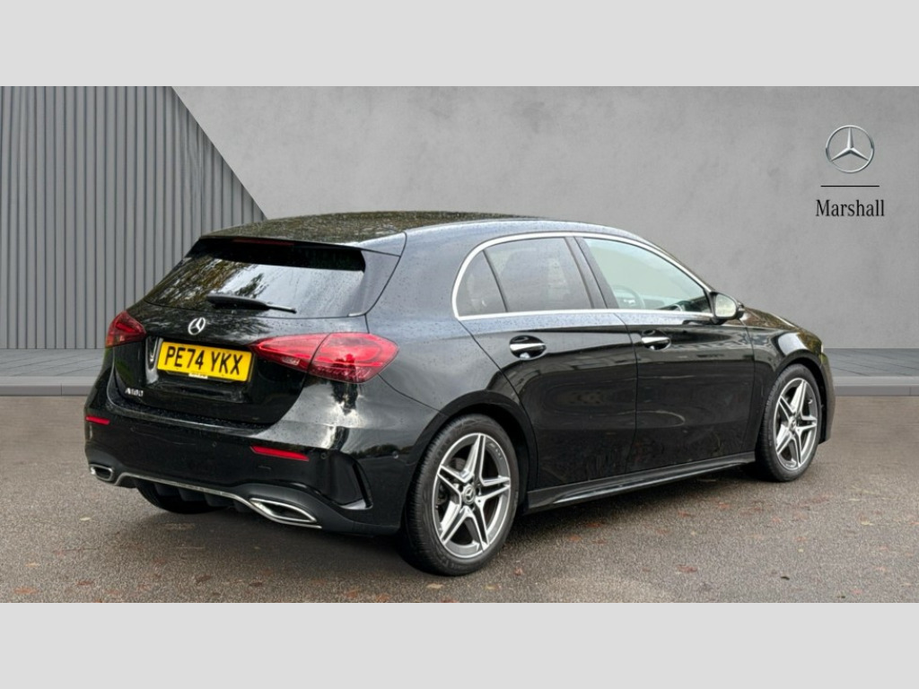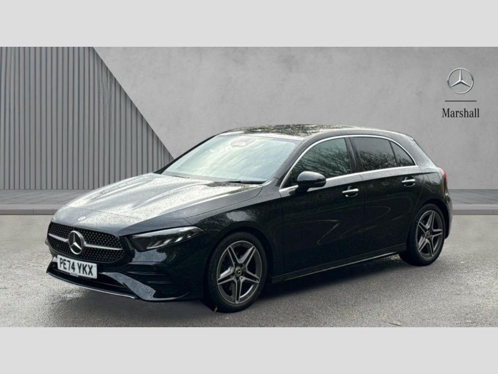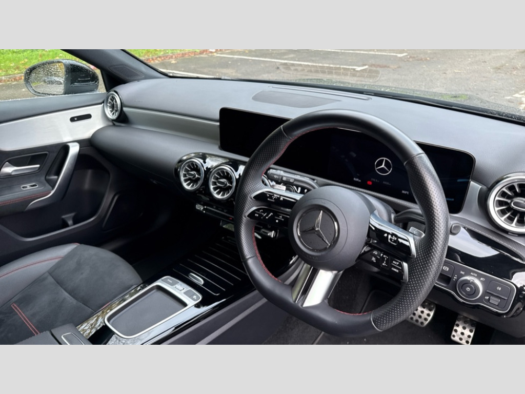 Mercedes-Benz A Class A180 AMG Line Executive 5dr Auto 10.25 inch touchscreen central media display, 10.25" Digital instrument cluster display screen, Attention assist, Blind spot assist, Brake pad wear indicator warning light, Car wash mode, Cruise control + speed limiter, Direct steering, Direction indicators with lane change function, Dual bluetooth interfaces, DYNAMIC SELECT with a choice of driving modes (ECO, Comfort, Sport and Individual), Easy pack tailgate hands-free access, ECO start/stop function, Engine start/stop button, Fingerprint scanner, Fluid level warning indicator for fuel, oil, coolant and washer fluid, Fluorescent jacket for driver, Hard-disk navigation, Hey Mercedes Voice activation, Lamp failure indicator, Lane keeping system, Mercedes me connect including emergency call system, accident recovery, breakdown and maintenance management, Mercedes me remote services, Outside temperature gauge, Owners manual in English, Pre-installation of private car share, Preinstallation for Mercedes Benz link, Remote boot closing, Service indicator (ASSYST), Smartphone integration with Apple CarPlay and Android auto, Speed limit assist, Speed sensitive power steering, Tailgate, Trip computer in multifunction display with current consumption indicator, Wireless charging, Lowered comfort suspension, DAB Digital radio, MBUX multimedia system, Mercedes Benz sound system (100 W) with 6 speakers, 4 Electric Front and Rear windows, Adaptive brake lights, AMG body styling - AMG front apron with front splitter and AMG rear apron and visible exhaust tailpipe trim elements, Body colour bumpers, Body colour door handles with chrome inserts, Body colour side skirt, Body coloured door mirrors, Chrome beltline strips, Diamond radiator grille with pins in fine star pattern, Electric adjustable and heated door mirrors with integrated LED side indicators, Exhaust system with 2 visible tailpipe trim elements and rear apron, Headlamp assist automatic headlamp activation, Heat insulating dark tinted rear and rear side windows, Heated glass rear windscreen + timer control, LED High level third brake light, LED High Performance headlamps including integral LED daytime running lamps and adaptive highbeam assist, LED tail lamp, Privacy glass, Radio aerial, Rain sensing windscreen wipers with two sensitivity settings, Rear fog lights, Rear side wing doors, Rear windscreen wiper, Window line trim strip in chrome, 3 seat bench in 2nd row, 3 Spoke flat bottom leather multi function steering wheel with perforated leather in grip area, 4 way lumbar support, 40:20:40 split folding rear seats, Air conditioning - One zone THERMATIC automatic climate control with automatically controlled air distribution, AMG floor mats, Automatic child seat recognition sensor, Black air vents with surround in silver chrome, Black roof lining, Brushed stainless steel sports pedals with rubber studs, Front centre armrest with stowage, Front door sills with Mercedes Benz lettering, Front seat backs luggage nets, Galvanished gear shift paddles on steering wheel, Heated front seats, Height/reach adjustable steering column, Interior lighting - 64 colour Ambient lighting, Interior mirror with reading lamps in black and frameless, Rear armrest with 2 cupholders, Seat occupancy sensor for front passenger seat, Single front passenger seat, Sports seats with integrated headrests, Stowage compartment in centre console with retractable cover, Sunvisors with illuminated vanity mirrors, Twin front cupholders, Light and sight package - A Class, Mirror package - A Class, Parking pack with 180 degree view - A Class, Seat comfort pack - A Class, USB pack plus - A Class, 3 rear 3 point seatbelts, ABS with Brake Assist, Active bonnet, Active brake assist includes forward collision warning system with autonomous braking, Adaptive brake assist with hold function and hill start assist, Black seatbelts, Bonnet with power domes, Childproof locks manually operated for rear doors and electrically operated for rear power windows, Crash responsive emergency lighting, Driver and passenger head and side airbags, Drivers knee airbag, Dual stage driver/passenger airbags, Electronic parking brake, ESP curve dynamic assist, ESP with ASR, Front and rear seatbelt reminder, ISOFIX and top tether child seat fixing points in two outer rear seats, Tyre pressure monitoring system, Warning triangle and first aid kit, Window airbags, Alarm system/interior protection/immobiliser, Guard 360 degree vehicle protection, Keyless entry lock/unlock, Keyless Go, Remote central locking and crash sensor with emergency opening function, Light longitudinal grain aluminium trim, 18" AMG 5 twin spoke light alloy wheels,aerodynamically optimised, painted in black with high sheen finish, Summer tyres, Tirefit sealant kit
