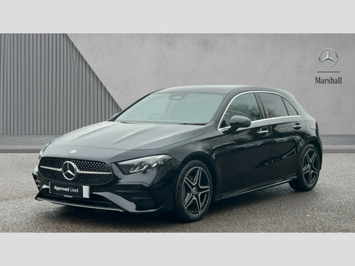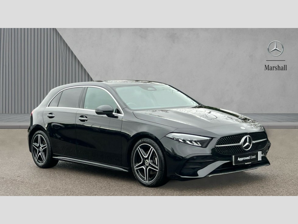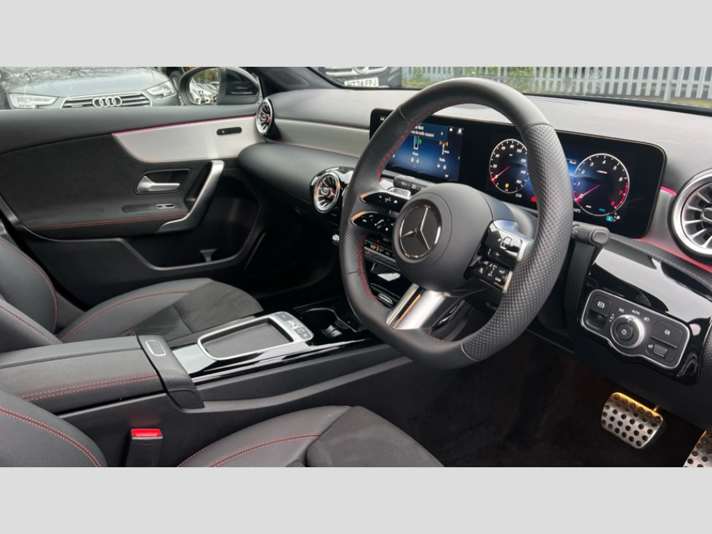 Mercedes-Benz A Class A180 AMG Line Executive 5dr Auto 10.25 inch touchscreen central media display, 10.25" Digital instrument cluster display screen, Attention assist, Blind spot assist, Brake pad wear indicator warning light, Car wash mode, Cruise control + speed limiter, Direct steering, Direction indicators with lane change function, Dual bluetooth interfaces, DYNAMIC SELECT with a choice of driving modes (ECO, Comfort, Sport and Individual), ECO start/stop function, Engine start/stop button, Fingerprint scanner, Fluid level warning indicator for fuel, oil, coolant and washer fluid, Fluorescent jacket for driver, Hard-disk navigation, Hey Mercedes Voice activation, Lamp failure indicator, Lane keeping system, Mercedes me connect including emergency call system, accident recovery, breakdown and maintenance management, Mercedes me remote services, Outside temperature gauge, Owners manual in English, Pre-installation of private car share, Remote boot closing, Service indicator (ASSYST), Smartphone integration with Apple CarPlay and Android auto, Speed limit assist, Speed sensitive power steering, Tailgate, Trip computer in multifunction display with current consumption indicator, Wireless charging, Lowered comfort suspension, DAB Digital radio, MBUX multimedia system, Mercedes Benz sound system (100 W) with 6 speakers, 4 Electric Front and Rear windows, Adaptive brake lights, AMG body styling - AMG front apron with front splitter and AMG rear apron and visible exhaust tailpipe trim elements, Body colour bumpers, Body colour door handles with chrome inserts, Body colour side skirt, Chrome beltline strips, Diamond radiator grille with pins in fine star pattern, Electric adjustable and heated door mirrors with integrated LED side indicators, Exhaust system with 2 visible tailpipe trim elements and rear apron, Headlamp assist automatic headlamp activation, Heated glass rear windscreen + timer control, LED High level third brake light, LED High Performance headlamps including integral LED daytime running lamps and adaptive highbeam assist, LED tail lamp, Privacy glass, Radio aerial, Rain sensing windscreen wipers with two sensitivity settings, Rear fog lights, Rear side wing doors, Rear windscreen wiper, Window line trim strip in chrome, 3 seat bench in 2nd row, 3 Spoke flat bottom leather multi function steering wheel with perforated leather in grip area, 4 way lumbar support, 40:20:40 split folding rear seats, Air conditioning - One zone THERMATIC automatic climate control with automatically controlled air distribution, AMG floor mats, Artico man-made leather/Microcut microfibre upholstery, Automatic child seat recognition sensor, Black air vents with surround in silver chrome, Black roof lining, Brushed stainless steel sports pedals with rubber studs, Front centre armrest with stowage, Front door sills with Mercedes Benz lettering, Front seat backs luggage nets, Galvanished gear shift paddles on steering wheel, Heated front seats, Height/reach adjustable steering column, Interior lighting - 64 colour Ambient lighting, Interior mirror with reading lamps in black and frameless, Rear armrest with 2 cupholders, Rear head restraints, Seat occupancy sensor for front passenger seat, Single front passenger seat, Sports seats with integrated headrests, Stowage compartment in centre console with retractable cover, Sunvisors with illuminated vanity mirrors, Twin front cupholders, Light and sight package - A Class, Mirror package - A Class, Parking pack with 180 degree view - A Class, Seat comfort pack - A Class, USB pack plus - A Class, 3 rear 3 point seatbelts, ABS with Brake Assist, Active bonnet, Active brake assist includes forward collision warning system with autonomous braking, Adaptive brake assist with hold function and hill start assist, Black seatbelts, Bonnet with power domes, Childproof locks manually operated for rear doors and electrically operated for rear power windows, Crash responsive emergency lighting, Driver and passenger head and side airbags, Drivers knee airbag, Dual stage driver/passenger airbags, Electronic parking brake, ESP curve dynamic assist, ESP with ASR, Front and rear seatbelt reminder, ISOFIX and top tether child seat fixing points in two outer rear seats, Tyre pressure monitoring system, Warning triangle and first aid kit, Window airbags, Alarm system/interior protection/immobiliser, Guard 360 degree vehicle protection, Keyless entry lock/unlock, Keyless Go, Remote central locking and crash sensor with emergency opening function, Light longitudinal grain aluminium trim, 18" AMG 5 twin spoke light alloy wheels,aerodynamically optimised, painted in black with high sheen finish, Summer tyres, Tirefit sealant kit