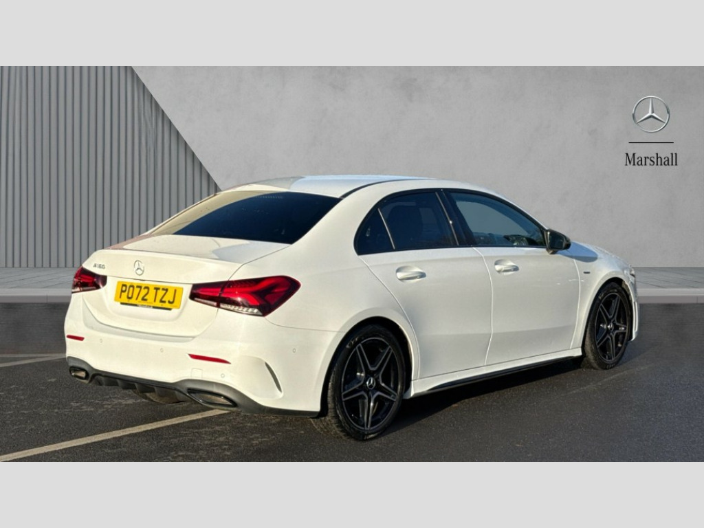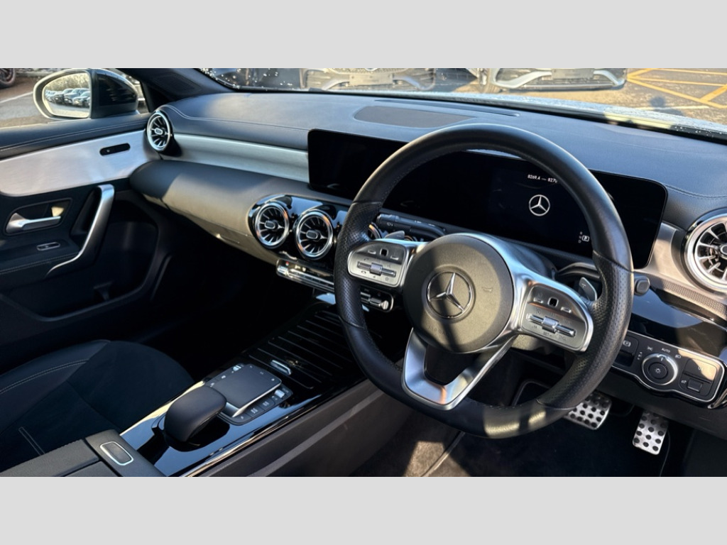 Mercedes-Benz A Class A180 AMG Line Executive Edition 4dr Auto 10.25" media display, 180 degree rear view camera with parking guidelines, 7" colour screen in instrument panel, Active parking assist with visual and audible warning of detected obstacles, Attention assist, Brake pad wear indicator warning light, Car wash mode, Cruise control + speed limiter, Direct steering, Dual bluetooth interfaces, DYNAMIC SELECT with a choice of driving modes (ECO, Comfort, Sport and Individual), ECO start/stop function, Fluid level warning indicator for fuel, oil, coolant and washer fluid, Hard-disk navigation, Hey Mercedes Voice activation, Lamp failure indicator, Lane keeping system, Mercedes me connect including emergency call system, accident recovery, breakdown and maintenance management, Mercedes me remote services, Outside temperature gauge, Owners manual in English, Pre-installation for private car sharing, Preinstallation for Mercedes Benz link, Service indicator (ASSYST), Smartphone integration with Apple CarPlay and Android auto, Speed sensitive power steering, Trip computer, Ultrasonic sensors positioned in the front and rear bumpers, Lowered comfort suspension, Rear axle torsion beam, 2 USB ports (type C) in rear stowage compartment and one in front of center console, 6 speakers, DAB Digital radio, MBUX multimedia system with DAB digital radio and touchpad including satellite navigation, Mercedes-Benz sound system - 100W, 4 Electric Front and Rear windows, Adaptive brake lights, AMG bodystyling - Front apron with splitter in chrome, rear apron with chrome trim and chrome visible trim elements in tailpipe, Automatic headlights, Black weather strip, Body colour bumpers, Body colour door handles, Body colour side skirt, Body coloured door mirrors, Electric adjustable and heated door mirrors with integrated LED side indicators, Exclusive diamond radiator grille, Exhaust system - Twin visible tailpipes in polished stainless steel, Headlamp assist automatic headlamp activation, Heated glass rear windscreen + timer control, High gloss black beltline, LED high performance headlamps with integrated LED daytime running lights, LED tail lamp, Privacy glass, Radio aerial, Rain sensing windscreen wipers with two sensitivity settings, Rear boot, Rear fog lights, Rear side wing doors, Third brake light featuring LED technology, Window line trim strip in high gloss black, 3 seat bench in 2nd row, 3 Spoke flat bottom leather multi function steering wheel with perforated leather in grip area, 40:20:40 split folding rear seats, Artico man-made leather/Microfibre Dinamica upholstery with contrast stitching in light grey, Auto Mercedes-Benz child seat recognition sensor, Black air vents with surround in silver chrome, Black roof lining, Brushed stainless steel sports pedals with rubber studs, Controller on centre console with chrome surround, Floor mats with black top stitching and embroidered edition logo and piping in light grey, Front centre armrest with storage compartment, Front door sills with Mercedes Benz lettering, Front seat backs luggage nets, Front seat cushion length adjustment, Front sports seats with adjustable head restraints, Galvanished gear shift paddles on steering wheel, Heated front seats, Height/reach adjustable steering column, Interior lighting - 64 colour Ambient lighting, Interior mirror with reading lamps in black and frameless, Manual height adjustable front seats, Rear head restraints, Seat occupancy sensor for front passenger seat, Single front passenger seat, Stowage compartment in centre console with retractable cover, Sunvisors with illuminated vanity mirrors, Touchpad on center console, Twin front cupholders, Two zone thermotronic luxury automatic climate control, Light and sight pack - A Class, Mirror package - A Class, Night pack - A Class Saloon/Hatchback, Seat comfort pack - A Class, 3 rear 3 point seatbelts, ABS with Brake Assist, Active bonnet, Active brake assist includes forward collision warning system with autonomous braking, Adaptive brake assist with hold function and hill start assist, Black seatbelts, Childproof locks manually operated for rear doors and electrically operated for rear power windows, Crash responsive emergency lighting, Driver and passenger head and side airbags, Drivers knee airbag, Dual stage driver/passenger airbags, Electronic parking brake, ESP curve dynamic assist, ESP with ASR, Front and rear seatbelt reminder, Front brake callipers with Mercedes Benz lettering, ISOFIX and top tether child seat fixing points in two outer rear seats, Tyre pressure monitoring system, Warning triangle and first aid kit, Window airbags, Alarm system/interior protection/immobiliser, Keyless Go, Remote central locking and crash sensor with emergency opening function, Urban guard vehicle protection system with immobiliser and interior protection, Matrix look light longitudinal grain aluminium trim element, 18" AMG 5 twin spoke light alloy wheels aerodynamically optimised painted in black with highsheen finish, Summer tyres, Tirefit sealant kit