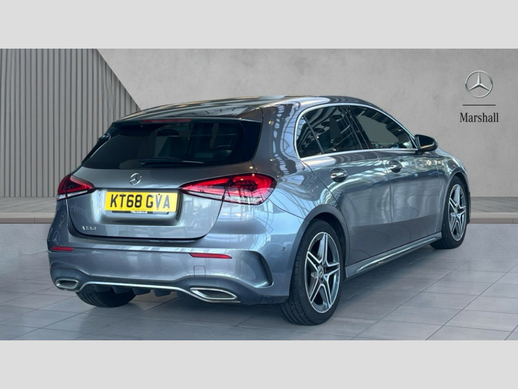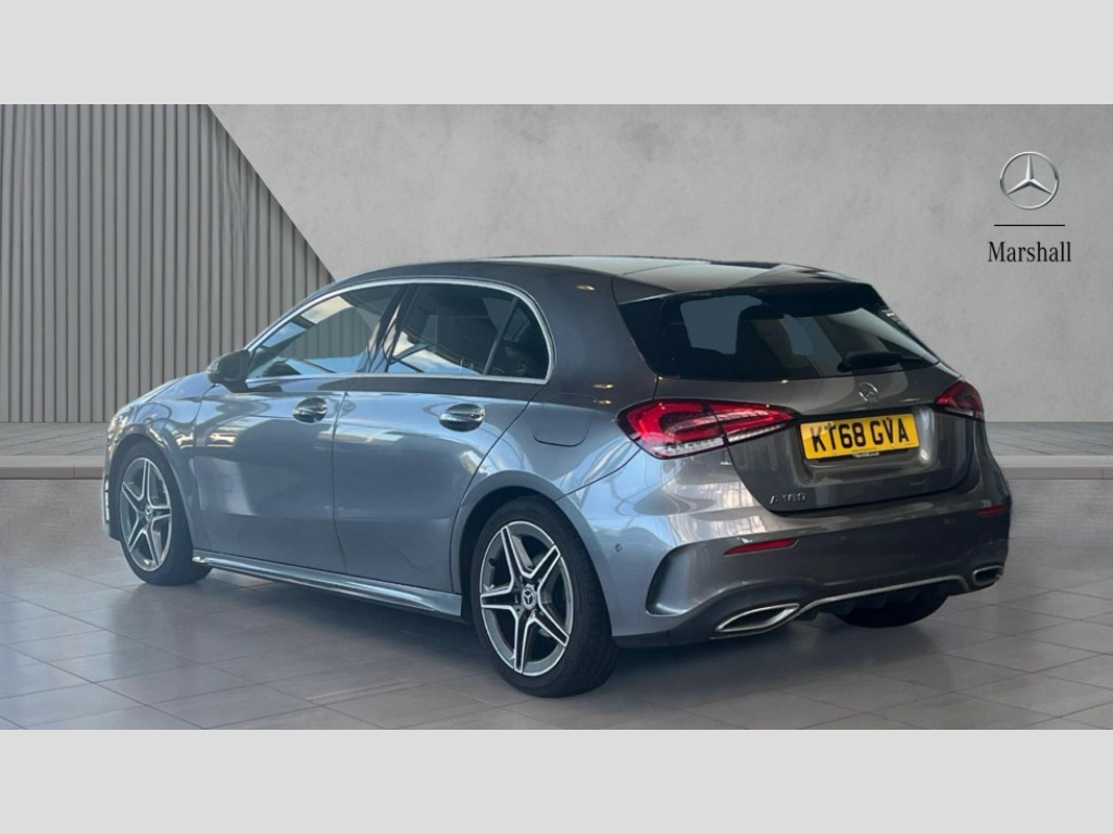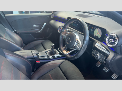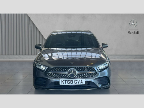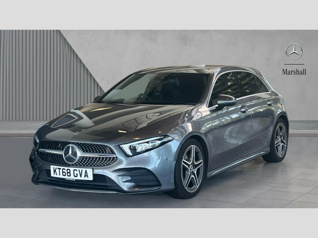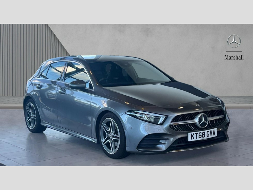 Mercedes-Benz A Class A180 AMG Line Premium 5dr 10.25" Digital instrument cluster display screen, 10.25" media display, 180 degree rear view camera with parking guidelines, Active lane keep assist, Active park assist with parktronic system including front and rear parking sensors, Attention assist, Brake pad wear indicator warning light, Cruise control + speed limiter, Direct steering, Direction indicators with lane change function, DYNAMIC SELECT with a choice of driving modes (ECO, Comfort, Sport, Sport+ and Individual), Fluid level warning indicator for fuel, oil, coolant and washer fluid, Hard-disk navigation, Lamp failure indicator, Mercedes me connect including emergency call system, accident recovery, breakdown and maintenance management, Outside temperature gauge, Radio aerial integrated into roof spoiler, Service indicator (ASSYST), Speed sensitive power steering, Stop/start system, Trip computer, Voice activation, Lowered comfort suspension, DAB Digital radio, Dual bluetooth interface, 2 USB ports (type C), MBUX multimedia system with DAB digital radio and touchpad including satellite navigation, Mid-range sound system, Active aerodynamics with AIRPANEL in the front apron, Adaptive brake lights, AMG front, rear apron and side skirts, Blue tinted glass, Body colour bumpers, Body colour door handles, Body colour side skirt, Body coloured door mirrors, Chrome beltline trim, Diamond radiator grille with chrome pins and silver louvre + chrome insert, Electric adjustable and heated door mirrors with integrated LED side indicators, Electric front windows, Electric rear windows, Exhaust system - Twin trapezoidal tailpipes in polished stainless steel, Headlamp assist automatic headlamp activation, Heated glass rear windscreen + timer control, LED high performance headlamps with integrated LED daytime running lights, LED tail lamp, LED third brake light, Rain sensor windscreen wipers, Rear fog lights, Rear wiper, 12V socket, 3 Spoke flat bottom leather multi function steering wheel with perforated leather in grip area, 40:20:40 split folding rear seats, Air vents surround and cruciform nozzle in silver chrome, AMG floor mats with red stitching, Artico man-made leather/Microfibre Dinamica upholstery with red contrast stitching, Auto Mercedes-Benz child seat recognition sensor, Black roof lining, Brushed stainless steel sports pedals with rubber studs, Controller on centre console with chrome surround, Cup holder and stowage compartment lighting, Front centre armrest with storage compartment, Front door sills with Mercedes Benz lettering, Front footwell lights, Front reading lamps, Front seat backs luggage nets, Front seat cushion length adjustment, Front signal exit lamp, Front vanity lights, Handle recess/closing light, Heated front seats, Height/reach adjustable steering column, Illuminated door sills, Illuminated glovebox, Interior lighting - 64 colour Ambient lighting, ISOFIX Child seat top tethers and anchor fixings, Load securing rings in luggage compartment, Luggage compartment cover, Manual height adjustable front seats, Oddments tray lighting, Rear armrest, Rear head restraints, Rear Reading Lamps, Seat occupancy sensor for front passenger seat, Sports seats with integrated headrests, Storage compartment under load area floor, Sunvisors with illuminated vanity mirrors, Touchpad, Touchpad illumination, Twin front cupholders, Two zone thermotronic luxury automatic climate control, Mirror package - A Class, Seat comfort pack - A Class, 3 rear 3 point seatbelts, ABS with Brake Assist, Active bonnet, Active brake assist includes forward collision warning system with autonomous braking, Adaptive brake assist with hold function and hill start assist, Black seatbelts, Brake calipers with Mercedes-Benz lettering + perforated brake discs, Childproof locks manually operated for rear doors and electrically operated for rear power windows, Crash responsive emergency lighting, Driver and passenger head and side airbags, Drivers knee airbag, Dual stage driver/passenger airbags, Electronic parking brake, ESP curve dynamic assist, ESP with ASR, Front and rear seatbelt reminder, Tyre pressure monitoring system, Warning triangle and first aid kit, Window airbags, Alarm system/interior protection/immobiliser, Keyless Go Lock/Unlock function, Remote central locking and crash sensor with emergency opening function, 18" AMG 5 twin spoke light alloy wheels in titanium grey with highsheen finish, Tirefit sealant kit