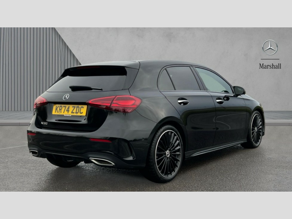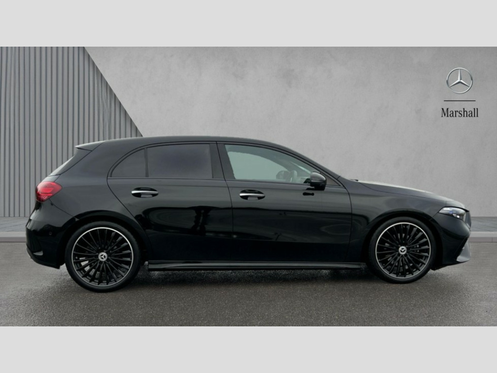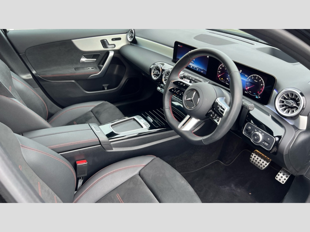 Mercedes-Benz A Class A180 AMG Line Premium 5dr Auto 10.25 inch touchscreen central media display, 10.25" Digital instrument cluster display screen, Attention assist, Blind spot assist, Brake pad wear indicator warning light, Car wash mode, Cruise control + speed limiter, Direct steering, Direction indicators with lane change function, Dual bluetooth interfaces, DYNAMIC SELECT with a choice of driving modes (ECO, Comfort, Sport and Individual), Easy pack tailgate hands-free access, ECO start/stop function, Engine start/stop button, Fingerprint scanner, Fluid level warning indicator for fuel, oil, coolant and washer fluid, Fluorescent jacket for driver, Hard-disk navigation, Hey Mercedes Voice activation, Lamp failure indicator, Lane keeping system, Mercedes me connect including emergency call system, accident recovery, breakdown and maintenance management, Mercedes me remote services, Outside temperature gauge, Owners manual in English, Pre-installation of private car share, Preinstallation for Mercedes Benz link, Remote boot closing, Service indicator (ASSYST), Smartphone integration with Apple CarPlay and Android auto, Speed limit assist, Speed sensitive power steering, Tailgate, Trip computer in multifunction display with current consumption indicator, Wireless charging, Lowered comfort suspension, DAB Digital radio, MBUX multimedia system, Mercedes Benz advanced sound system (225 W) with 10 speakers, 1 central speaker, speakers on doors, a tweeter on door,one sub woofer + boost amplifier, 4 Electric Front and Rear windows, Adaptive brake lights, AMG body styling - AMG front apron with front splitter and AMG rear apron and visible exhaust tailpipe trim elements, Body colour bumpers, Body colour door handles with chrome inserts, Body colour side skirt, Body coloured door mirrors, Chrome beltline strips, Diamond radiator grille with pins in fine star pattern, Electric adjustable and heated door mirrors with integrated LED side indicators, Exhaust system with 2 visible tailpipe trim elements and rear apron, Headlamp assist automatic headlamp activation, Heat insulating dark tinted rear and rear side windows, Heated glass rear windscreen + timer control, LED High level third brake light, LED High Performance headlamps including integral LED daytime running lamps and adaptive highbeam assist, LED tail lamp, Privacy glass, Radio aerial, Rain sensing windscreen wipers with two sensitivity settings, Rear fog lights, Rear side wing doors, Rear windscreen wiper, Window line trim strip in chrome, 3 seat bench in 2nd row, 3 Spoke flat bottom leather multi function steering wheel with perforated leather in grip area, 40:20:40 split folding rear seats, Air conditioning - Two zone thermotronic luxury automatic climate control with display, AMG floor mats, Automatic child seat recognition sensor, Black air vents with surround in silver chrome, Black roof lining, Brushed stainless steel sports pedals with rubber studs, Electrically adjustable front memory seats including lumbar support and backrest inclination, Front centre armrest with stowage, Front seat backs luggage nets, Galvanished gear shift paddles on steering wheel, Heated front seats, Height/reach adjustable steering column, Illuminated Mercedes Benz lettering front door sills with changeable cover, Interior lighting - 64 colour Ambient lighting, Interior mirror with reading lamps in black and frameless, Rear armrest with 2 cupholders, Seat occupancy sensor for front passenger seat, Single front passenger seat, Sports seats with integrated headrests, Stowage compartment in centre console with retractable cover, Sunvisors with illuminated vanity mirrors, Twin front cupholders, Light and sight package - A Class, Mirror package - A Class, Parking pack with 180 degree view - A Class, Seat comfort pack - A Class, USB pack plus - A Class, 3 rear 3 point seatbelts, ABS with Brake Assist, Active bonnet, Active brake assist includes forward collision warning system with autonomous braking, Adaptive brake assist with hold function and hill start assist, Black seatbelts, Bonnet with power domes, Childproof locks manually operated for rear doors and electrically operated for rear power windows, Crash responsive emergency lighting, Driver and passenger head and side airbags, Drivers knee airbag, Dual stage driver/passenger airbags, Electronic parking brake, ESP curve dynamic assist, ESP with ASR, Front and rear seatbelt reminder, ISOFIX and top tether child seat fixing points in two outer rear seats, Tyre pressure monitoring system, Warning triangle and first aid kit, Window airbags, Alarm system/interior protection/immobiliser, Guard 360 degree vehicle protection, Keyless entry lock/unlock, Keyless Go, Remote central locking and crash sensor with emergency opening function, Light longitudinal grain aluminium trim, 19" AMG multi-spoke light alloy wheels,aerodynamically optimised, painted in titanium grey with high sheen finish, Summer tyres, Tirefit sealant kit