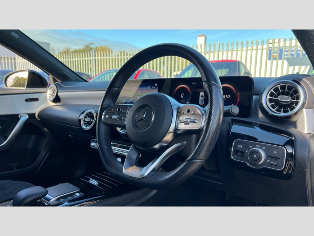 Mercedes-Benz A Class A180 AMG Line Premium Edition 5dr Auto 10.25" Digital instrument cluster display screen, 10.25" media display, 180 degree rear view camera with parking guidelines, Active parking assist with visual and audible warning of detected obstacles, Attention assist, Brake pad wear indicator warning light, Car wash mode, Cruise control + speed limiter, Direct steering, Dual bluetooth interfaces, DYNAMIC SELECT with a choice of driving modes (ECO, Comfort, Sport and Individual), ECO start/stop function, Fluid level warning indicator for fuel, oil, coolant and washer fluid, Hard-disk navigation, Hey Mercedes Voice activation, Lamp failure indicator, Lane keeping system, Mercedes me connect including emergency call system, accident recovery, breakdown and maintenance management, Mercedes me remote services, Outside temperature gauge, Owners manual in English, Pre-installation for private car sharing, Preinstallation for Mercedes Benz link, Service indicator (ASSYST), Smartphone integration with Apple CarPlay and Android auto, Speed sensitive power steering, Trip computer, Ultrasonic sensors positioned in the front and rear bumpers, Lowered comfort suspension, Rear axle torsion beam, 10 speakers, 2 USB ports (type C) in rear stowage compartment and one in front of center console, DAB Digital radio, MBUX multimedia system with DAB digital radio and touchpad including satellite navigation, Mercedes-Benz sound system - 100W, 4 Electric Front and Rear windows, Adaptive brake lights, AMG bodystyling - Front apron with splitter in chrome, rear apron with chrome trim and chrome visible trim elements in tailpipe, Automatic headlights, Black weather strip, Body colour bumpers, Body colour door handles, Body colour side skirt, Body coloured door mirrors, Electric adjustable and heated door mirrors with integrated LED side indicators, Exclusive diamond radiator grille, Exhaust system - Twin visible tailpipes in polished stainless steel, Headlamp assist automatic headlamp activation, Heated glass rear windscreen + timer control, High gloss black beltline, LED High level third brake light, LED high performance headlamps with integrated LED daytime running lights, LED tail lamp, Privacy glass, Radio aerial, Rain sensing windscreen wipers with two sensitivity settings, Rear fog lights, Rear side wing doors, Rear wiper, Window line trim strip in high gloss black, 3 seat bench in 2nd row, 3 Spoke flat bottom leather multi function steering wheel with perforated leather in grip area, 40:20:40 split folding rear seats, Artico man-made leather/Microfibre Dinamica upholstery with contrast stitching in light grey, Auto Mercedes-Benz child seat recognition sensor, Black air vents with surround in silver chrome, Black roof lining, Brushed stainless steel sports pedals with rubber studs, Controller on centre console with chrome surround, Floor mats with black top stitching and embroidered edition logo and piping in light grey, Front centre armrest with storage compartment, Front seat backs luggage nets, Front seat cushion length adjustment, Galvanished gear shift paddles on steering wheel, Heated front seats, Height/reach adjustable steering column, Illuminated front door sills with changeable cover, Interior lighting - 64 colour Ambient lighting, Interior mirror with reading lamps in black and frameless, Manual height adjustable front seats, Rear armrest with 2 cupholders, Rear head restraints, Seat occupancy sensor for front passenger seat, Single front passenger seat, Sports seats with integrated headrests, Stowage compartment in centre console with retractable cover, Sunvisors with illuminated vanity mirrors, Touchpad on center console, Twin front cupholders, Two zone thermotronic luxury automatic climate control, Light and sight pack - A Class, Mirror package - A Class, Night pack - A Class Saloon/Hatchback, Seat comfort pack - A Class, 3 rear 3 point seatbelts, ABS with Brake Assist, Active bonnet, Active brake assist includes forward collision warning system with autonomous braking, Adaptive brake assist with hold function and hill start assist, Black seatbelts, Childproof locks manually operated for rear doors and electrically operated for rear power windows, Crash responsive emergency lighting, Driver and passenger head and side airbags, Drivers knee airbag, Dual stage driver/passenger airbags, Electronic parking brake, ESP curve dynamic assist, ESP with ASR, Front and rear seatbelt reminder, Front brake callipers with Mercedes Benz lettering, ISOFIX and top tether child seat fixing points in two outer rear seats, Tyre pressure monitoring system, Warning triangle and first aid kit, Window airbags, Alarm system/interior protection/immobiliser, Keyless entry lock/unlock, Keyless Go, Remote central locking and crash sensor with emergency opening function, Urban guard vehicle protection system with immobiliser and interior protection, Matrix look light longitudinal grain aluminium trim element, 18" AMG 5 twin spoke light alloy wheels aerodynamically optimised painted in black with highsheen finish, Summer tyres, Tirefit sealant kit