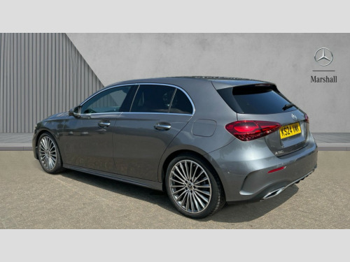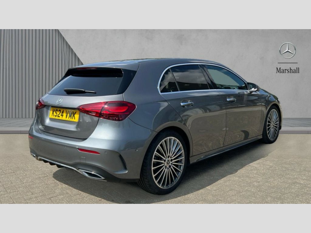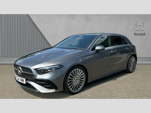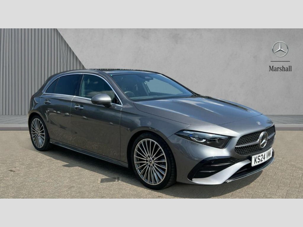Mercedes-Benz A Class A180 AMG Line Premium Plus 5dr Auto 10.25 inch touchscreen central media display, 10.25" Digital instrument cluster display screen, Attention assist, Brake pad wear indicator warning light, Car wash mode, Direct steering, Direction indicators with lane change function, Dual bluetooth interfaces, DYNAMIC SELECT with a choice of driving modes (ECO, Comfort, Sport and Individual), Easy pack tailgate hands-free access, ECO start/stop function, Engine start/stop button, Fluid level warning indicator for fuel, oil, coolant and washer fluid, Fluorescent jacket for driver, Hard-disk navigation, Head up Display, Hey Mercedes Voice activation, Lamp failure indicator, MBUX augmented reality for navigation, MBUX Interior assistant, Mercedes me connect including emergency call system, accident recovery, breakdown and maintenance management, Mercedes me remote services, Outside temperature gauge, Owners manual in English, Pre-installation of private car share, Preinstallation for Mercedes Benz link, Remote boot closing, Service indicator (ASSYST), Smartphone integration with Apple CarPlay and Android auto, Speed sensitive power steering, Tailgate, Traffic sign assist, Trip computer in multifunction display with current consumption indicator, Wireless charging, Lowered comfort suspension, DAB Digital radio, MBUX multimedia system, Mercedes Benz advanced sound system (225 W) with 10 speakers, 1 central speaker, speakers on doors, a tweeter on door,one sub woofer + boost amplifier, 4 Electric Front and Rear windows, Adaptive brake lights, AMG body styling - AMG front apron with front splitter and AMG rear apron and visible exhaust tailpipe trim elements, Body colour bumpers, Body colour door handles with chrome inserts, Body colour side skirt, Body coloured door mirrors, Chrome beltline strips, Diamond radiator grille with pins in fine star pattern, Electric adjustable and heated door mirrors with integrated LED side indicators, Exhaust system with 2 visible tailpipe trim elements and rear apron, Headlamp assist automatic headlamp activation, Heat insulating dark tinted rear and rear side windows, Heated glass rear windscreen + timer control, LED daytime running lights, LED High level third brake light, LED tail lamp, Multibeam LED headlamps with adaptive highbeam assist and cornering function, Panoramic sliding sunroof, Privacy glass, Radio aerial, Rain sensing windscreen wipers with two sensitivity settings, Rear fog lights, Rear side wing doors, Rear windscreen wiper, Surround lighting with logo projection, Window line trim strip in chrome, 3 seat bench in 2nd row, 3 Spoke flat bottom leather multi function steering wheel with perforated leather in grip area, 40:20:40 split folding rear seats, Air conditioning - Two zone thermotronic luxury automatic climate control with display, AMG floor mats, Automatic child seat recognition sensor, Black air vents with surround in silver chrome, Black roof lining, Brushed stainless steel sports pedals with rubber studs, Electrically adjustable front memory seats including lumbar support and backrest inclination, Front centre armrest with stowage, Front seat backs luggage nets, Galvanished gear shift paddles on steering wheel, Heated front seats, Height/reach adjustable steering column, Illuminated Mercedes Benz lettering front door sills with changeable cover, Interior lighting - 64 colour Ambient lighting, Interior mirror with reading lamps in black and frameless, Rear armrest with 2 cupholders, Seat occupancy sensor for front passenger seat, Single front passenger seat, Sports seats with integrated headrests, Stowage compartment in centre console with retractable cover, Sunvisors with illuminated vanity mirrors, Twin front cupholders, Light and sight pack - A Class, Mirror package - A Class, Parking pack with 360 degree camera - A Class, Seat comfort pack - A Class, USB pack plus - A Class, 3 rear 3 point seatbelts, ABS with Brake Assist, Active bonnet, Adaptive brake assist with hold function and hill start assist, Black seatbelts, Bonnet with power domes, Childproof locks manually operated for rear doors and electrically operated for rear power windows, Crash responsive emergency lighting, Driver and passenger head and side airbags, Drivers knee airbag, Dual stage driver/passenger airbags, Electronic parking brake, ESP curve dynamic assist, ESP with ASR, Exit warning, Front and rear seatbelt reminder, ISOFIX and top tether child seat fixing points in two outer rear seats, Tyre pressure monitoring system, Warning triangle and first aid kit, Window airbags, Alarm system/interior protection/immobiliser, Guard 360 degree vehicle protection, Keyless entry lock/unlock, Keyless Go, Remote central locking and crash sensor with emergency opening function, Light longitudinal grain aluminium trim, 19" AMG multi-spoke light alloy wheels,aerodynamically optimised, painted in titanium grey with high sheen finish, Summer tyres, Tirefit sealant kit