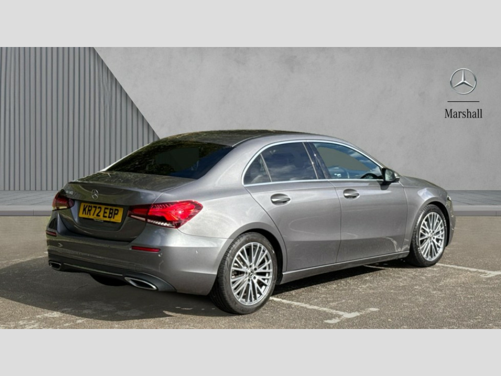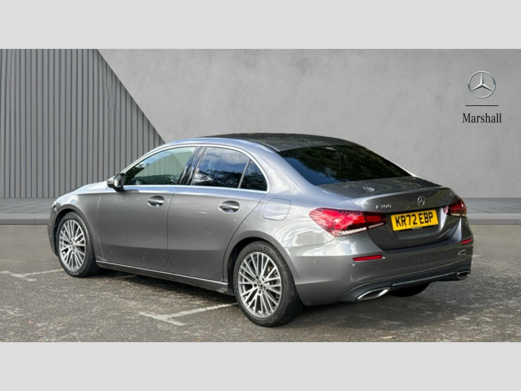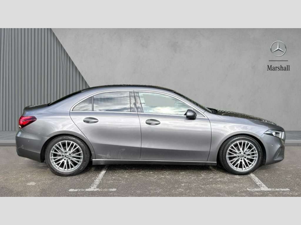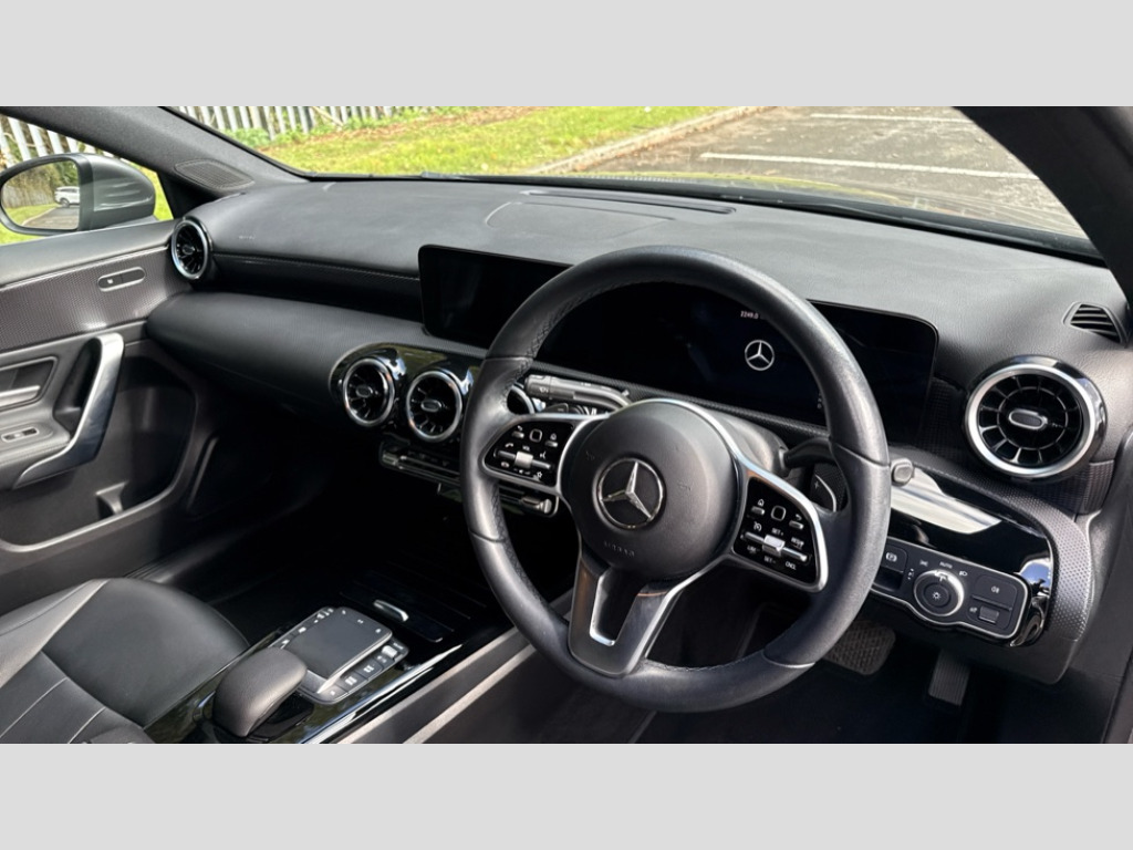 Mercedes-Benz A Class A180 Sport Executive 4dr Auto 10.25" media display, 180 degree rear view camera with parking guidelines, 7" colour screen in instrument panel, Active parking assist with visual and audible warning of detected obstacles, Attention assist, Brake pad wear indicator warning light, Car wash mode, Cruise control + speed limiter, Direct steering, Dual bluetooth interfaces, DYNAMIC SELECT with a choice of driving modes (ECO, Comfort, Sport and Individual), ECO start/stop function, Fluid level warning indicator for fuel, oil, coolant and washer fluid, Hard-disk navigation, Hey Mercedes Voice activation, Lamp failure indicator, Lane keeping system, Mercedes me connect including emergency call system, accident recovery, breakdown and maintenance management, Mercedes me remote services, Outside temperature gauge, Owners manual in English, Pre-installation for private car sharing, Preinstallation for Mercedes Benz link, Service indicator (ASSYST), Smartphone integration with Apple CarPlay and Android auto, Speed limit assist, Speed sensitive power steering, Trip computer, Ultrasonic sensors positioned in the front and rear bumpers, Lowered comfort suspension, Rear axle torsion beam, 2 USB ports (type C) in rear stowage compartment and one in front of center console, 6 speakers, DAB Digital radio, MBUX multimedia system with DAB digital radio and touchpad including satellite navigation, Mercedes-Benz sound system - 100W, 4 Electric Front and Rear windows, Adaptive brake lights, Automatic headlights, Black weather strip, Body colour bumpers, Body colour door handles with chrome inserts, Body colour side skirt, Body coloured door mirrors, Chrome beltline trim, Diamond radiator grille with black pins with one louvre in silver + chrome insert, Electric adjustable and heated door mirrors with integrated LED side indicators, Exhaust system - Twin visible tailpipes in polished stainless steel, Headlamp assist automatic headlamp activation, Heated glass rear windscreen + timer control, LED high performance headlamps with integrated LED daytime running lights, LED tail lamp, Privacy glass, Radio aerial, Rain sensing windscreen wipers with two sensitivity settings, Rear boot, Rear fog lights, Rear side wing doors, Third brake light featuring LED technology, Window line trim strip in chrome, 3 seat bench in 2nd row, 3 Spoke leather multi function steering wheel, 40:20:40 split folding rear seats, Artico man-made leather upholstery, Auto Mercedes-Benz child seat recognition sensor, Black air vents with surround in silver chrome, Black roof lining, Controller on centre console with chrome surround, Front centre armrest with storage compartment, Front comfort seats with adjustable head restraints, Front door sills with Mercedes Benz lettering, Front seat backs luggage nets, Gearshift paddles on steering wheel, Heated front seats, Height/reach adjustable steering column, Interior mirror with reading lamps in black and frameless, Manual height adjustable front seats, Rear head restraints, Seat occupancy sensor for front passenger seat, Single front passenger seat, Stowage compartment in centre console with retractable cover, Sunvisors with illuminated vanity mirrors, Touchpad on center console, Twin front cupholders, Two zone thermotronic luxury automatic climate control, Velour floor mats, Light and sight pack - A Class, Mirror package - A Class, Seat comfort pack - A Class, 3 rear 3 point seatbelts, ABS with Brake Assist, Active bonnet, Active brake assist includes forward collision warning system with autonomous braking, Adaptive brake assist with hold function and hill start assist, Black seatbelts, Childproof locks manually operated for rear doors and electrically operated for rear power windows, Crash responsive emergency lighting, Driver and passenger head and side airbags, Drivers knee airbag, Dual stage driver/passenger airbags, Electronic parking brake, ESP curve dynamic assist, ESP with ASR, Front and rear seatbelt reminder, ISOFIX and top tether child seat fixing points in two outer rear seats, Tyre pressure monitoring system, Warning triangle and first aid kit, Window airbags, Alarm system/interior protection/immobiliser, Keyless Go, Remote central locking and crash sensor with emergency opening function, Urban guard vehicle protection system with immobiliser and interior protection, Dark carbon fibre interior trim, 18" Multi spoke light alloy wheels painted in himalayas grey with high sheen finish, Summer tyres, Tirefit sealant kit
