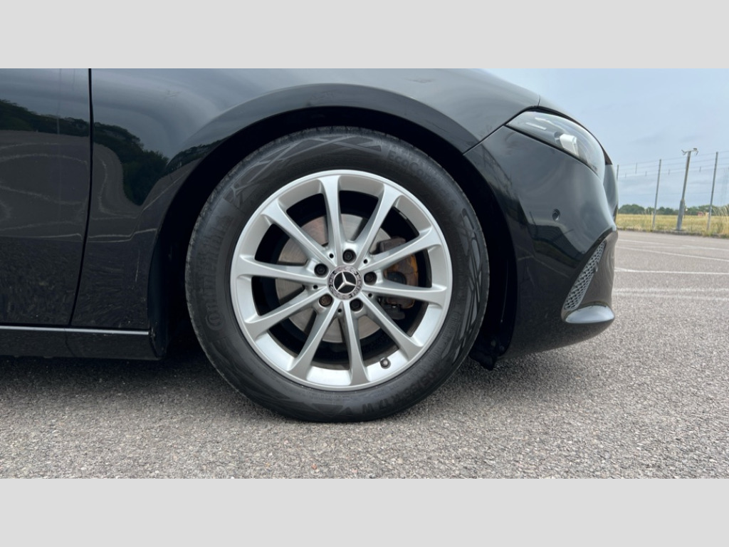 Mercedes-Benz A Class A180 Sport Executive 5dr 10.25" media display, 180 degree rear view camera with parking guidelines, 7" colour screen in instrument panel, Active lane keep assist, Active park assist with parktronic system including front and rear parking sensors, Attention assist, Brake pad wear indicator warning light, Cruise control + speed limiter, Direct steering, Direction indicators with lane change function, DYNAMIC SELECT with a choice of driving modes (ECO, Comfort, Sport, Sport+ and Individual), Fluid level warning indicator for fuel, oil, coolant and washer fluid, Hard-disk navigation, Lamp failure indicator, Mercedes me connect including emergency call system, accident recovery, breakdown and maintenance management, Outside temperature gauge, Radio aerial integrated into roof spoiler, Service indicator (ASSYST), Speed sensitive power steering, Stop/start system, Trip computer, Voice activation, Lowered comfort suspension, DAB Digital radio, Dual bluetooth interface, 2 USB ports (type C), MBUX multimedia system with DAB digital radio and touchpad including satellite navigation, Active aerodynamics with AIRPANEL in the front apron, Adaptive brake lights, Blue tinted glass, Body colour bumpers, Body colour door handles, Body colour side skirt, Body coloured door mirrors, Chrome beltline trim, Chrome weather strip, Diamond radiator grille with black pins with one louvre in silver + chrome insert, Electric adjustable and heated door mirrors with integrated LED side indicators, Electric front windows, Electric rear windows, Exhaust system - Twin trapezoidal tailpipes in polished stainless steel, Headlamp assist automatic headlamp activation, Heated glass rear windscreen + timer control, LED high performance headlamps with integrated LED daytime running lights, LED tail lamp, LED third brake light, Rain sensor windscreen wipers, Rear fog lights, Rear wiper, 12V socket, 3 Spoke leather multi function steering wheel, 40:20:40 split folding rear seats, Air vents surround and cruciform nozzle in silver chrome, Artico man-made leather/Fleron fabric upholstery, Auto Mercedes-Benz child seat recognition sensor, Black roof lining, Controller on centre console with chrome surround, Cup holder and stowage compartment lighting, Floor mats, Front centre armrest with storage compartment, Front comfort seats with adjustable head restraints, Front door sills with Mercedes Benz lettering, Front doors with ambient and signal light, Front footwell lights, Front reading lamps, Front seat backs luggage nets, Front seat cushion length adjustment, Front signal exit lamp, Front vanity lights, Handle recess/closing light, Heated front seats, Height/reach adjustable steering column, Illuminated glovebox, ISOFIX Child seat top tethers and anchor fixings, Load securing rings in luggage compartment, Luggage compartment cover, Manual height adjustable front seats, Oddments tray lighting, Rear head restraints, Rear Reading Lamps, Seat occupancy sensor for front passenger seat, Storage compartment under load area floor, Sunvisors with illuminated vanity mirrors, Touchpad, Touchpad illumination, Twin front cupholders, Two zone thermotronic luxury automatic climate control, Mirror package - A Class, Seat comfort pack - A Class, 3 rear 3 point seatbelts, ABS with Brake Assist, Active bonnet, Active brake assist includes forward collision warning system with autonomous braking, Adaptive brake assist with hold function and hill start assist, Black seatbelts, Childproof locks manually operated for rear doors and electrically operated for rear power windows, Crash responsive emergency lighting, Driver and passenger head and side airbags, Drivers knee airbag, Dual stage driver/passenger airbags, Electronic parking brake, ESP curve dynamic assist, ESP with ASR, Front and rear seatbelt reminder, Tyre pressure monitoring system, Warning triangle and first aid kit, Window airbags, Alarm system/interior protection/immobiliser, Keyless Go, Remote central locking and crash sensor with emergency opening function, Dark carbon fibre interior trim, 17" 10 spoke light alloy wheels painted in vanadium silver, Tirefit sealant kit