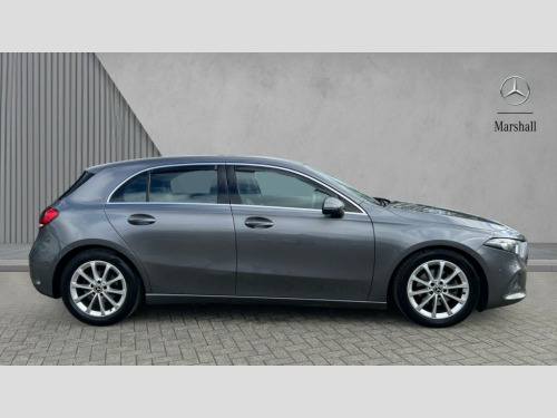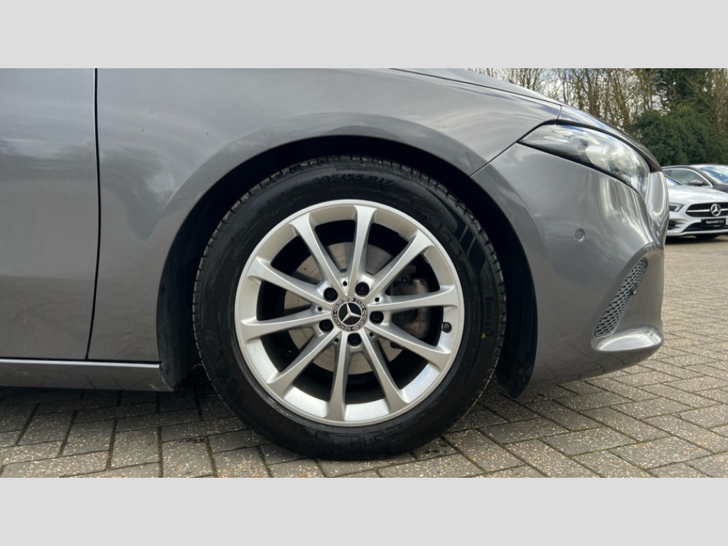 Mercedes-Benz A Class A180 Sport Executive 5dr Auto 10.25" media display, 180 degree rear view camera with parking guidelines, 7" colour screen in instrument panel, Active lane keep assist, Active park assist with parktronic system including front and rear parking sensors, Attention assist, Brake pad wear indicator warning light, Car wash mode, Cruise control + speed limiter, Direct steering, Dual bluetooth interfaces, DYNAMIC SELECT with a choice of driving modes (ECO, Comfort, Sport and Individual), ECO start/stop function, Fluid level warning indicator for fuel, oil, coolant and washer fluid, Hard-disk navigation, Hey Mercedes Voice activation, Lamp failure indicator, Mercedes me connect including emergency call system, accident recovery, breakdown and maintenance management, Outside temperature gauge, Owners manual in English, Pre-installation for private car sharing, Pre-installation for Vehicle Monitoring, Pre-installation for Vehicle Setup, Preinstallation for Mercedes Benz link, Service indicator (ASSYST), Smartphone integration with Apple CarPlay and Android auto, Speed sensitive power steering, Trip computer, Wireless charging, Lowered comfort suspension, Rear axle torsion beam, 2 USB ports (type C) in rear stowage compartment and one in front of center console, 6 speakers, DAB Digital radio, MBUX multimedia system with DAB digital radio and touchpad including satellite navigation, Mercedes-Benz sound system - 100W, 4 Electric Front and Rear windows, Adaptive brake lights, Black weather strip, Body colour bumpers, Body colour door handles, Body colour side skirt, Body coloured door mirrors, Chrome beltline trim, Diamond radiator grille with black pins with one louvre in silver + chrome insert, Electric adjustable and heated door mirrors with integrated LED side indicators, Exhaust system - Twin visible tailpipes in polished stainless steel, Headlamp assist automatic headlamp activation, Heated glass rear windscreen + timer control, LED high performance headlamps with integrated LED daytime running lights, LED tail lamp, LED third brake light, Radio aerial, Rain sensing windscreen wipers with two sensitivity settings, Rear fog lights, Rear wiper, Window line trim strip in chrome, 3 Spoke leather multi function steering wheel, 40:20:40 split folding rear seats, Artico man-made leather/Fleron fabric upholstery, Auto Mercedes-Benz child seat recognition sensor, Black air vents with surround in silver chrome, Black roof lining, Controller on centre console with chrome surround, Front centre armrest with storage compartment, Front comfort seats with adjustable head restraints, Front door sills with Mercedes Benz lettering, Front seat backs luggage nets, Front seat cushion length adjustment, Gearshift paddles on steering wheel, Heated front seats, Height/reach adjustable steering column, Interior mirror with reading lamps in black and frameless, Manual height adjustable front seats, Rear head restraints, Seat occupancy sensor for front passenger seat, Stowage compartment in centre console with retractable cover, Sunvisors with illuminated vanity mirrors, Touchpad on center console, Twin front cupholders, Two zone thermotronic luxury automatic climate control, Velour floor mats, Light and sight pack - A Class, Mirror package - A Class, Seat comfort pack - A Class, 3 rear 3 point seatbelts, ABS with Brake Assist, Active bonnet, Active brake assist includes forward collision warning system with autonomous braking, Adaptive brake assist with hold function and hill start assist, Black seatbelts, Childproof locks manually operated for rear doors and electrically operated for rear power windows, Crash responsive emergency lighting, Driver and passenger head and side airbags, Drivers knee airbag, Dual stage driver/passenger airbags, Electronic parking brake, ESP curve dynamic assist, ESP with ASR, Front and rear seatbelt reminder, ISOFIX and top tether child seat fixing points in two outer rear seats, Tyre pressure monitoring system, Warning triangle and first aid kit, Window airbags, Alarm system/interior protection/immobiliser, Keyless Go, Remote central locking and crash sensor with emergency opening function, Urban guard vehicle protection system with immobiliser and interior protection, Dark carbon fibre interior trim, 17" 5 twin spoke light alloy wheels painted in matt black with a high sheen finish, Summer tyres, Tirefit sealant kit
