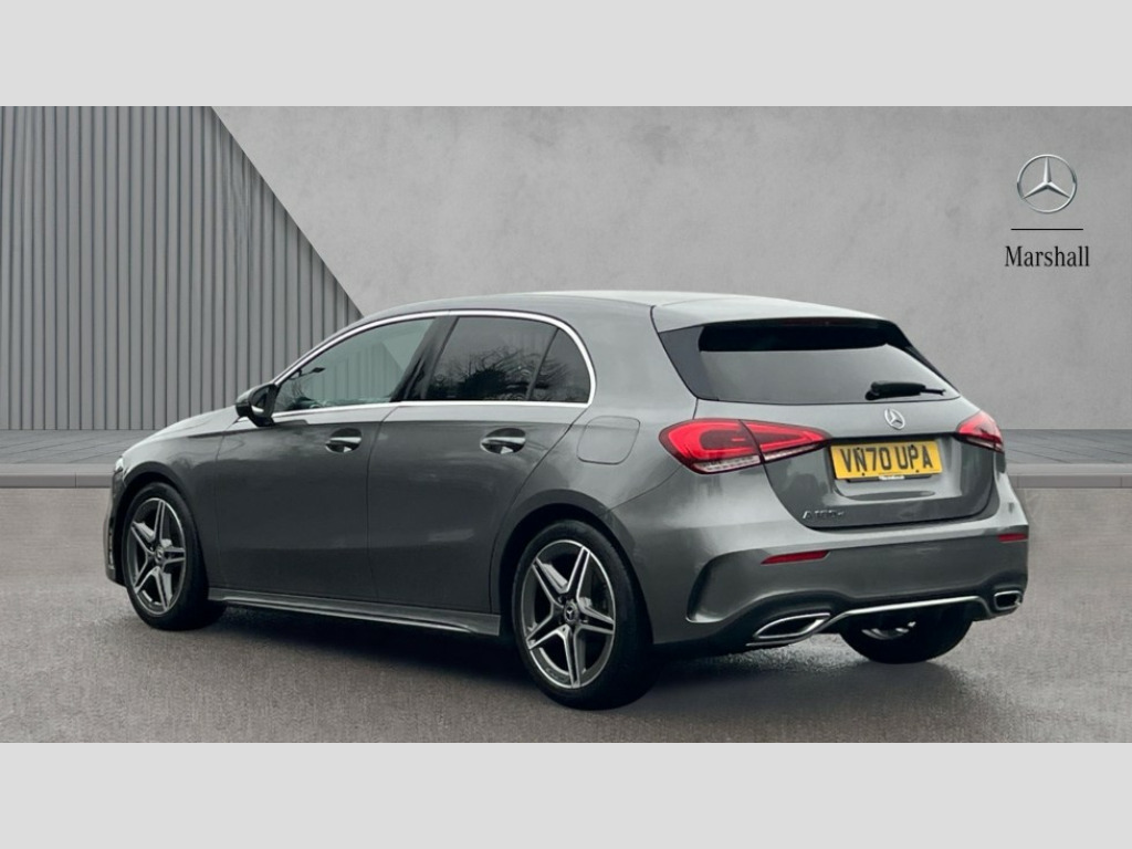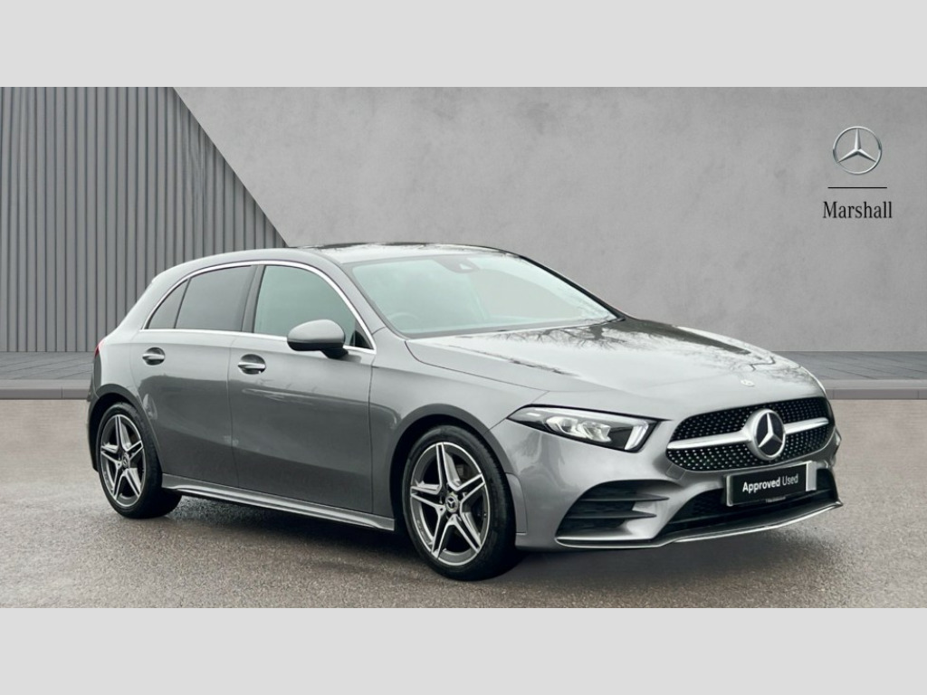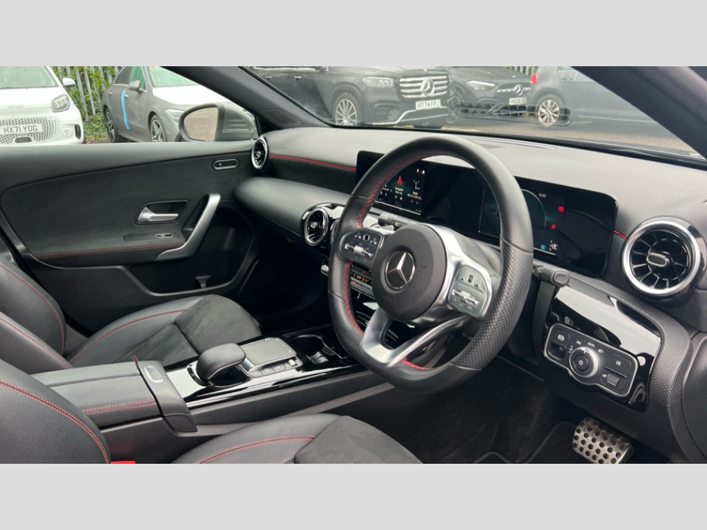 Mercedes-Benz A Class A180d AMG Line 5dr Auto 180 degree rear view camera with parking guidelines, 7" colour screen in instrument panel, 7" touchscreen media display, Active lane keep assist, Attention assist, Brake pad wear indicator warning light, Car wash mode, Cruise control + speed limiter, Direct steering, Dual bluetooth interfaces, DYNAMIC SELECT with a choice of driving modes (ECO, Comfort, Sport and Individual), ECO start/stop function, Fluid level warning indicator for fuel, oil, coolant and washer fluid, Hard-disk navigation, Hey Mercedes Voice activation, Lamp failure indicator, Mercedes me connect including emergency call system, accident recovery, breakdown and maintenance management, Outside temperature gauge, Owners manual in English, Pre-installation for private car sharing, Pre-installation for Vehicle Monitoring, Pre-installation for Vehicle Setup, Preinstallation for Mercedes Benz link, Service indicator (ASSYST), Speed sensitive power steering, Trip computer, Lowered comfort suspension, Rear axle torsion beam, 2 USB ports (type C) in rear stowage compartment and one in front of center console, 6 speakers, DAB Digital radio, MBUX multimedia system with DAB digital radio and touchpad including satellite navigation, Mercedes-Benz sound system - 100W, 4 Electric Front and Rear windows, Adaptive brake lights, AMG bodystyling - Front apron with splitter in chrome, rear apron with chrome trim and chrome visible trim elements in tailpipe, Black weather strip, Body colour bumpers, Body colour door handles, Body colour side skirt, Body coloured door mirrors, Chrome beltline trim, Diamond radiator grille with chrome pins and silver louvre + chrome insert, Electric adjustable and heated door mirrors with integrated LED side indicators, Exhaust system - Twin visible tailpipes in polished stainless steel, Headlamp assist automatic headlamp activation, Heated glass rear windscreen + timer control, LED high performance headlamps with integrated LED daytime running lights, LED tail lamp, LED third brake light, Privacy glass, Radio aerial, Rain sensing windscreen wipers with two sensitivity settings, Rear fog lights, Rear wiper, Window line trim strip in chrome, 3 Spoke flat bottom leather multi function steering wheel with perforated leather in grip area, 40:20:40 split folding rear seats, Artico man-made leather/Microfibre Dinamica upholstery with red contrast stitching, Auto Mercedes-Benz child seat recognition sensor, Black air vents with surround in silver chrome, Black roof lining, Brushed stainless steel sports pedals with rubber studs, Controller on centre console with chrome surround, Floor mats with stitched edging and AMG lettering, Front centre armrest with storage compartment, Front door sills with Mercedes Benz lettering, Front seat backs luggage nets, Front seat cushion length adjustment, Galvanished gear shift paddles on steering wheel, Heated front seats, Height/reach adjustable steering column, Interior mirror with reading lamps in black and frameless, Manual height adjustable front seats, Rear head restraints, Seat occupancy sensor for front passenger seat, Sports seats with integrated headrests, Stowage compartment in centre console with retractable cover, Sunvisors with illuminated vanity mirrors, Touchpad on center console, Twin front cupholders, Two zone thermotronic luxury automatic climate control, Light and sight pack - A Class, Seat comfort pack - A Class, 3 rear 3 point seatbelts, ABS with Brake Assist, Active bonnet, Active brake assist includes forward collision warning system with autonomous braking, Adaptive brake assist with hold function and hill start assist, Black seatbelts, Childproof locks manually operated for rear doors and electrically operated for rear power windows, Crash responsive emergency lighting, Driver and passenger head and side airbags, Drivers knee airbag, Dual stage driver/passenger airbags, Electronic parking brake, ESP curve dynamic assist, ESP with ASR, Front and rear seatbelt reminder, Front brake callipers with Mercedes Benz lettering, ISOFIX and top tether child seat fixing points in two outer rear seats, Tyre pressure monitoring system, Warning triangle and first aid kit, Window airbags, Alarm system/interior protection/immobiliser, Keyless Go, Remote central locking and crash sensor with emergency opening function, Urban guard vehicle protection system with immobiliser and interior protection, Dinamica microfibre trim in black, 18" AMG 5 twin spoke light alloy wheels in titanium grey with highsheen finish, Summer tyres, Tirefit sealant kit