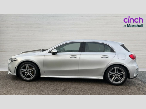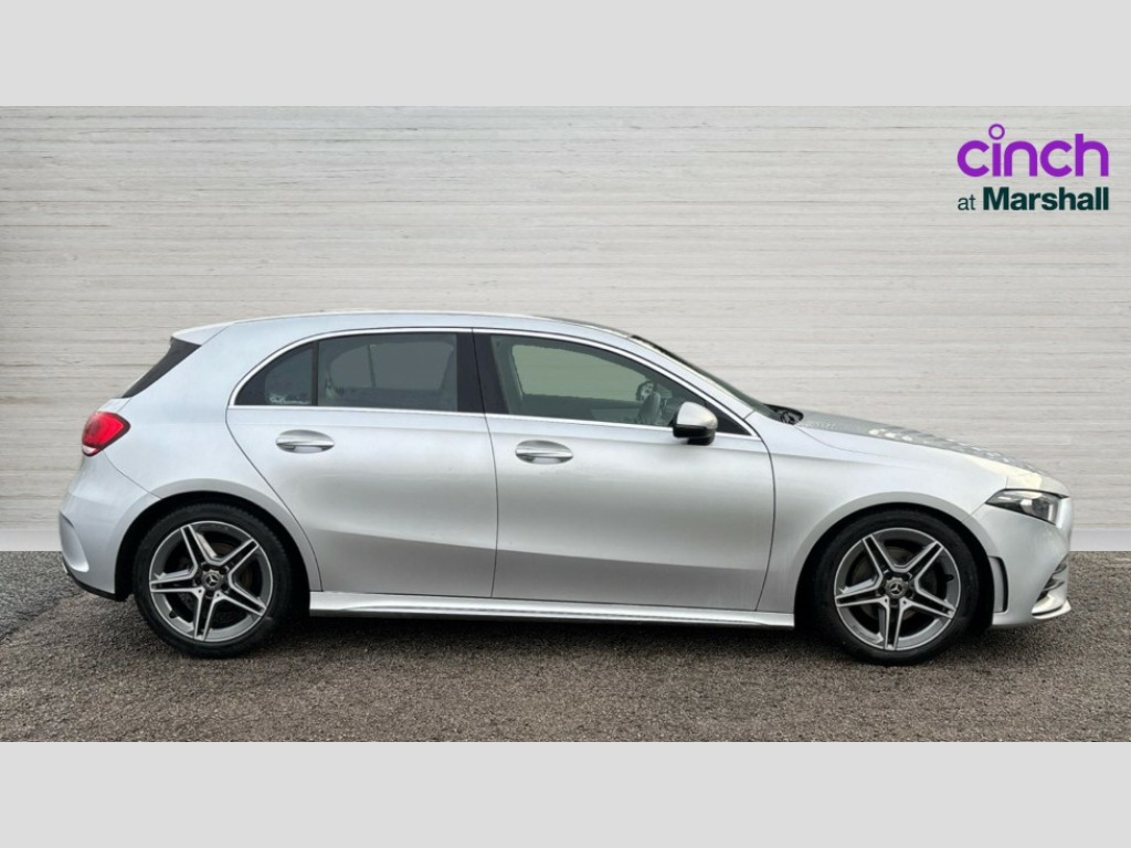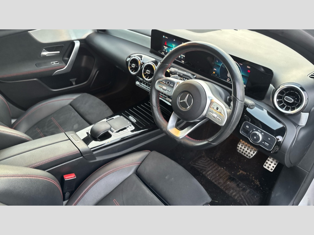 Mercedes-Benz A Class A180d AMG Line 5dr Auto 7" tablet style colour display, Active lane keep assist, Attention assist, Bluetooth interface for hands free telephone, Bulb failure indicator, Collision prevention assist plus, Cruise control + speed limiter, DYNAMIC SELECT with a choice of driving modes (ECO, Comfort, Sport, Sport+ and Individual), External temperature gauge, HDD Navigation system, Low fluid warning light, Mercedes connect me with remote online services, Reversing camera, Service indicator (ASSYST PLUS), Speed sensitive power steering, Trip computer, Voice control system, Lowered sports suspension, 2 USB ports in centre console, DAB Digital radio, Multimedia System, SD card slot, Adaptive brake lights, AMG body styling, Body colour bumpers, Body colour door handles, Body colour side skirt, Body coloured door mirrors, Chrome beltline trim, Diamond radiator grille with chrome pins and silver louvre + chrome insert, Electric adjustable heated door mirrors, Electric front windows, Electric rear windows, Headlamp assist, Heated rear window with timer, LED daytime running lights, LED Headlights, LED rear lights, Rain sensor windscreen wipers, Rear wiper, Twin Trapezoidal tailpipes, 1/3 to 2/3 split folding rear seats, 12V socket, 3 spoke flat bottomed nappa leather sport steering wheel, AMG floor mats with red stitching, Artico man-made leather/Dinamica upholstery, Auto Mercedes-Benz child seat recognition sensor, Black headlining, Brushed stainless steel sports pedals with rubber studs, Dual zone automatic climate control, Footwell lights, Front and rear reading lights, Front centre armrest with storage compartment, Front door sills with Mercedes Benz lettering, Front head restraints, Front seat backs luggage nets, Front sport seats, Gearshift paddles on steering wheel, Height adjustable front seats, Height/reach adjustable steering column, Illuminated cup holders, Illuminated glovebox, Illuminated storage compartment, Integrated head restraints, Isofix rear child seat preparation, Load securing rings in luggage compartment, Luggage compartment cover, Multifunction steering wheel, Oddments tray lighting, Rear head restraints, Storage compartment under load area floor, Sunvisors with illuminated vanity mirrors, Twin front cupholders, Seat comfort pack - A Class, 3 rear 3 point seatbelts, ABS with Brake Assist, Active bonnet, Adaptive brake system, Brake calipers with Mercedes-Benz lettering + perforated brake discs, Child proof door locks, Crash responsive emergency lighting, Drivers knee airbag, Dual stage driver/passenger airbags, Electronic parking brake, ESP with ASR, Front and rear seatbelt reminder, Front head airbags, Front passenger seat occupancy sensor, Front side airbags, Hill start assist, Tyre pressure monitoring system, Warning triangle and first aid kit, Window airbags, Alarm system/interior protection/immobiliser, Keyless ignition, Remote central locking, Chrome air vent surrounds, 18" AMG 5 twin spoke light alloy wheels in titanium grey with highsheen finish, Tirefit sealant with electric air pump