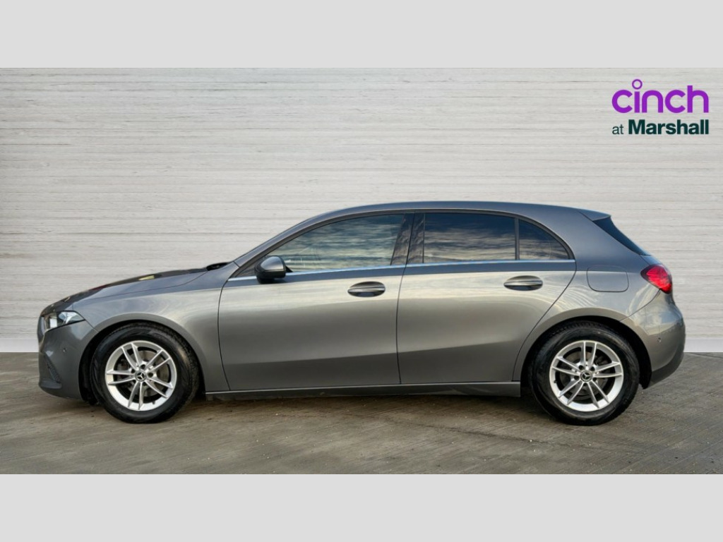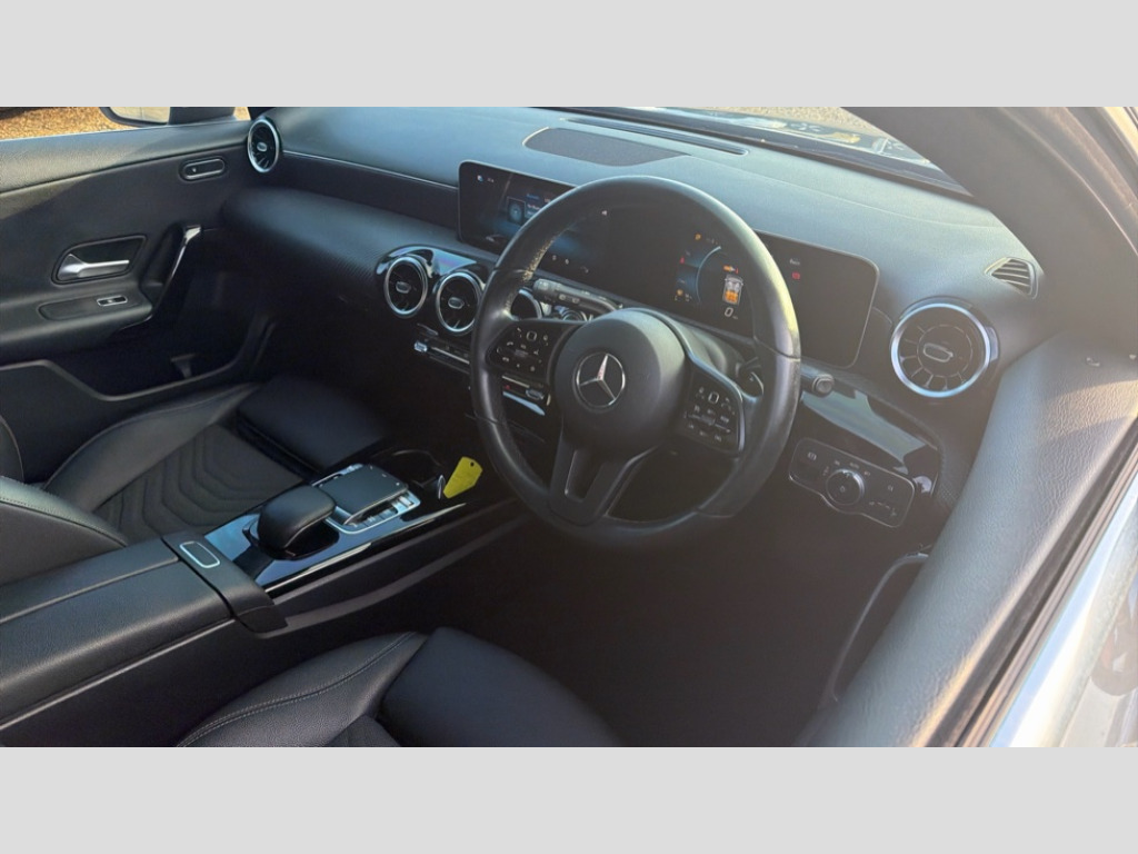 Mercedes-Benz A Class A180d SE Executive 5dr Auto 10.25" media display, 180 degree rear view camera with parking guidelines, 7" colour screen in instrument panel, Active lane keep assist, Active park assist with parktronic system including front and rear parking sensors, Attention assist, Brake pad wear indicator warning light, Cruise control + speed limiter, Direct steering, Direction indicators with lane change function, DYNAMIC SELECT with a choice of driving modes (ECO, Comfort, Sport, Sport+ and Individual), Fluid level warning indicator for fuel, oil, coolant and washer fluid, Hard-disk navigation, Lamp failure indicator, Mercedes me connect including emergency call system, accident recovery, breakdown and maintenance management, Outside temperature gauge, Radio aerial integrated into roof spoiler, Service indicator (ASSYST), Speed sensitive power steering, Stop/start system, Trip computer, Voice activation, Lowered comfort suspension, DAB Digital radio, Dual bluetooth interface, 2 USB ports (type C), MBUX multimedia system with DAB digital radio and touchpad including satellite navigation, Active aerodynamics with AIRPANEL in the front apron, Adaptive brake lights, Black weather strip, Blue tinted glass, Body colour bumpers, Body colour door handles, Body colour side skirt, Body coloured door mirrors, Chrome beltline trim, Diamond radiator grille with black pins with one louvre in silver + chrome insert, Electric adjustable and heated door mirrors with integrated LED side indicators, Electric front windows, Electric rear windows, Halogen headlamps with integrated daytime running lights, Headlamp assist automatic headlamp activation, Heated glass rear windscreen + timer control, LED third brake light, Part LED tail light, Rain sensor windscreen wipers, Rear fog lights, Rear wiper, 12V socket, 3 Spoke leather multi function steering wheel, 40:20:40 split folding rear seats, Air conditioning thermatic, Air vents surround and cruciform nozzle in silver chrome, Artico man-made leather/Bertrix fabric upholstery, Auto Mercedes-Benz child seat recognition sensor, Black roof lining, Controller on centre console with chrome surround, Cup holder and stowage compartment lighting, Floor mats, Front centre armrest with storage compartment, Front comfort seats with adjustable head restraints, Front door sills with Mercedes Benz lettering, Front doors with ambient and signal light, Front footwell lights, Front reading lamps, Front seat backs luggage nets, Front seat cushion length adjustment, Front signal exit lamp, Front vanity lights, Gearshift paddles on steering wheel, Handle recess/closing light, Heated front seats, Height/reach adjustable steering column, Illuminated glovebox, ISOFIX Child seat top tethers and anchor fixings, Load securing rings in luggage compartment, Luggage compartment cover, Manual height adjustable front seats, Oddments tray lighting, Rear head restraints, Rear Reading Lamps, Seat occupancy sensor for front passenger seat, Storage compartment under load area floor, Sunvisors with illuminated vanity mirrors, Touchpad, Touchpad illumination, Twin front cupholders, Mirror package - A Class, Seat comfort pack - A Class, 3 rear 3 point seatbelts, ABS with Brake Assist, Active bonnet, Active brake assist includes forward collision warning system with autonomous braking, Adaptive brake assist with hold function and hill start assist, Black seatbelts, Childproof locks manually operated for rear doors and electrically operated for rear power windows, Crash responsive emergency lighting, Driver and passenger head and side airbags, Drivers knee airbag, Dual stage driver/passenger airbags, Electronic parking brake, ESP curve dynamic assist, ESP with ASR, Front and rear seatbelt reminder, Tyre pressure monitoring system, Warning triangle and first aid kit, Window airbags, Alarm system/interior protection/immobiliser, Keyless Go, Remote central locking and crash sensor with emergency opening function, 16" 5 twin spoke light alloy wheels painted in vanadium silver, Tirefit sealant kit