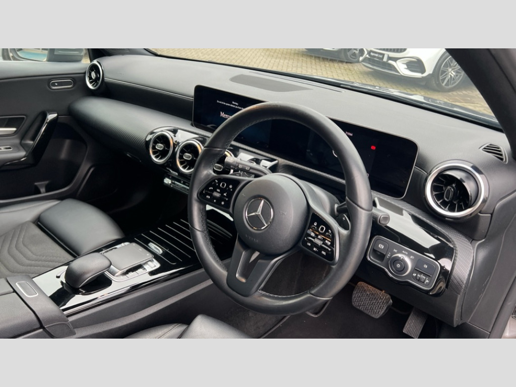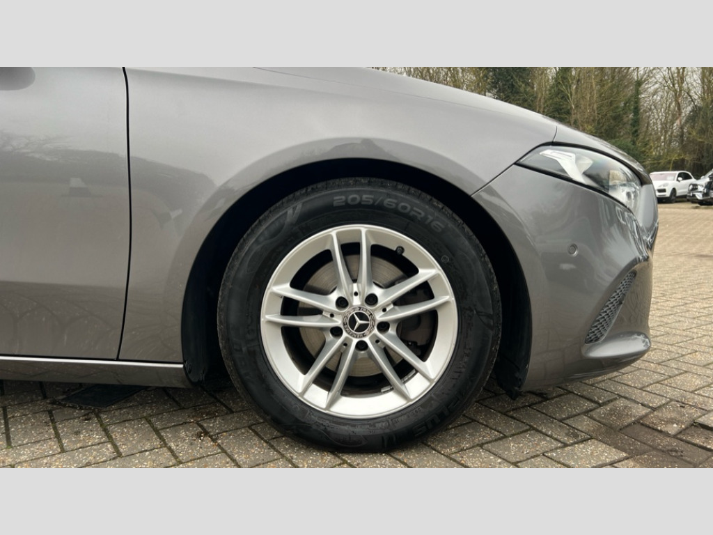 Mercedes-Benz A Class A180d SE Executive 5dr Auto 10.25" media display, 180 degree rear view camera with parking guidelines, 7" colour screen in instrument panel, Active lane keep assist, Active park assist with parktronic system including front and rear parking sensors, Attention assist, Brake pad wear indicator warning light, Cruise control + speed limiter, Direct steering, Direction indicators with lane change function, DYNAMIC SELECT with a choice of driving modes (ECO, Comfort, Sport, Sport+ and Individual), Fluid level warning indicator for fuel, oil, coolant and washer fluid, Hard-disk navigation, Lamp failure indicator, Mercedes me connect including emergency call system, accident recovery, breakdown and maintenance management, Outside temperature gauge, Radio aerial integrated into roof spoiler, Service indicator (ASSYST), Speed sensitive power steering, Stop/start system, Trip computer, Voice activation, Lowered comfort suspension, DAB Digital radio, Dual bluetooth interface, 2 USB ports (type C), MBUX multimedia system with DAB digital radio and touchpad including satellite navigation, Active aerodynamics with AIRPANEL in the front apron, Adaptive brake lights, Black weather strip, Blue tinted glass, Body colour bumpers, Body colour door handles, Body colour side skirt, Body coloured door mirrors, Chrome beltline trim, Diamond radiator grille with black pins with one louvre in silver + chrome insert, Electric adjustable and heated door mirrors with integrated LED side indicators, Electric front windows, Electric rear windows, Halogen headlamps with integrated daytime running lights, Headlamp assist automatic headlamp activation, Heated glass rear windscreen + timer control, LED third brake light, Part LED tail light, Rain sensor windscreen wipers, Rear fog lights, Rear wiper, 12V socket, 3 Spoke leather multi function steering wheel, 40:20:40 split folding rear seats, Air conditioning thermatic, Air vents surround and cruciform nozzle in silver chrome, Artico man-made leather/Bertrix fabric upholstery, Auto Mercedes-Benz child seat recognition sensor, Black roof lining, Controller on centre console with chrome surround, Cup holder and stowage compartment lighting, Floor mats, Front centre armrest with storage compartment, Front comfort seats with adjustable head restraints, Front door sills with Mercedes Benz lettering, Front doors with ambient and signal light, Front footwell lights, Front reading lamps, Front seat backs luggage nets, Front seat cushion length adjustment, Front signal exit lamp, Front vanity lights, Gearshift paddles on steering wheel, Handle recess/closing light, Heated front seats, Height/reach adjustable steering column, Illuminated glovebox, ISOFIX Child seat top tethers and anchor fixings, Load securing rings in luggage compartment, Luggage compartment cover, Manual height adjustable front seats, Oddments tray lighting, Rear head restraints, Rear Reading Lamps, Seat occupancy sensor for front passenger seat, Storage compartment under load area floor, Sunvisors with illuminated vanity mirrors, Touchpad, Touchpad illumination, Twin front cupholders, Mirror package - A Class, Seat comfort pack - A Class, 3 rear 3 point seatbelts, ABS with Brake Assist, Active bonnet, Active brake assist includes forward collision warning system with autonomous braking, Adaptive brake assist with hold function and hill start assist, Black seatbelts, Childproof locks manually operated for rear doors and electrically operated for rear power windows, Crash responsive emergency lighting, Driver and passenger head and side airbags, Drivers knee airbag, Dual stage driver/passenger airbags, Electronic parking brake, ESP curve dynamic assist, ESP with ASR, Front and rear seatbelt reminder, Tyre pressure monitoring system, Warning triangle and first aid kit, Window airbags, Alarm system/interior protection/immobiliser, Keyless Go, Remote central locking and crash sensor with emergency opening function, 16" 5 twin spoke light alloy wheels painted in vanadium silver, Tirefit sealant kit