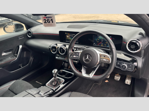 Mercedes-Benz A Class A200 AMG Line 5dr 180 degree rear view camera with parking guidelines, 7" colour screen in instrument panel, 7" touchscreen media display, Active lane keep assist, Attention assist, Brake pad wear indicator warning light, Car wash mode, Cruise control + speed limiter, Direct steering, Dual bluetooth interfaces, DYNAMIC SELECT with a choice of driving modes (ECO, Comfort, Sport and Individual), ECO start/stop function, Fluid level warning indicator for fuel, oil, coolant and washer fluid, Hard-disk navigation, Hey Mercedes Voice activation, Lamp failure indicator, Mercedes me connect including emergency call system, accident recovery, breakdown and maintenance management, Outside temperature gauge, Owners manual in English, Pre-installation for private car sharing, Pre-installation for Vehicle Monitoring, Pre-installation for Vehicle Setup, Preinstallation for Mercedes Benz link, Service indicator (ASSYST), Speed sensitive power steering, Trip computer, Lowered comfort suspension, Rear axle torsion beam, 2 USB ports (type C) in rear stowage compartment and one in front of center console, 6 speakers, DAB Digital radio, MBUX multimedia system with DAB digital radio and touchpad including satellite navigation, Mercedes-Benz sound system - 100W, 4 Electric Front and Rear windows, Adaptive brake lights, AMG bodystyling - Front apron with splitter in chrome, rear apron with chrome trim and chrome visible trim elements in tailpipe, Black weather strip, Body colour bumpers, Body colour door handles, Body colour side skirt, Body coloured door mirrors, Chrome beltline trim, Diamond radiator grille with chrome pins and silver louvre + chrome insert, Electric adjustable and heated door mirrors with integrated LED side indicators, Exhaust system - Twin visible tailpipes in polished stainless steel, Headlamp assist automatic headlamp activation, Heated glass rear windscreen + timer control, LED high performance headlamps with integrated LED daytime running lights, LED tail lamp, LED third brake light, Privacy glass, Radio aerial, Rain sensing windscreen wipers with two sensitivity settings, Rear fog lights, Rear wiper, Window line trim strip in chrome, 3 Spoke flat bottom leather multi function steering wheel with perforated leather in grip area, 40:20:40 split folding rear seats, Artico man-made leather/Microfibre Dinamica upholstery with red contrast stitching, Auto Mercedes-Benz child seat recognition sensor, Black air vents with surround in silver chrome, Black roof lining, Brushed stainless steel sports pedals with rubber studs, Controller on centre console with chrome surround, Floor mats with stitched edging and AMG lettering, Front centre armrest with storage compartment, Front door sills with Mercedes Benz lettering, Front seat backs luggage nets, Front seat cushion length adjustment, Heated front seats, Height/reach adjustable steering column, Interior mirror with reading lamps in black and frameless, Manual height adjustable front seats, Rear head restraints, Seat occupancy sensor for front passenger seat, Sports seats with integrated headrests, Sunvisors with illuminated vanity mirrors, Touchpad on center console, Twin front cupholders, Two zone thermotronic luxury automatic climate control, Light and sight pack - A Class, Seat comfort pack - A Class, 3 rear 3 point seatbelts, ABS with Brake Assist, Active bonnet, Active brake assist includes forward collision warning system with autonomous braking, Adaptive brake assist with hold function and hill start assist, Black seatbelts, Childproof locks manually operated for rear doors and electrically operated for rear power windows, Crash responsive emergency lighting, Driver and passenger head and side airbags, Drivers knee airbag, Dual stage driver/passenger airbags, Electronic parking brake, ESP curve dynamic assist, ESP with ASR, Front and rear seatbelt reminder, Front brake callipers with Mercedes Benz lettering, ISOFIX and top tether child seat fixing points in two outer rear seats, Tyre pressure monitoring system, Warning triangle and first aid kit, Window airbags, Alarm system/interior protection/immobiliser, Keyless Go, Remote central locking and crash sensor with emergency opening function, Urban guard vehicle protection system with immobiliser and interior protection, Dinamica microfibre trim in black, 18" AMG 5 twin spoke light alloy wheels in titanium grey with highsheen finish, Summer tyres, Tirefit sealant kit