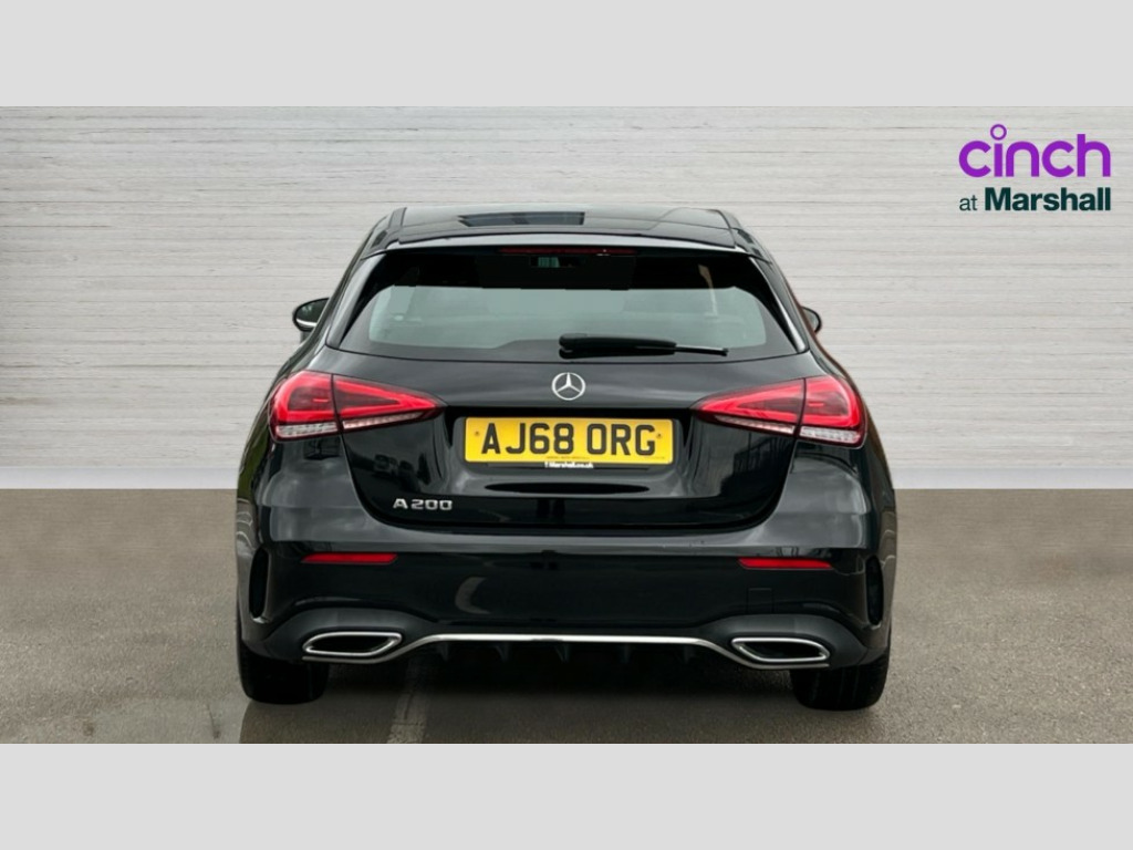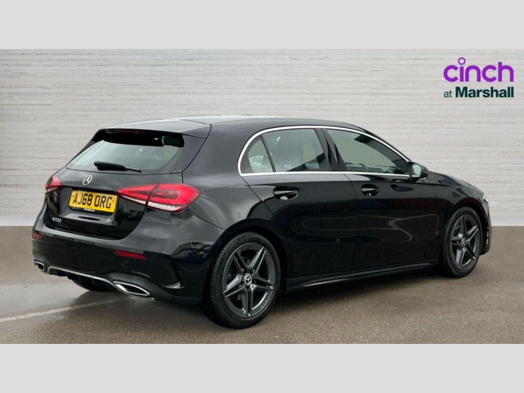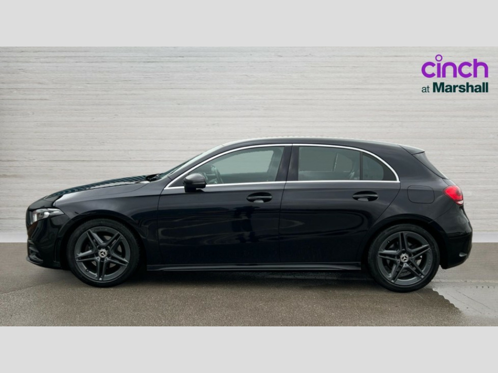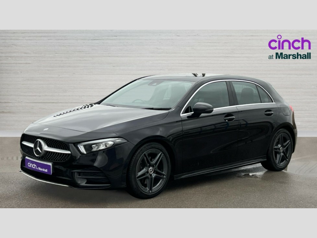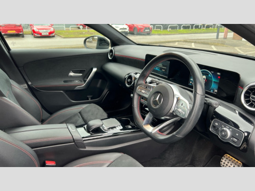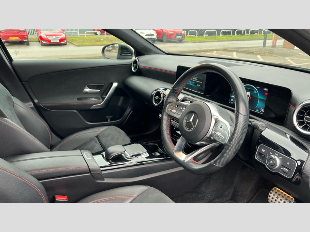 Mercedes-Benz A Class A200 AMG Line 5dr Auto 180 degree rear view camera with parking guidelines, 7" colour screen in instrument panel, 7" touchscreen media display, Active lane keep assist, Attention assist, Brake pad wear indicator warning light, Cruise control + speed limiter, Direct steering, Direction indicators with lane change function, DYNAMIC SELECT with a choice of driving modes (ECO, Comfort, Sport, Sport+ and Individual), Fluid level warning indicator for fuel, oil, coolant and washer fluid, Hard-disk navigation, Lamp failure indicator, Mercedes me connect including emergency call system, accident recovery, breakdown and maintenance management, Outside temperature gauge, Radio aerial integrated into roof spoiler, Service indicator (ASSYST), Speed sensitive power steering, Stop/start system, Trip computer, Voice activation, Lowered comfort suspension, DAB Digital radio, Dual bluetooth interface, 2 USB ports (type C), MBUX multimedia system with DAB digital radio and touchpad including satellite navigation, Adaptive brake lights, AMG front, rear apron and side skirts, Blue tinted glass, Body colour bumpers, Body colour door handles, Body colour side skirt, Body coloured door mirrors, Chrome beltline trim, Diamond radiator grille with chrome pins and silver louvre + chrome insert, Electric adjustable and heated door mirrors with integrated LED side indicators, Electric front windows, Electric rear windows, Exhaust system - Twin trapezoidal tailpipes in polished stainless steel, Headlamp assist automatic headlamp activation, Heated glass rear windscreen + timer control, LED high performance headlamps with integrated LED daytime running lights, LED tail lamp, LED third brake light, Rain sensor windscreen wipers, Rear fog lights, Rear wiper, 12V socket, 3 Spoke flat bottom leather multi function steering wheel with perforated leather in grip area, 40:20:40 split folding rear seats, Air vents surround and cruciform nozzle in silver chrome, AMG floor mats with red stitching, Artico man-made leather/Microfibre Dinamica upholstery with red contrast stitching, Auto Mercedes-Benz child seat recognition sensor, Black roof lining, Brushed stainless steel sports pedals with rubber studs, Controller on centre console with chrome surround, Cup holder and stowage compartment lighting, Front centre armrest with storage compartment, Front door sills with Mercedes Benz lettering, Front doors with ambient and signal light, Front footwell lights, Front reading lamps, Front seat backs luggage nets, Front seat cushion length adjustment, Front signal exit lamp, Front vanity lights, Gearshift paddles on steering wheel, Handle recess/closing light, Height/reach adjustable steering column, Illuminated glovebox, ISOFIX Child seat top tethers and anchor fixings, Load securing rings in luggage compartment, Luggage compartment cover, Manual height adjustable front seats, Oddments tray lighting, Rear head restraints, Rear Reading Lamps, Seat occupancy sensor for front passenger seat, Sports seats with integrated headrests, Storage compartment under load area floor, Sunvisors with illuminated vanity mirrors, Touchpad, Touchpad illumination, Twin front cupholders, Two zone thermotronic luxury automatic climate control, Seat comfort pack - A Class, 3 rear 3 point seatbelts, ABS with Brake Assist, Active bonnet, Active brake assist includes forward collision warning system with autonomous braking, Adaptive brake assist with hold function and hill start assist, Black seatbelts, Brake calipers with Mercedes-Benz lettering + perforated brake discs, Childproof locks manually operated for rear doors and electrically operated for rear power windows, Crash responsive emergency lighting, Driver and passenger head and side airbags, Drivers knee airbag, Dual stage driver/passenger airbags, Electronic parking brake, ESP curve dynamic assist, ESP with ASR, Front and rear seatbelt reminder, Tyre pressure monitoring system, Warning triangle and first aid kit, Window airbags, Alarm system/interior protection/immobiliser, Keyless Go, Remote central locking and crash sensor with emergency opening function, 18" AMG 5 twin spoke light alloy wheels in titanium grey with highsheen finish, Tirefit sealant kit