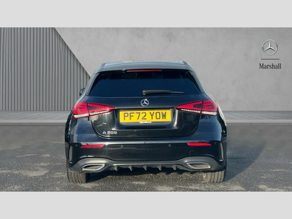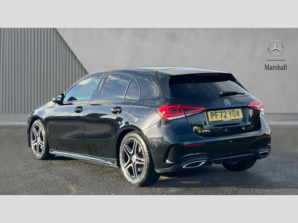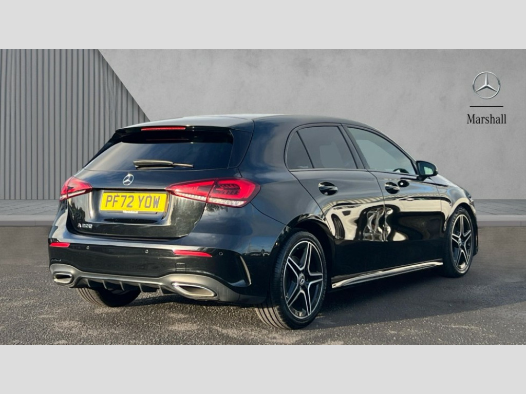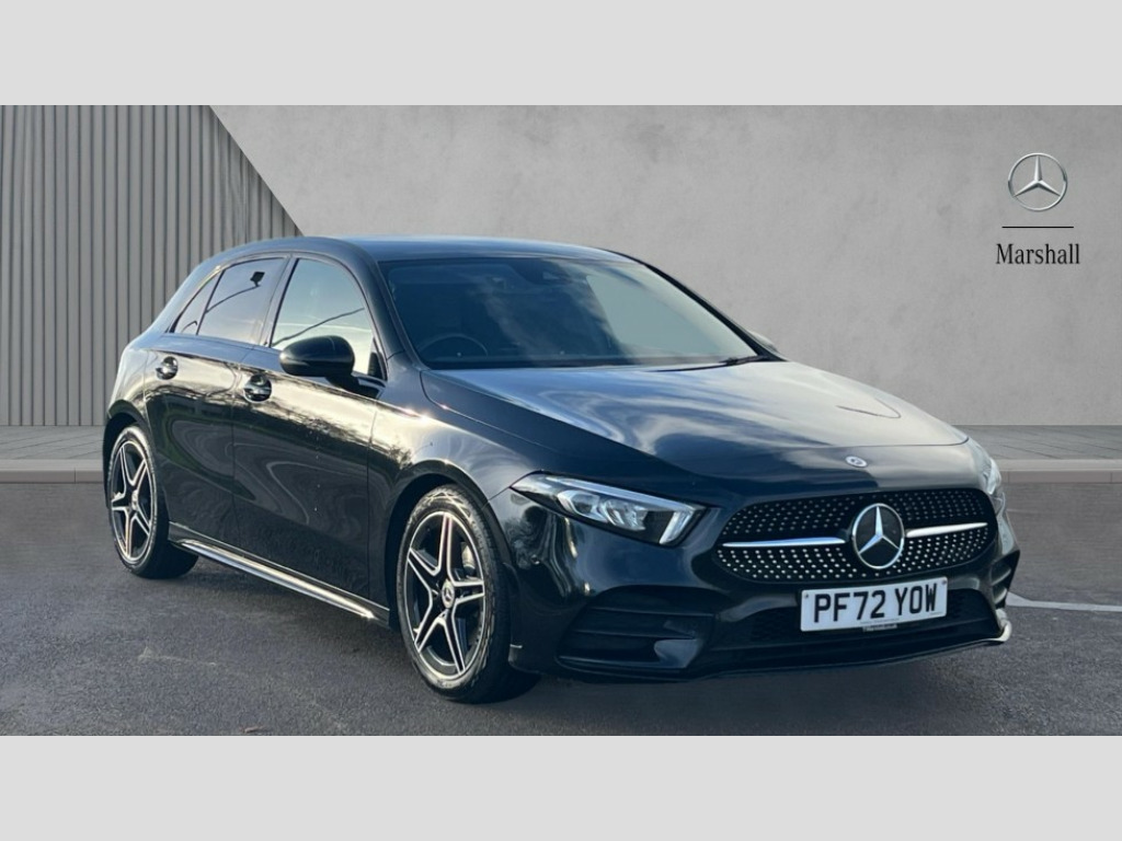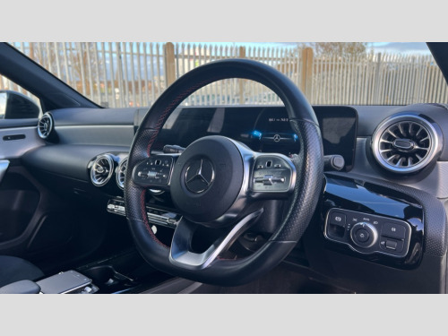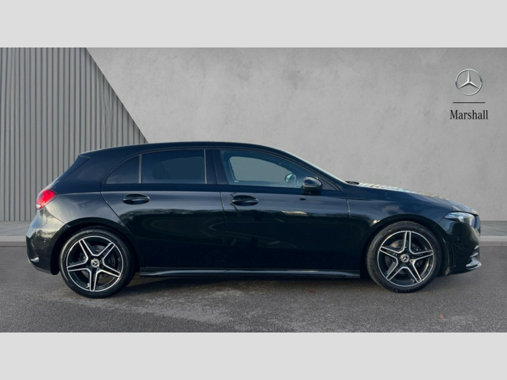 Mercedes-Benz A Class A200 AMG Line Executive 5dr Auto 10.25" Digital instrument cluster display screen, 10.25" media display, 180 degree rear view camera with parking guidelines, Active parking assist with visual and audible warning of detected obstacles, Attention assist, Brake pad wear indicator warning light, Car wash mode, Cruise control + speed limiter, Direct steering, Dual bluetooth interfaces, DYNAMIC SELECT with a choice of driving modes (ECO, Comfort, Sport and Individual), ECO start/stop function, Fluid level warning indicator for fuel, oil, coolant and washer fluid, Hard-disk navigation, Hey Mercedes Voice activation, Lamp failure indicator, Lane keeping system, Mercedes me connect including emergency call system, accident recovery, breakdown and maintenance management, Mercedes me remote services, Outside temperature gauge, Owners manual in English, Pre-installation for private car sharing, Preinstallation for Mercedes Benz link, Service indicator (ASSYST), Smartphone integration with Apple CarPlay and Android auto, Speed limit assist, Speed sensitive power steering, Trip computer, Ultrasonic sensors positioned in the front and rear bumpers, Lowered comfort suspension, Rear axle torsion beam, 2 USB ports (type C) in rear stowage compartment and one in front of center console, 6 speakers, DAB Digital radio, MBUX multimedia system with DAB digital radio and touchpad including satellite navigation, Mercedes-Benz sound system - 100W, 4 Electric Front and Rear windows, Adaptive brake lights, AMG bodystyling - Front apron with splitter in chrome, rear apron with chrome trim and chrome visible trim elements in tailpipe, Automatic headlights, Black weather strip, Body colour bumpers, Body colour door handles with chrome inserts, Body colour side skirt, Electric adjustable and heated door mirrors with integrated LED side indicators, Exclusive diamond radiator grille, Exhaust system - Twin visible tailpipes in polished stainless steel, Headlamp assist automatic headlamp activation, Heated glass rear windscreen + timer control, LED High level third brake light, LED high performance headlamps with integrated LED daytime running lights, LED tail lamp, Privacy glass, Radio aerial, Rain sensing windscreen wipers with two sensitivity settings, Rear fog lights, Rear side wing doors, Rear wiper, 3 seat bench in 2nd row, 3 Spoke flat bottom leather multi function steering wheel with perforated leather in grip area, 40:20:40 split folding rear seats, Artico man-made leather/Microfibre Dinamica upholstery with red contrast stitching, Auto Mercedes-Benz child seat recognition sensor, Black air vents with surround in silver chrome, Black roof lining, Brushed stainless steel sports pedals with rubber studs, Controller on centre console with chrome surround, Floor mats with AMG lettering, Front centre armrest with storage compartment, Front seat backs luggage nets, Galvanished gear shift paddles on steering wheel, Heated front seats, Height/reach adjustable steering column, Illuminated Mercedes Benz lettering front door sills with changeable cover, Interior lighting - 64 colour Ambient lighting, Interior mirror with reading lamps in black and frameless, Manual height adjustable front seats, Rear head restraints, Seat occupancy sensor for front passenger seat, Single front passenger seat, Sports seats with integrated headrests, Stowage compartment in centre console with retractable cover, Sunvisors with illuminated vanity mirrors, Touchpad on center console, Twin front cupholders, Two zone thermotronic luxury automatic climate control, Light and sight pack - A Class, Mirror package - A Class, Night pack - A Class Saloon/Hatchback, Seat comfort pack - A Class, 3 rear 3 point seatbelts, ABS with Brake Assist, Active bonnet, Active brake assist includes forward collision warning system with autonomous braking, Adaptive brake assist with hold function and hill start assist, Black seatbelts, Childproof locks manually operated for rear doors and electrically operated for rear power windows, Crash responsive emergency lighting, Driver and passenger head and side airbags, Drivers knee airbag, Dual stage driver/passenger airbags, Electronic parking brake, ESP curve dynamic assist, ESP with ASR, Front and rear seatbelt reminder, Front brake callipers with Mercedes Benz lettering, ISOFIX and top tether child seat fixing points in two outer rear seats, Tyre pressure monitoring system, Warning triangle and first aid kit, Window airbags, Alarm system/interior protection/immobiliser, Keyless Go, Remote central locking and crash sensor with emergency opening function, Urban guard vehicle protection system with immobiliser and interior protection, Matrix look light longitudinal grain aluminium trim element, 18" AMG 5 twin spoke light alloy wheels aerodynamically optimised painted in black with highsheen finish, Summer tyres, Tirefit sealant kit