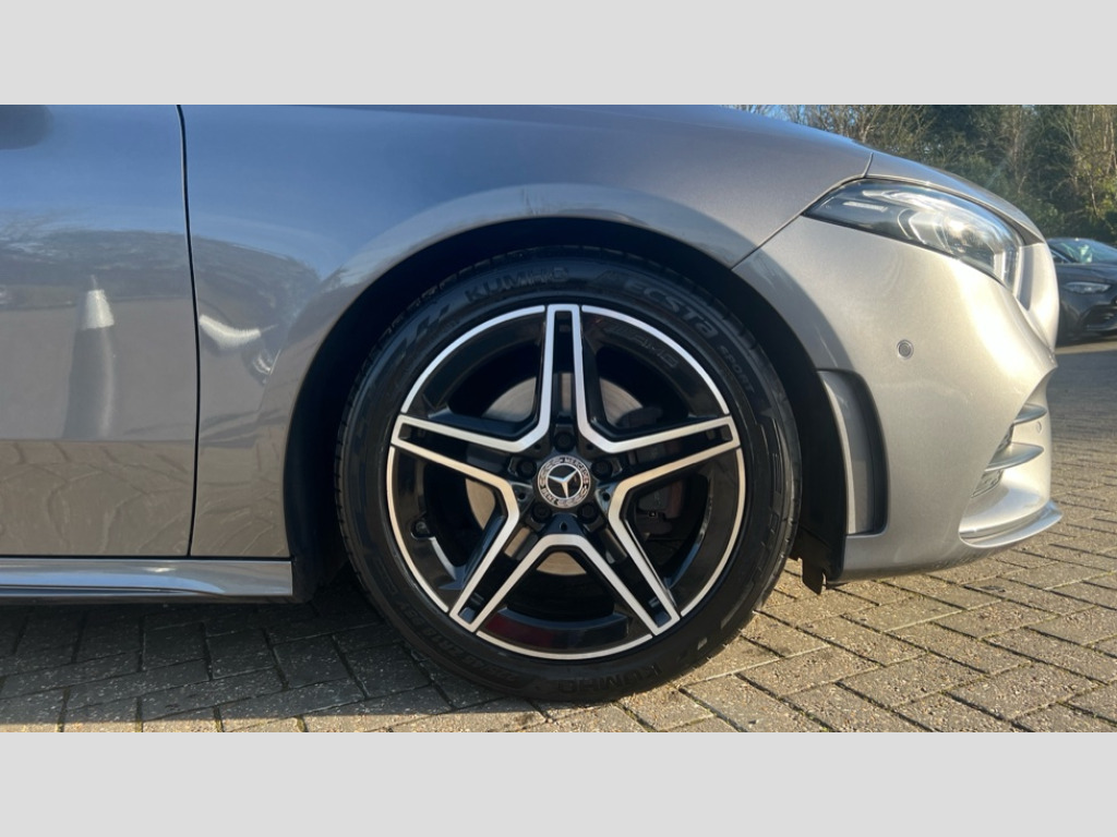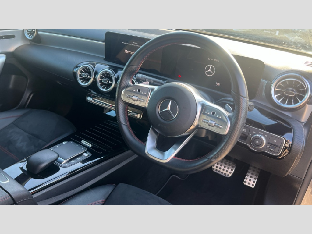 Mercedes-Benz A Class A200 AMG Line Executive 5dr Auto 10.25" Digital instrument cluster display screen, 10.25" media display, 180 degree rear view camera with parking guidelines, Active parking assist with visual and audible warning of detected obstacles, Attention assist, Brake pad wear indicator warning light, Car wash mode, Cruise control + speed limiter, Direct steering, Dual bluetooth interfaces, DYNAMIC SELECT with a choice of driving modes (ECO, Comfort, Sport and Individual), ECO start/stop function, Fluid level warning indicator for fuel, oil, coolant and washer fluid, Hard-disk navigation, Hey Mercedes Voice activation, Lamp failure indicator, Lane keeping system, Mercedes me connect including emergency call system, accident recovery, breakdown and maintenance management, Mercedes me remote services, Outside temperature gauge, Owners manual in English, Pre-installation for private car sharing, Preinstallation for Mercedes Benz link, Service indicator (ASSYST), Smartphone integration with Apple CarPlay and Android auto, Speed limit assist, Speed sensitive power steering, Trip computer, Ultrasonic sensors positioned in the front and rear bumpers, Lowered comfort suspension, Rear axle torsion beam, 2 USB ports (type C) in rear stowage compartment and one in front of center console, 6 speakers, DAB Digital radio, MBUX multimedia system with DAB digital radio and touchpad including satellite navigation, Mercedes-Benz sound system - 100W, 4 Electric Front and Rear windows, Adaptive brake lights, AMG bodystyling - Front apron with splitter in chrome, rear apron with chrome trim and chrome visible trim elements in tailpipe, Automatic headlights, Black weather strip, Body colour bumpers, Body colour door handles with chrome inserts, Body colour side skirt, Electric adjustable and heated door mirrors with integrated LED side indicators, Exclusive diamond radiator grille, Exhaust system - Twin visible tailpipes in polished stainless steel, Headlamp assist automatic headlamp activation, Heated glass rear windscreen + timer control, LED High level third brake light, LED high performance headlamps with integrated LED daytime running lights, LED tail lamp, Privacy glass, Radio aerial, Rain sensing windscreen wipers with two sensitivity settings, Rear fog lights, Rear side wing doors, Rear wiper, 3 seat bench in 2nd row, 3 Spoke flat bottom leather multi function steering wheel with perforated leather in grip area, 40:20:40 split folding rear seats, Artico man-made leather/Microfibre Dinamica upholstery with red contrast stitching, Auto Mercedes-Benz child seat recognition sensor, Black air vents with surround in silver chrome, Black roof lining, Brushed stainless steel sports pedals with rubber studs, Controller on centre console with chrome surround, Floor mats with AMG lettering, Front centre armrest with storage compartment, Front seat backs luggage nets, Galvanished gear shift paddles on steering wheel, Heated front seats, Height/reach adjustable steering column, Illuminated Mercedes Benz lettering front door sills with changeable cover, Interior lighting - 64 colour Ambient lighting, Interior mirror with reading lamps in black and frameless, Manual height adjustable front seats, Rear head restraints, Seat occupancy sensor for front passenger seat, Single front passenger seat, Sports seats with integrated headrests, Stowage compartment in centre console with retractable cover, Sunvisors with illuminated vanity mirrors, Touchpad on center console, Twin front cupholders, Two zone thermotronic luxury automatic climate control, Light and sight pack - A Class, Mirror package - A Class, Night pack - A Class Saloon/Hatchback, Seat comfort pack - A Class, 3 rear 3 point seatbelts, ABS with Brake Assist, Active bonnet, Active brake assist includes forward collision warning system with autonomous braking, Adaptive brake assist with hold function and hill start assist, Black seatbelts, Childproof locks manually operated for rear doors and electrically operated for rear power windows, Crash responsive emergency lighting, Driver and passenger head and side airbags, Drivers knee airbag, Dual stage driver/passenger airbags, Electronic parking brake, ESP curve dynamic assist, ESP with ASR, Front and rear seatbelt reminder, Front brake callipers with Mercedes Benz lettering, ISOFIX and top tether child seat fixing points in two outer rear seats, Tyre pressure monitoring system, Warning triangle and first aid kit, Window airbags, Alarm system/interior protection/immobiliser, Keyless Go, Remote central locking and crash sensor with emergency opening function, Urban guard vehicle protection system with immobiliser and interior protection, Matrix look light longitudinal grain aluminium trim element, 18" AMG 5 twin spoke light alloy wheels aerodynamically optimised painted in black with highsheen finish, Summer tyres, Tirefit sealant kit