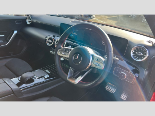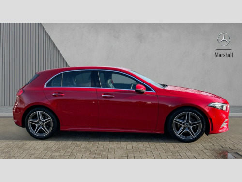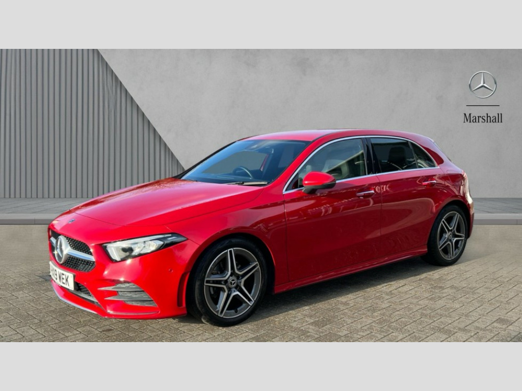 Mercedes-Benz A Class A200 AMG Line Premium 5dr Auto 10.25" Digital instrument cluster display screen, 10.25" media display, 180 degree rear view camera with parking guidelines, Active lane keep assist, Active park assist with parktronic system including front and rear parking sensors, Attention assist, Brake pad wear indicator warning light, Direct steering, Direction indicators with lane change function, DYNAMIC SELECT with a choice of driving modes (ECO, Comfort, Sport, Sport+ and Individual), Fluid level warning indicator for fuel, oil, coolant and washer fluid, Hard-disk navigation, Lamp failure indicator, Mercedes me connect including emergency call system, accident recovery, breakdown and maintenance management, Outside temperature gauge, Radio aerial integrated into roof spoiler, Service indicator (ASSYST), Speed sensitive power steering, Stop/start system, Trip computer, Voice activation, Lowered comfort suspension, DAB Digital radio, Dual bluetooth interface, 2 USB ports (type C), MBUX multimedia system with DAB digital radio and touchpad including satellite navigation, Mid-range sound system, Adaptive brake lights, AMG front, rear apron and side skirts, Blue tinted glass, Body colour bumpers, Body colour door handles, Body colour side skirt, Body coloured door mirrors, Chrome beltline trim, Diamond radiator grille with chrome pins and silver louvre + chrome insert, Electric adjustable and heated door mirrors with integrated LED side indicators, Electric front windows, Electric rear windows, Exhaust system - Twin trapezoidal tailpipes in polished stainless steel, Headlamp assist automatic headlamp activation, Heated glass rear windscreen + timer control, LED high performance headlamps with integrated LED daytime running lights, LED tail lamp, LED third brake light, Rain sensor windscreen wipers, Rear fog lights, Rear wiper, 12V socket, 3 Spoke flat bottom leather multi function steering wheel with perforated leather in grip area, 40:20:40 split folding rear seats, Air vents surround and cruciform nozzle in silver chrome, AMG floor mats with red stitching, Artico man-made leather/Microfibre Dinamica upholstery with red contrast stitching, Auto Mercedes-Benz child seat recognition sensor, Black roof lining, Brushed stainless steel sports pedals with rubber studs, Controller on centre console with chrome surround, Cup holder and stowage compartment lighting, Front centre armrest with storage compartment, Front door sills with Mercedes Benz lettering, Front footwell lights, Front reading lamps, Front seat backs luggage nets, Front seat cushion length adjustment, Front signal exit lamp, Front vanity lights, Gearshift paddles on steering wheel, Handle recess/closing light, Heated front seats, Height/reach adjustable steering column, Illuminated door sills, Illuminated glovebox, Interior lighting - 64 colour Ambient lighting, ISOFIX Child seat top tethers and anchor fixings, Load securing rings in luggage compartment, Luggage compartment cover, Manual height adjustable front seats, Oddments tray lighting, Rear armrest, Rear head restraints, Rear Reading Lamps, Seat occupancy sensor for front passenger seat, Sports seats with integrated headrests, Storage compartment under load area floor, Sunvisors with illuminated vanity mirrors, Touchpad, Touchpad illumination, Twin front cupholders, Two zone thermotronic luxury automatic climate control, Mirror package - A Class, Seat comfort pack - A Class, 3 rear 3 point seatbelts, ABS with Brake Assist, Active bonnet, Adaptive brake assist with hold function and hill start assist, Black seatbelts, Brake calipers with Mercedes-Benz lettering + perforated brake discs, Childproof locks manually operated for rear doors and electrically operated for rear power windows, Crash responsive emergency lighting, Driver and passenger head and side airbags, Drivers knee airbag, Dual stage driver/passenger airbags, Electronic parking brake, ESP curve dynamic assist, ESP with ASR, Front and rear seatbelt reminder, Tyre pressure monitoring system, Warning triangle and first aid kit, Window airbags, Alarm system/interior protection/immobiliser, Keyless Go Lock/Unlock function, Remote central locking and crash sensor with emergency opening function, 18" AMG 5 twin spoke light alloy wheels in titanium grey with highsheen finish, Tirefit sealant kit