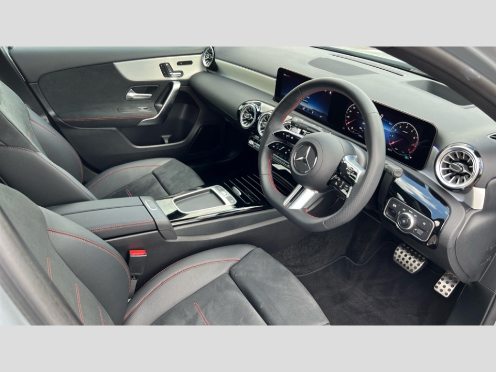 Mercedes-Benz of Southampton are delighted to offer this exceptional A 200 AMG Line Premium Plus Saloon. Finished in High-tech silver and contrasting ARTICO man-made leather / DINAMICA microfibre upholstery black interior. This particular example benefits from the Premium Plus package which consists of Blind Spot Assist, Active Parking Assist with PARKTRONIC, Electric seats, Panoramic sliding sunroof, Head-up display, 360° camera, Adaptive Highbeam Assist Plus, Heat-insulating dark-tinted glass, 64-colour ambient lighting, KEYLESS-GO, Wireless charging & MBUX augmented reality for navigation. Additional features include Cruise Control, Parking Sensors, Sat Nav, Apple Car Play / Android Auto, Full main dealer service history including first service as part of our prep process, MOT’d until May 2027 and 2 keys. Tyres all have more than 3MM of depth and the bodywork is fantastic which needs to be seen to be appreciated. If you have any questions, please do call us on 02380 619044 or email us over and one of our fantastic team will be on hand to assist.