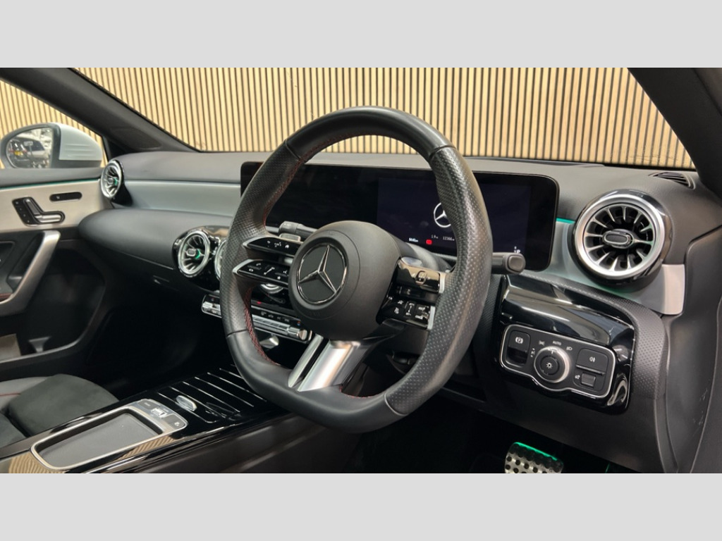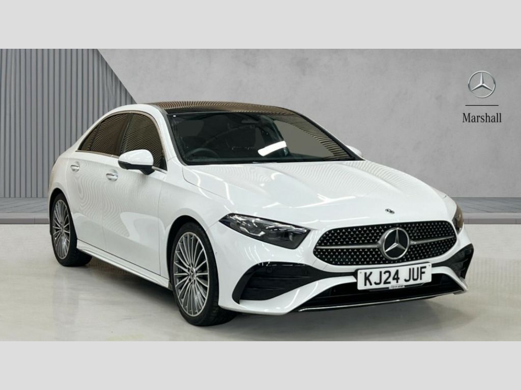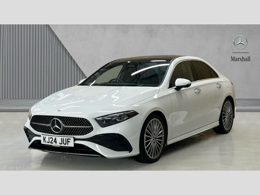 Mercedes-Benz A Class A200 AMG Line Premium Plus 4dr Auto 10.25 inch touchscreen central media display, 10.25" Digital instrument cluster display screen, Attention assist, Brake pad wear indicator warning light, Car wash mode, Direct steering, Direction indicators with lane change function, Dual bluetooth interfaces, DYNAMIC SELECT with a choice of driving modes (ECO, Comfort, Sport and Individual), ECO start/stop function, Engine start/stop button, Fingerprint scanner, Fluid level warning indicator for fuel, oil, coolant and washer fluid, Fluorescent jacket for driver, Hard-disk navigation, Head up Display, Hey Mercedes Voice activation, Lamp failure indicator, Mercedes me connect including emergency call system, accident recovery, breakdown and maintenance management, Mercedes me remote services, Outside temperature gauge, Owners manual in English, Pre-installation of private car share, Preinstallation for Mercedes Benz link, Remote boot closing, Service indicator (ASSYST), Smartphone integration with Apple CarPlay and Android auto, Speed sensitive power steering, Traffic sign assist, Trip computer in multifunction display with current consumption indicator, Wireless charging, Lowered comfort suspension, DAB Digital radio, MBUX multimedia system, Mercedes Benz advanced sound system (225 W) with 10 speakers, 1 central speaker, speakers on doors, a tweeter on door,one sub woofer + boost amplifier, 4 Electric Front and Rear windows, Adaptive brake lights, AMG body styling - AMG front apron with front splitter and AMG rear apron and visible exhaust tailpipe trim elements, Body colour bumpers, Body colour door handles with chrome inserts, Body colour side skirt, Chrome beltline strips, Diamond radiator grille with pins in fine star pattern, Electric adjustable and heated door mirrors with integrated LED side indicators, Exhaust system with 2 visible tailpipe trim elements and rear apron, Headlamp assist automatic headlamp activation, Heat insulating dark tinted rear and rear side windows, Heated glass rear windscreen + timer control, LED daytime running lights, LED tail lamp, Multibeam LED headlamps with adaptive highbeam assist and cornering function, Panoramic sliding sunroof, Privacy glass, Radio aerial, Rain sensing windscreen wipers with two sensitivity settings, Rear boot, Rear fog lights, Rear side wing doors, Third brake light featuring LED technology, 3 seat bench in 2nd row, 3 Spoke flat bottom leather multi function steering wheel with perforated leather in grip area, 40:20:40 split folding rear seats, Air conditioning - Two zone thermotronic luxury automatic climate control with display, AMG floor mats, Automatic child seat recognition sensor, Black air vents with surround in silver chrome, Black roof lining, Brushed stainless steel sports pedals with rubber studs, Electrically adjustable front memory seats including lumbar support and backrest inclination, Front centre armrest with stowage, Front seat backs luggage nets, Front sports seats with adjustable head restraints, Galvanished gear shift paddles on steering wheel, Height/reach adjustable steering column, Illuminated Mercedes Benz lettering front door sills with changeable cover, Interior lighting - 64 colour Ambient lighting, Interior mirror with reading lamps in black and frameless, Rear armrest with 2 cupholders, Seat occupancy sensor for front passenger seat, Single front passenger seat, Stowage compartment in centre console with retractable cover, Sunvisors with illuminated vanity mirrors, Twin front cupholders, Keyless go comfort pack - A Class, Light and sight package - A Class, Mirror package - A Class, Night pack - A Class Sport, Parking pack with 360 degree camera - A Class, Seat comfort pack - A Class, USB pack plus - A Class, Winter pack - A Class, 3 rear 3 point seatbelts, ABS with Brake Assist, Active bonnet, Adaptive brake assist with hold function and hill start assist, Black seatbelts, Bonnet with power domes, Childproof locks manually operated for rear doors and electrically operated for rear power windows, Crash responsive emergency lighting, Driver and passenger head and side airbags, Drivers knee airbag, Dual stage driver/passenger airbags, Electronic parking brake, ESP curve dynamic assist, ESP with ASR, Exit warning, Front and rear seatbelt reminder, ISOFIX and top tether child seat fixing points in two outer rear seats, Tyre pressure monitoring system, Warning triangle and first aid kit, Window airbags, Alarm system/interior protection/immobiliser, Guard 360 degree vehicle protection, Remote central locking and crash sensor with emergency opening function, Light longitudinal grain aluminium trim, 19" AMG multi-spoke light alloy wheels,aerodynamically optimised, painted in black with high sheen rim flange, Summer tyres, Tirefit sealant kit