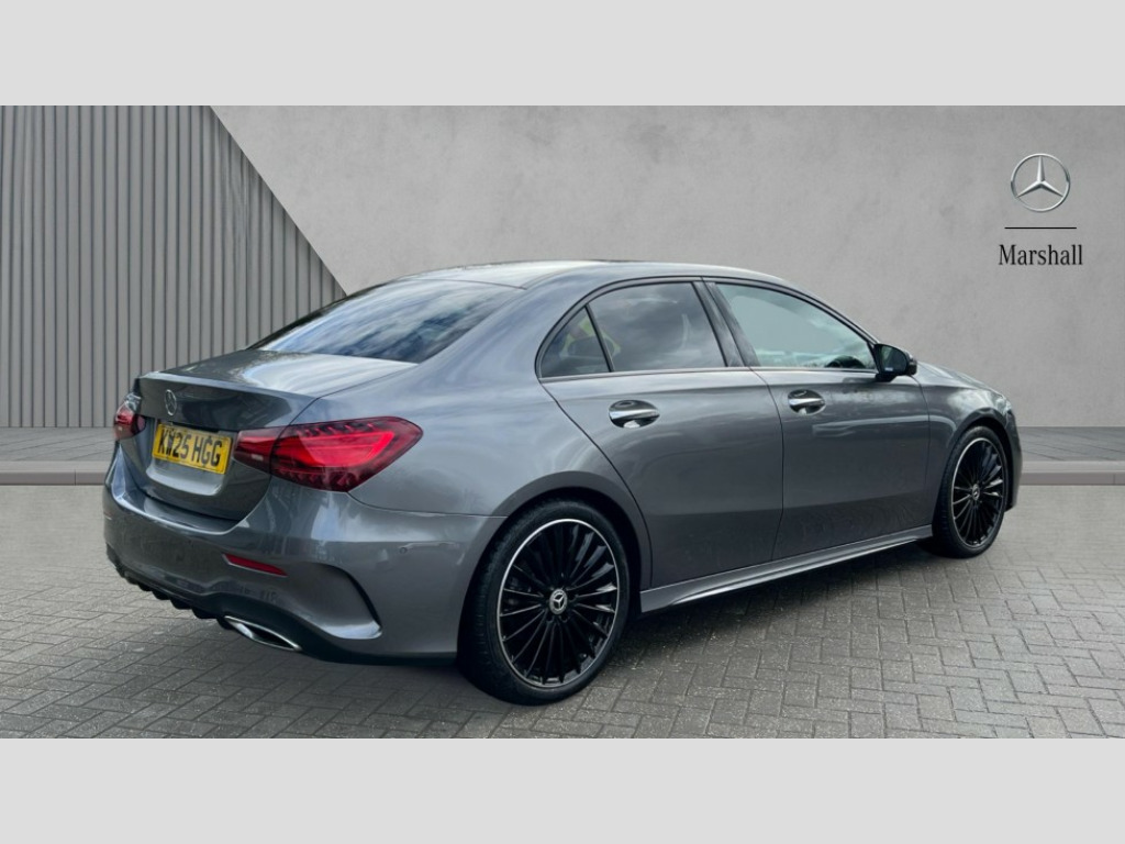 Mercedes-Benz A Class A200 AMG Line Premium Plus 4dr Auto 10.25 inch touchscreen central media display, 10.25" Digital instrument cluster display screen, Attention assist, Brake pad wear indicator warning light, Car wash mode, Direct steering, Direction indicators with lane change function, Dual bluetooth interfaces, DYNAMIC SELECT with a choice of driving modes (ECO, Comfort, Sport and Individual), ECO start/stop function, Engine start/stop button, Fingerprint scanner, Fluid level warning indicator for fuel, oil, coolant and washer fluid, Fluorescent jacket for driver, Hard-disk navigation, Head up Display, Hey Mercedes Voice activation, Lamp failure indicator, Mercedes me connect including emergency call system, accident recovery, breakdown and maintenance management, Mercedes me remote services, Outside temperature gauge, Owners manual in English, Pre-installation of private car share, Remote boot closing, Service indicator (ASSYST), Smartphone integration with Apple CarPlay and Android auto, Speed sensitive power steering, Traffic sign assist, Trip computer in multifunction display with current consumption indicator, Wireless charging, Lowered comfort suspension, DAB Digital radio, MBUX multimedia system, Mercedes Benz advanced sound system (225 W) with 10 speakers, 1 central speaker, speakers on doors, a tweeter on door,one sub woofer + boost amplifier, 4 Electric Front and Rear windows, Adaptive brake lights, AMG body styling - AMG front apron with front splitter and AMG rear apron and visible exhaust tailpipe trim elements, Body colour bumpers, Body colour door handles with chrome inserts, Body colour side skirt, Chrome beltline strips, Diamond radiator grille with pins in fine star pattern, Electric adjustable and heated door mirrors with integrated LED side indicators, Exhaust system with 2 visible tailpipe trim elements and rear apron, Headlamp assist automatic headlamp activation, Heated glass rear windscreen + timer control, LED daytime running lights, LED tail lamp, Multibeam LED headlamps with adaptive highbeam assist and cornering function, Panoramic sliding sunroof, Privacy glass, Radio aerial, Rain sensing windscreen wipers with two sensitivity settings, Rear boot, Rear fog lights, Rear side wing doors, Third brake light featuring LED technology, 3 seat bench in 2nd row, 3 Spoke flat bottom leather multi function steering wheel with perforated leather in grip area, 40:20:40 split folding rear seats, Air conditioning - Two zone thermotronic luxury automatic climate control with display, AMG floor mats, Artico man-made leather/Microcut microfibre upholstery, Automatic child seat recognition sensor, Black air vents with surround in silver chrome, Black roof lining, Brushed stainless steel sports pedals with rubber studs, Electrically adjustable front memory seats including lumbar support and backrest inclination, Front centre armrest with stowage, Front seat backs luggage nets, Front sports seats with adjustable head restraints, Galvanished gear shift paddles on steering wheel, Height/reach adjustable steering column, Illuminated Mercedes Benz lettering front door sills with changeable cover, Interior lighting - 64 colour Ambient lighting, Interior mirror with reading lamps in black and frameless, Rear armrest with 2 cupholders, Rear head restraints, Seat occupancy sensor for front passenger seat, Single front passenger seat, Stowage compartment in centre console with retractable cover, Sunvisors with illuminated vanity mirrors, Twin front cupholders, Keyless go comfort pack - A Class, Light and sight package - A Class, Mirror package - A Class, Night pack - A Class, Parking pack with 360 degree camera - A Class, Seat comfort pack - A Class, USB pack plus - A Class, Winter pack - A Class, 3 rear 3 point seatbelts, ABS with Brake Assist, Active bonnet, Adaptive brake assist with hold function and hill start assist, Bonnet with power domes, Childproof locks manually operated for rear doors and electrically operated for rear power windows, Crash responsive emergency lighting, Driver and passenger head and side airbags, Drivers knee airbag, Dual stage driver/passenger airbags, Electronic parking brake, ESP curve dynamic assist, ESP with ASR, Exit warning, Front and rear seatbelt reminder, Grey seatbelts, ISOFIX and top tether child seat fixing points in two outer rear seats, Tyre pressure monitoring system, Warning triangle and first aid kit, Window airbags, Alarm system/interior protection/immobiliser, Guard 360 degree vehicle protection, Remote central locking and crash sensor with emergency opening function, Light longitudinal grain aluminium trim, 19" AMG multi-spoke light alloy wheels,aerodynamically optimised, painted in black with high sheen rim flange, Summer tyres, Tirefit sealant kit