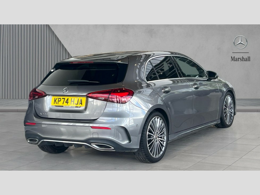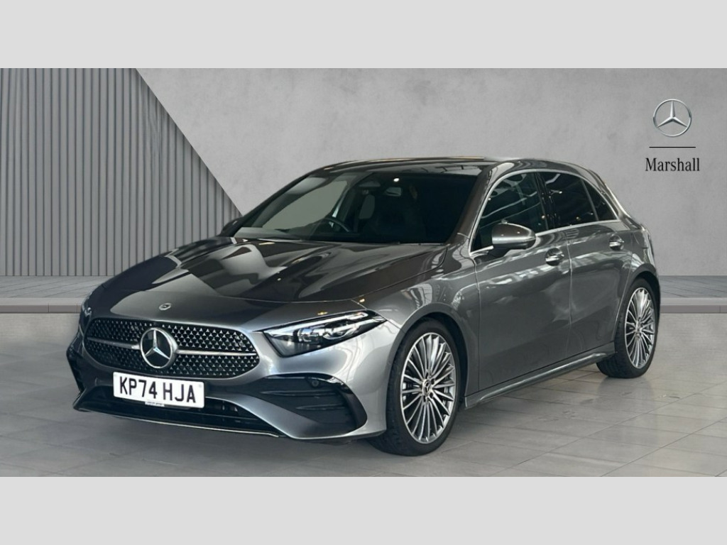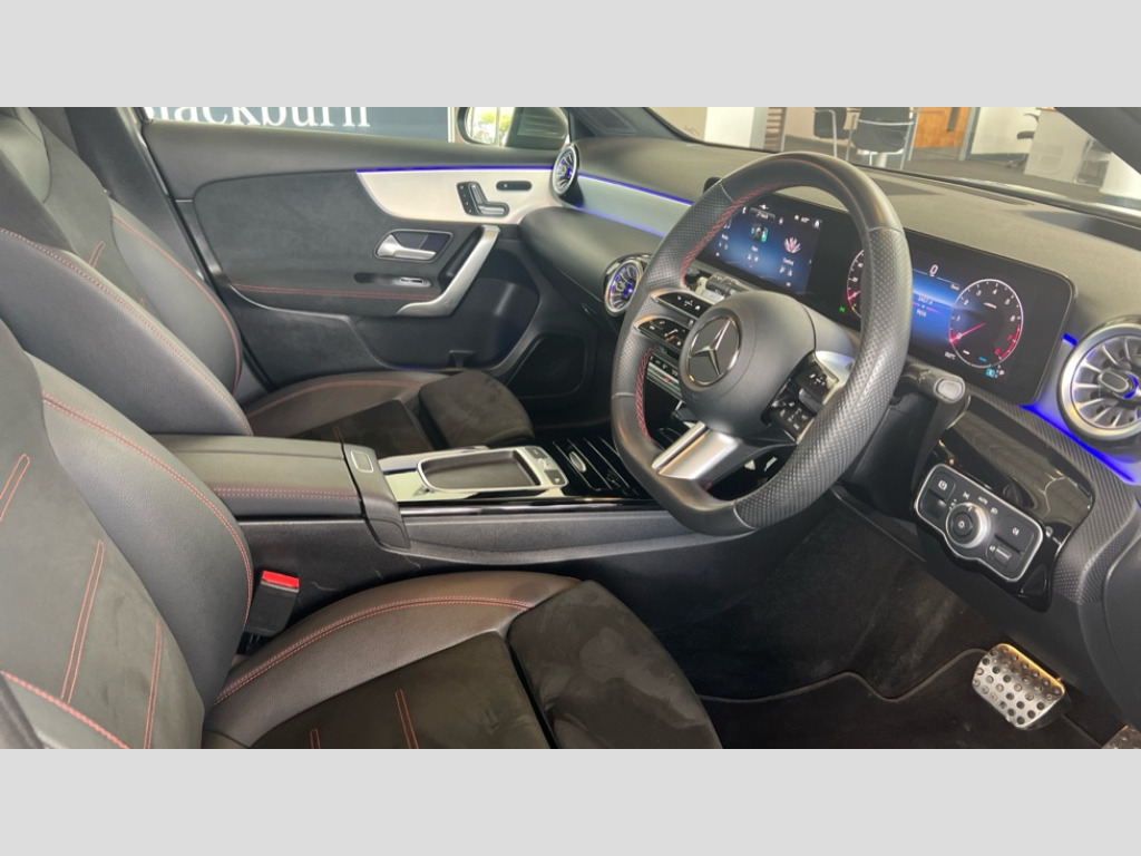 Mercedes-Benz A Class A200 AMG Line Premium Plus 5dr Auto 10.25 inch touchscreen central media display, 10.25" Digital instrument cluster display screen, Attention assist, Brake pad wear indicator warning light, Car wash mode, Direct steering, Direction indicators with lane change function, Dual bluetooth interfaces, DYNAMIC SELECT with a choice of driving modes (ECO, Comfort, Sport and Individual), Easy pack tailgate hands-free access, ECO start/stop function, Engine start/stop button, Fingerprint scanner, Fluid level warning indicator for fuel, oil, coolant and washer fluid, Fluorescent jacket for driver, Hard-disk navigation, Head up Display, Hey Mercedes Voice activation, Lamp failure indicator, Mercedes me connect including emergency call system, accident recovery, breakdown and maintenance management, Mercedes me remote services, Outside temperature gauge, Owners manual in English, Pre-installation of private car share, Preinstallation for Mercedes Benz link, Remote boot closing, Service indicator (ASSYST), Smartphone integration with Apple CarPlay and Android auto, Speed sensitive power steering, Tailgate, Traffic sign assist, Trip computer in multifunction display with current consumption indicator, Wireless charging, Lowered comfort suspension, DAB Digital radio, MBUX multimedia system, Mercedes Benz advanced sound system (225 W) with 10 speakers, 1 central speaker, speakers on doors, a tweeter on door,one sub woofer + boost amplifier, 4 Electric Front and Rear windows, Adaptive brake lights, AMG body styling - AMG front apron with front splitter and AMG rear apron and visible exhaust tailpipe trim elements, Body colour bumpers, Body colour door handles with chrome inserts, Body colour side skirt, Chrome beltline strips, Diamond radiator grille with pins in fine star pattern, Electric adjustable and heated door mirrors with integrated LED side indicators, Exhaust system with 2 visible tailpipe trim elements and rear apron, Headlamp assist automatic headlamp activation, Heat insulating dark tinted rear and rear side windows, Heated glass rear windscreen + timer control, LED daytime running lights, LED High level third brake light, LED tail lamp, Multibeam LED headlamps with adaptive highbeam assist and cornering function, Panoramic sliding sunroof, Privacy glass, Radio aerial, Rain sensing windscreen wipers with two sensitivity settings, Rear fog lights, Rear side wing doors, Rear windscreen wiper, 3 seat bench in 2nd row, 3 Spoke flat bottom leather multi function steering wheel with perforated leather in grip area, 40:20:40 split folding rear seats, Air conditioning - Two zone thermotronic luxury automatic climate control with display, AMG floor mats, Automatic child seat recognition sensor, Black air vents with surround in silver chrome, Black roof lining, Brushed stainless steel sports pedals with rubber studs, Electrically adjustable front memory seats including lumbar support and backrest inclination, Front centre armrest with stowage, Front seat backs luggage nets, Galvanished gear shift paddles on steering wheel, Height/reach adjustable steering column, Illuminated Mercedes Benz lettering front door sills with changeable cover, Interior lighting - 64 colour Ambient lighting, Interior mirror with reading lamps in black and frameless, Rear armrest with 2 cupholders, Seat occupancy sensor for front passenger seat, Single front passenger seat, Sports seats with integrated headrests, Stowage compartment in centre console with retractable cover, Sunvisors with illuminated vanity mirrors, Twin front cupholders, Light and sight package - A Class, Mirror package - A Class, Night pack - A Class Sport, Parking pack with 360 degree camera - A Class, Seat comfort pack - A Class, USB pack plus - A Class, Winter pack - A Class, 3 rear 3 point seatbelts, ABS with Brake Assist, Active bonnet, Adaptive brake assist with hold function and hill start assist, Black seatbelts, Bonnet with power domes, Childproof locks manually operated for rear doors and electrically operated for rear power windows, Crash responsive emergency lighting, Driver and passenger head and side airbags, Drivers knee airbag, Dual stage driver/passenger airbags, Electronic parking brake, ESP curve dynamic assist, ESP with ASR, Exit warning, Front and rear seatbelt reminder, ISOFIX and top tether child seat fixing points in two outer rear seats, Tyre pressure monitoring system, Warning triangle and first aid kit, Window airbags, Alarm system/interior protection/immobiliser, Guard 360 degree vehicle protection, Keyless entry lock/unlock, Keyless Go, Remote central locking and crash sensor with emergency opening function, Light longitudinal grain aluminium trim, 19" AMG multi-spoke light alloy wheels,aerodynamically optimised, painted in black with high sheen rim flange, Summer tyres, Tirefit sealant kit