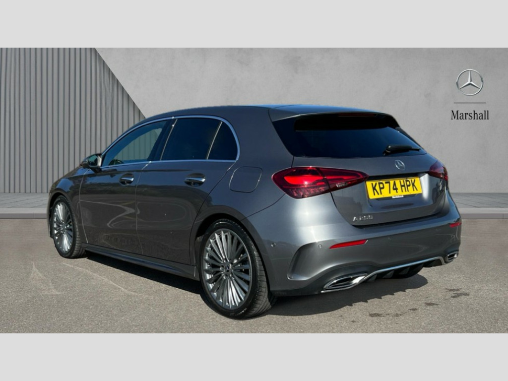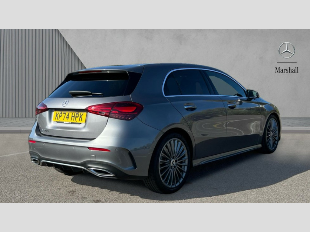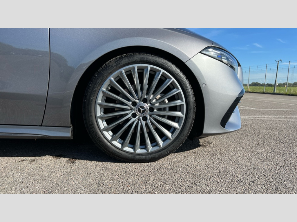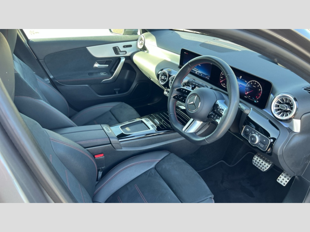 Terms and conditions apply 10.25 inch touchscreen central media display, 10.25" Digital instrument cluster display screen, Attention assist, Brake pad wear indicator warning light, Car wash mode, Direct steering, Direction indicators with lane change function, Dual bluetooth interfaces, DYNAMIC SELECT with a choice of driving modes (ECO, Comfort, Sport and Individual), Easy pack tailgate hands-free access, ECO start/stop function, Engine start/stop button, Fingerprint scanner, Fluid level warning indicator for fuel, oil, coolant and washer fluid, Fluorescent jacket for driver, Hard-disk navigation, Head up Display, Hey Mercedes Voice activation, Lamp failure indicator, Mercedes me connect including emergency call system, accident recovery, breakdown and maintenance management, Mercedes me remote services, Outside temperature gauge, Owners manual in English, Pre-installation of private car share, Preinstallation for Mercedes Benz link, Remote boot closing, Service indicator (ASSYST), Smartphone integration with Apple CarPlay and Android auto, Speed sensitive power steering, Tailgate, Traffic sign assist, Trip computer in multifunction display with current consumption indicator, Wireless charging, Lowered comfort suspension, DAB Digital radio, MBUX multimedia system, Mercedes Benz advanced sound system (225 W) with 10 speakers, 1 central speaker, speakers on doors, a tweeter on door,one sub woofer + boost amplifier, 4 Electric Front and Rear windows, Adaptive brake lights, AMG body styling - AMG front apron with front splitter and AMG rear apron and visible exhaust tailpipe trim elements, Body colour bumpers, Body colour door handles with chrome inserts, Body colour side skirt, Chrome beltline strips, Diamond radiator grille with pins in fine star pattern, Electric adjustable and heated door mirrors with integrated LED side indicators, Exhaust system with 2 visible tailpipe trim elements and rear apron, Headlamp assist automatic headlamp activation, Heat insulating dark tinted rear and rear side windows, Heated glass rear windscreen + timer control, LED daytime running lights, LED High level third brake light, LED tail lamp, Multibeam LED headlamps with adaptive highbeam assist and cornering function, Panoramic sliding sunroof, Privacy glass, Radio aerial, Rain sensing windscreen wipers with two sensitivity settings, Rear fog lights, Rear side wing doors, Rear windscreen wiper, 3 seat bench in 2nd row, 3 Spoke flat bottom leather multi function steering wheel with perforated leather in grip area, 40:20:40 split folding rear seats, Air conditioning - Two zone thermotronic luxury automatic climate control with display, AMG floor mats, Automatic child seat recognition sensor, Black air vents with surround in silver chrome, Black roof lining, Brushed stainless steel sports pedals with rubber studs, Electrically adjustable front memory seats including lumbar support and backrest inclination, Front centre armrest with stowage, Front seat backs luggage nets, Galvanished gear shift paddles on steering wheel, Height/reach adjustable steering column, Illuminated Mercedes Benz lettering front door sills with changeable cover, Interior lighting - 64 colour Ambient lighting, Interior mirror with reading lamps in black and frameless, Rear armrest with 2 cupholders, Seat occupancy sensor for front passenger seat, Single front passenger seat, Sports seats with integrated headrests, Stowage compartment in centre console with retractable cover, Sunvisors with illuminated vanity mirrors, Twin front cupholders, Light and sight package - A Class, Mirror package - A Class, Night pack - A Class Sport, Parking pack with 360 degree camera - A Class, Seat comfort pack - A Class, USB pack plus - A Class, Winter pack - A Class, 3 rear 3 point seatbelts, ABS with Brake Assist, Active bonnet, Adaptive brake assist with hold function and hill start assist, Black seatbelts, Bonnet with power domes, Childproof locks manually operated for rear doors and electrically operated for rear power windows, Crash responsive emergency lighting, Driver and passenger head and side airbags, Drivers knee airbag, Dual stage driver/passenger airbags, Electronic parking brake, ESP curve dynamic assist, ESP with ASR, Exit warning, Front and rear seatbelt reminder, ISOFIX and top tether child seat fixing points in two outer rear seats, Tyre pressure monitoring system, Warning triangle and first aid kit, Window airbags, Alarm system/interior protection/immobiliser, Guard 360 degree vehicle protection, Keyless entry lock/unlock, Keyless Go, Remote central locking and crash sensor with emergency opening function, Light longitudinal grain aluminium trim, 19" AMG multi-spoke light alloy wheels,aerodynamically optimised, painted in black with high sheen rim flange, Summer tyres, Tirefit sealant kit
