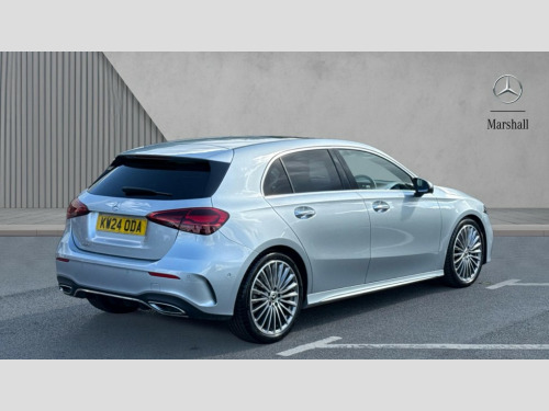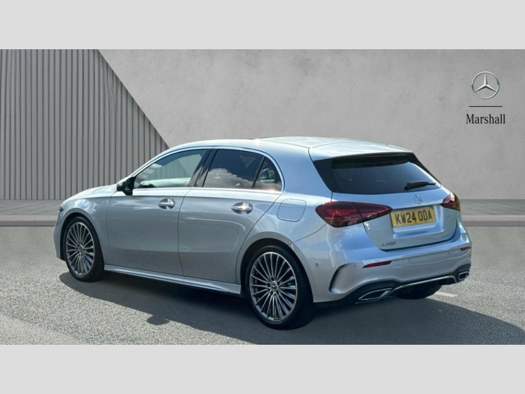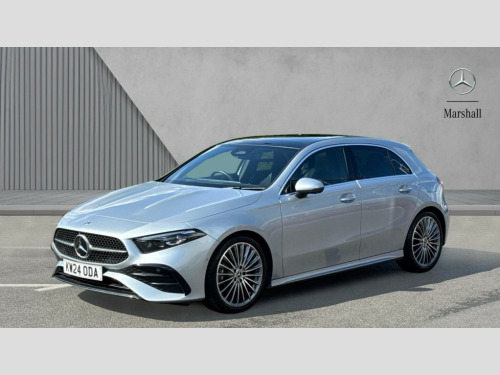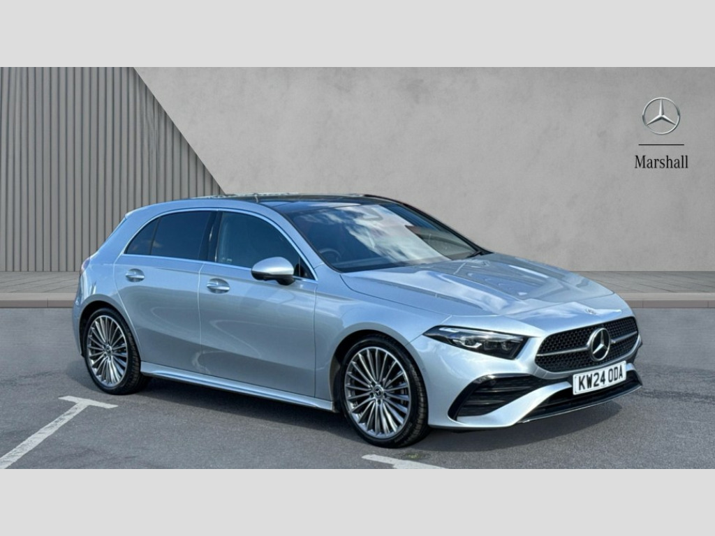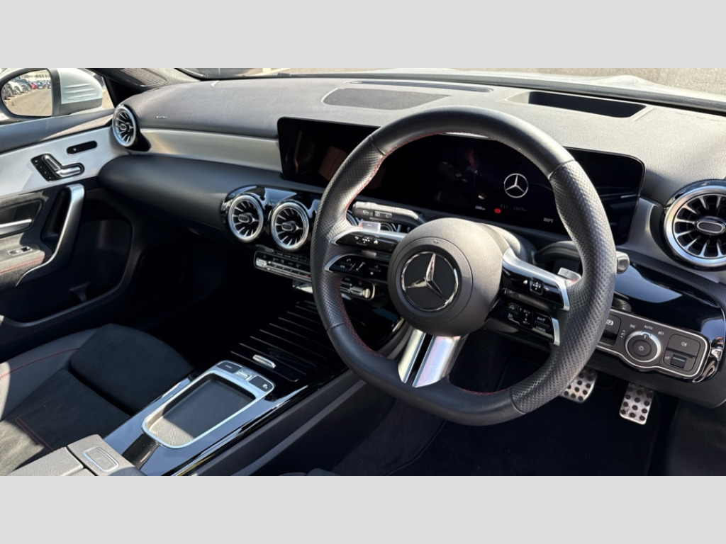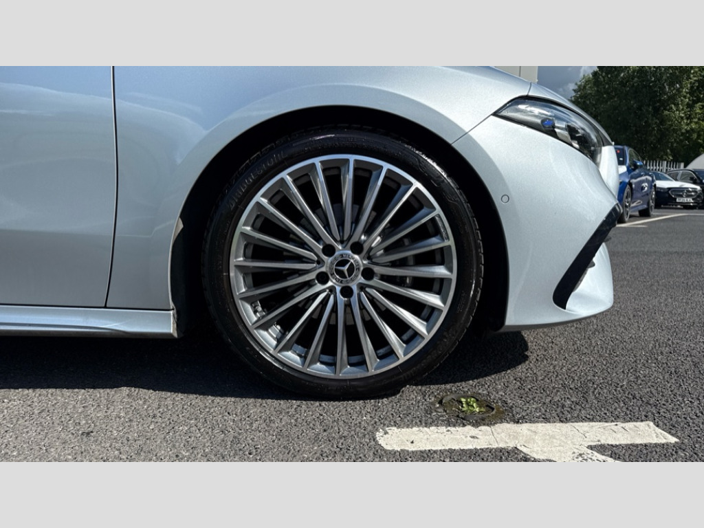 Mercedes-Benz A Class A200 AMG Line Premium Plus 5dr Auto 10.25 inch touchscreen central media display, 10.25" Digital instrument cluster display screen, Attention assist, Brake pad wear indicator warning light, Car wash mode, Direct steering, Direction indicators with lane change function, Dual bluetooth interfaces, DYNAMIC SELECT with a choice of driving modes (ECO, Comfort, Sport and Individual), Easy pack tailgate hands-free access, ECO start/stop function, Engine start/stop button, Fluid level warning indicator for fuel, oil, coolant and washer fluid, Fluorescent jacket for driver, Hard-disk navigation, Head up Display, Hey Mercedes Voice activation, Lamp failure indicator, MBUX Interior assistant, Mercedes me connect including emergency call system, accident recovery, breakdown and maintenance management, Mercedes me remote services, Outside temperature gauge, Owners manual in English, Pre-installation of private car share, Preinstallation for Mercedes Benz link, Remote boot closing, Service indicator (ASSYST), Smartphone integration with Apple CarPlay and Android auto, Speed sensitive power steering, Tailgate, Traffic sign assist, Trip computer in multifunction display with current consumption indicator, Wireless charging, Lowered comfort suspension, DAB Digital radio, MBUX multimedia system, Mercedes Benz advanced sound system (225 W) with 10 speakers, 1 central speaker, speakers on doors, a tweeter on door,one sub woofer + boost amplifier, 4 Electric Front and Rear windows, Adaptive brake lights, AMG body styling - AMG front apron with front splitter and AMG rear apron and visible exhaust tailpipe trim elements, Body colour bumpers, Body colour door handles with chrome inserts, Body colour side skirt, Body coloured door mirrors, Chrome beltline strips, Diamond radiator grille with pins in fine star pattern, Electric adjustable and heated door mirrors with integrated LED side indicators, Exhaust system with 2 visible tailpipe trim elements and rear apron, Headlamp assist automatic headlamp activation, Heat insulating dark tinted rear and rear side windows, Heated glass rear windscreen + timer control, LED daytime running lights, LED High level third brake light, LED tail lamp, Multibeam LED headlamps with adaptive highbeam assist and cornering function, Panoramic sliding sunroof, Privacy glass, Radio aerial, Rain sensing windscreen wipers with two sensitivity settings, Rear fog lights, Rear side wing doors, Rear windscreen wiper, Surround lighting with logo projection, Window line trim strip in chrome, 3 seat bench in 2nd row, 3 Spoke flat bottom leather multi function steering wheel with perforated leather in grip area, 40:20:40 split folding rear seats, Air conditioning - Two zone thermotronic luxury automatic climate control with display, AMG floor mats, Automatic child seat recognition sensor, Black air vents with surround in silver chrome, Black roof lining, Brushed stainless steel sports pedals with rubber studs, Electrically adjustable front memory seats including lumbar support and backrest inclination, Front centre armrest with stowage, Front seat backs luggage nets, Galvanished gear shift paddles on steering wheel, Heated front seats, Height/reach adjustable steering column, Illuminated Mercedes Benz lettering front door sills with changeable cover, Interior lighting - 64 colour Ambient lighting, Interior mirror with reading lamps in black and frameless, Rear armrest with 2 cupholders, Seat occupancy sensor for front passenger seat, Single front passenger seat, Sports seats with integrated headrests, Stowage compartment in centre console with retractable cover, Sunvisors with illuminated vanity mirrors, Twin front cupholders, Light and sight pack - A Class, Mirror package - A Class, Parking pack with 360 degree camera - A Class, Seat comfort pack - A Class, USB pack plus - A Class, 3 rear 3 point seatbelts, ABS with Brake Assist, Active bonnet, Adaptive brake assist with hold function and hill start assist, Black seatbelts, Bonnet with power domes, Childproof locks manually operated for rear doors and electrically operated for rear power windows, Crash responsive emergency lighting, Driver and passenger head and side airbags, Drivers knee airbag, Dual stage driver/passenger airbags, Electronic parking brake, ESP curve dynamic assist, ESP with ASR, Exit warning, Front and rear seatbelt reminder, ISOFIX and top tether child seat fixing points in two outer rear seats, Tyre pressure monitoring system, Warning triangle and first aid kit, Window airbags, Alarm system/interior protection/immobiliser, Guard 360 degree vehicle protection, Keyless entry lock/unlock, Keyless Go, Remote central locking and crash sensor with emergency opening function, Light longitudinal grain aluminium trim, 19" AMG multi-spoke light alloy wheels,aerodynamically optimised, painted in titanium grey with high sheen finish, Summer tyres, Tirefit sealant kit