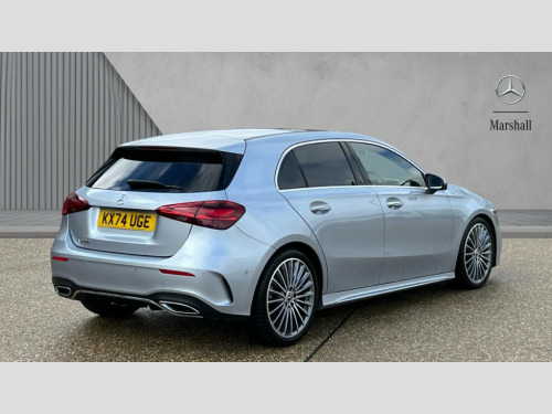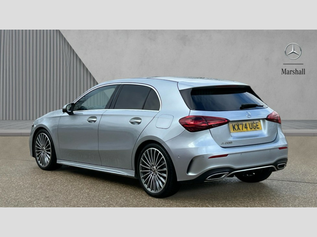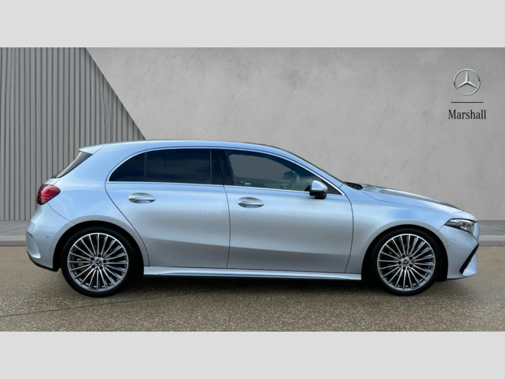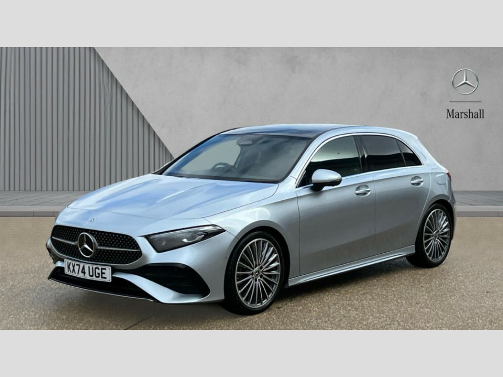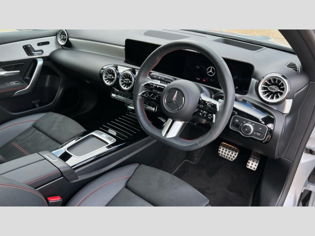 Mercedes-Benz A Class A200 AMG Line Premium Plus 5dr Auto 10.25 inch touchscreen central media display, 10.25" Digital instrument cluster display screen, Attention assist, Brake pad wear indicator warning light, Car wash mode, Direct steering, Direction indicators with lane change function, Dual bluetooth interfaces, DYNAMIC SELECT with a choice of driving modes (ECO, Comfort, Sport and Individual), Easy pack tailgate hands-free access, ECO start/stop function, Engine start/stop button, Fingerprint scanner, Fluid level warning indicator for fuel, oil, coolant and washer fluid, Fluorescent jacket for driver, Hard-disk navigation, Head up Display, Hey Mercedes Voice activation, Lamp failure indicator, Mercedes me connect including emergency call system, accident recovery, breakdown and maintenance management, Mercedes me remote services, Outside temperature gauge, Owners manual in English, Pre-installation of private car share, Preinstallation for Mercedes Benz link, Remote boot closing, Service indicator (ASSYST), Smartphone integration with Apple CarPlay and Android auto, Speed sensitive power steering, Tailgate, Traffic sign assist, Trip computer in multifunction display with current consumption indicator, Wireless charging, Lowered comfort suspension, DAB Digital radio, MBUX multimedia system, Mercedes Benz advanced sound system (225 W) with 10 speakers, 1 central speaker, speakers on doors, a tweeter on door,one sub woofer + boost amplifier, 4 Electric Front and Rear windows, Adaptive brake lights, AMG body styling - AMG front apron with front splitter and AMG rear apron and visible exhaust tailpipe trim elements, Body colour bumpers, Body colour door handles with chrome inserts, Body colour side skirt, Chrome beltline strips, Diamond radiator grille with pins in fine star pattern, Electric adjustable and heated door mirrors with integrated LED side indicators, Exhaust system with 2 visible tailpipe trim elements and rear apron, Headlamp assist automatic headlamp activation, Heat insulating dark tinted rear and rear side windows, Heated glass rear windscreen + timer control, LED daytime running lights, LED High level third brake light, LED tail lamp, Multibeam LED headlamps with adaptive highbeam assist and cornering function, Panoramic sliding sunroof, Privacy glass, Radio aerial, Rain sensing windscreen wipers with two sensitivity settings, Rear fog lights, Rear side wing doors, Rear windscreen wiper, 3 seat bench in 2nd row, 3 Spoke flat bottom leather multi function steering wheel with perforated leather in grip area, 40:20:40 split folding rear seats, Air conditioning - Two zone thermotronic luxury automatic climate control with display, AMG floor mats, Automatic child seat recognition sensor, Black air vents with surround in silver chrome, Black roof lining, Brushed stainless steel sports pedals with rubber studs, Electrically adjustable front memory seats including lumbar support and backrest inclination, Front centre armrest with stowage, Front seat backs luggage nets, Galvanished gear shift paddles on steering wheel, Height/reach adjustable steering column, Illuminated Mercedes Benz lettering front door sills with changeable cover, Interior lighting - 64 colour Ambient lighting, Interior mirror with reading lamps in black and frameless, Rear armrest with 2 cupholders, Seat occupancy sensor for front passenger seat, Single front passenger seat, Sports seats with integrated headrests, Stowage compartment in centre console with retractable cover, Sunvisors with illuminated vanity mirrors, Twin front cupholders, Light and sight package - A Class, Mirror package - A Class, Night pack - A Class Sport, Parking pack with 360 degree camera - A Class, Seat comfort pack - A Class, USB pack plus - A Class, Winter pack - A Class, 3 rear 3 point seatbelts, ABS with Brake Assist, Active bonnet, Adaptive brake assist with hold function and hill start assist, Black seatbelts, Bonnet with power domes, Childproof locks manually operated for rear doors and electrically operated for rear power windows, Crash responsive emergency lighting, Driver and passenger head and side airbags, Drivers knee airbag, Dual stage driver/passenger airbags, Electronic parking brake, ESP curve dynamic assist, ESP with ASR, Exit warning, Front and rear seatbelt reminder, ISOFIX and top tether child seat fixing points in two outer rear seats, Tyre pressure monitoring system, Warning triangle and first aid kit, Window airbags, Alarm system/interior protection/immobiliser, Guard 360 degree vehicle protection, Keyless entry lock/unlock, Keyless Go, Remote central locking and crash sensor with emergency opening function, Light longitudinal grain aluminium trim, 19" AMG multi-spoke light alloy wheels,aerodynamically optimised, painted in black with high sheen rim flange, Summer tyres, Tirefit sealant kit