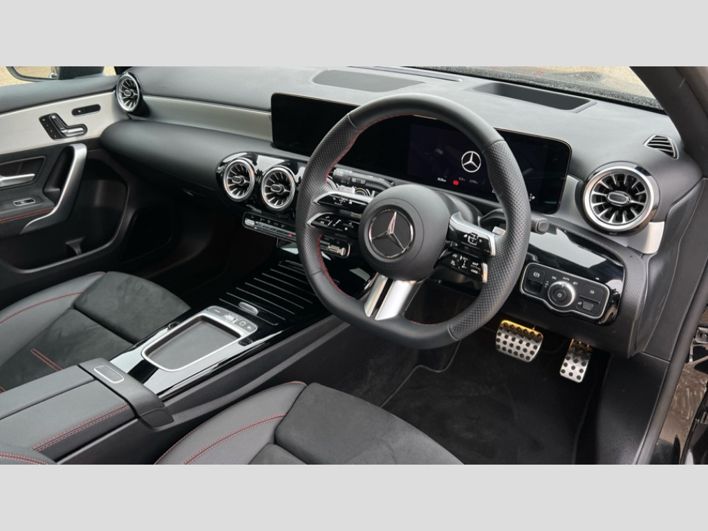 Mercedes-Benz A Class A200 AMG Line Premium Plus 5dr Auto 10.25 inch touchscreen central media display, 10.25" Digital instrument cluster display screen, Attention assist, Brake pad wear indicator warning light, Car wash mode, Direct steering, Direction indicators with lane change function, Dual bluetooth interfaces, DYNAMIC SELECT with a choice of driving modes (ECO, Comfort, Sport and Individual), ECO start/stop function, Engine start/stop button, Fingerprint scanner, Fluid level warning indicator for fuel, oil, coolant and washer fluid, Fluorescent jacket for driver, Hard-disk navigation, Head up Display, Hey Mercedes Voice activation, Lamp failure indicator, Mercedes me connect including emergency call system, accident recovery, breakdown and maintenance management, Mercedes me remote services, Outside temperature gauge, Owners manual in English, Pre-installation of private car share, Remote boot closing, Service indicator (ASSYST), Smartphone integration with Apple CarPlay and Android auto, Speed sensitive power steering, Tailgate, Traffic sign assist, Trip computer in multifunction display with current consumption indicator, Wireless charging, Lowered comfort suspension, DAB Digital radio, MBUX multimedia system, Mercedes Benz advanced sound system (225 W) with 10 speakers, 1 central speaker, speakers on doors, a tweeter on door,one sub woofer + boost amplifier, 4 Electric Front and Rear windows, Adaptive brake lights, AMG body styling - AMG front apron with front splitter and AMG rear apron and visible exhaust tailpipe trim elements, Body colour bumpers, Body colour door handles with chrome inserts, Body colour side skirt, Chrome beltline strips, Diamond radiator grille with pins in fine star pattern, Electric adjustable and heated door mirrors with integrated LED side indicators, Exhaust system with 2 visible tailpipe trim elements and rear apron, Headlamp assist automatic headlamp activation, Heated glass rear windscreen + timer control, LED daytime running lights, LED High level third brake light, LED tail lamp, Multibeam LED headlamps with adaptive highbeam assist and cornering function, Panoramic sliding sunroof, Privacy glass, Radio aerial, Rain sensing windscreen wipers with two sensitivity settings, Rear fog lights, Rear side wing doors, Rear windscreen wiper, 3 seat bench in 2nd row, 3 Spoke flat bottom leather multi function steering wheel with perforated leather in grip area, 40:20:40 split folding rear seats, Air conditioning - Two zone thermotronic luxury automatic climate control with display, AMG floor mats, Artico man-made leather/Microcut microfibre upholstery, Automatic child seat recognition sensor, Black air vents with surround in silver chrome, Black roof lining, Brushed stainless steel sports pedals with rubber studs, Electrically adjustable front memory seats including lumbar support and backrest inclination, Front centre armrest with stowage, Front seat backs luggage nets, Galvanished gear shift paddles on steering wheel, Height/reach adjustable steering column, Illuminated Mercedes Benz lettering front door sills with changeable cover, Interior lighting - 64 colour Ambient lighting, Interior mirror with reading lamps in black and frameless, Rear armrest with 2 cupholders, Rear head restraints, Seat occupancy sensor for front passenger seat, Single front passenger seat, Sports seats with integrated headrests, Stowage compartment in centre console with retractable cover, Sunvisors with illuminated vanity mirrors, Twin front cupholders, Light and sight package - A Class, Mirror package - A Class, Night pack - A Class, Parking pack with 360 degree camera - A Class, Seat comfort pack - A Class, USB pack plus - A Class, Winter pack - A Class, 3 rear 3 point seatbelts, ABS with Brake Assist, Active bonnet, Adaptive brake assist with hold function and hill start assist, Bonnet with power domes, Childproof locks manually operated for rear doors and electrically operated for rear power windows, Crash responsive emergency lighting, Driver and passenger head and side airbags, Drivers knee airbag, Dual stage driver/passenger airbags, Electronic parking brake, ESP curve dynamic assist, ESP with ASR, Exit warning, Front and rear seatbelt reminder, Grey seatbelts, ISOFIX and top tether child seat fixing points in two outer rear seats, Tyre pressure monitoring system, Warning triangle and first aid kit, Window airbags, Alarm system/interior protection/immobiliser, Guard 360 degree vehicle protection, Keyless entry lock/unlock, Keyless Go, Remote central locking and crash sensor with emergency opening function, Light longitudinal grain aluminium trim, 19" AMG multi-spoke light alloy wheels,aerodynamically optimised, painted in black with high sheen rim flange, Summer tyres, Tirefit sealant kit