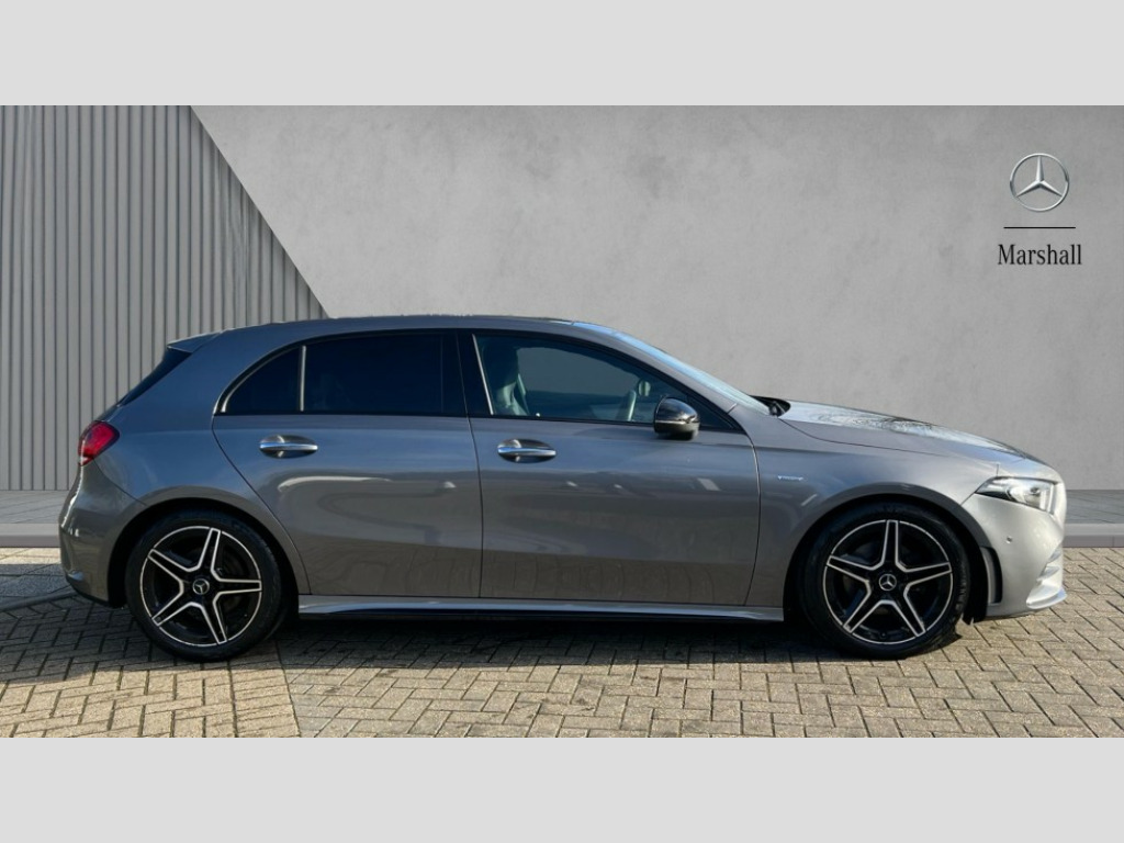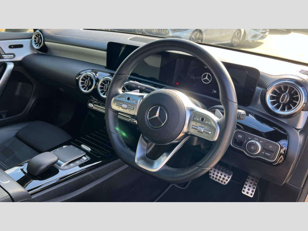 Mercedes-Benz A Class A200 AMG Line Premium Plus Edition 5dr Auto 10.25" Digital instrument cluster display screen, 10.25" media display, 180 degree rear view camera with parking guidelines, Active parking assist with visual and audible warning of detected obstacles, Attention assist, Brake pad wear indicator warning light, Car wash mode, Direct steering, Dual bluetooth interfaces, DYNAMIC SELECT with a choice of driving modes (ECO, Comfort, Sport and Individual), ECO start/stop function, Fluid level warning indicator for fuel, oil, coolant and washer fluid, Hard-disk navigation, Hey Mercedes Voice activation, Lamp failure indicator, Lane keeping system, Mercedes me connect including emergency call system, accident recovery, breakdown and maintenance management, Mercedes me remote services, Outside temperature gauge, Owners manual in English, Pre-installation for private car sharing, Preinstallation for Mercedes Benz link, Service indicator (ASSYST), Smartphone integration with Apple CarPlay and Android auto, Traffic sign assist, Trip computer, Ultrasonic sensors positioned in the front and rear bumpers, Lowered comfort suspension, Rear axle torsion beam, 10 speakers, 2 USB ports (type C) in rear stowage compartment and one in front of center console, DAB Digital radio, MBUX multimedia system with DAB digital radio and touchpad including satellite navigation, Mercedes-Benz sound system - 100W, 4 Electric Front and Rear windows, Adaptive brake lights, AMG bodystyling - Front apron with splitter in chrome, rear apron with chrome trim and chrome visible trim elements in tailpipe, Black weather strip, Body colour bumpers, Body colour door handles, Body colour side skirt, Body coloured door mirrors, Electric adjustable and heated door mirrors with integrated LED side indicators, Exclusive diamond radiator grille, Exhaust system - Twin visible tailpipes in polished stainless steel, Headlamp assist automatic headlamp activation, Heated glass rear windscreen + timer control, High gloss black beltline, LED High level third brake light, LED tail lamp, Multibeam LED with adaptive highbeam assist plus, Panoramic sliding sunroof, Privacy glass, Radio aerial, Rain sensing windscreen wipers with two sensitivity settings, Rear fog lights, Rear wiper, Window line trim strip in high gloss black, 3 Spoke flat bottom leather multi function steering wheel with perforated leather in grip area, 40:20:40 split folding rear seats, Artico man-made leather/Microfibre Dinamica upholstery with contrast stitching in light grey, Auto Mercedes-Benz child seat recognition sensor, Black air vents with surround in silver chrome, Black roof lining, Brushed stainless steel sports pedals with rubber studs, Controller on centre console with chrome surround, Floor mats with black top stitching and embroidered edition logo and piping in light grey, Front centre armrest with storage compartment, Front seat backs luggage nets, Front seat cushion length adjustment, Galvanished gear shift paddles on steering wheel, Heated front seats, Height/reach adjustable steering column, Illuminated front door sills with changeable cover, Interior lighting - 64 colour Ambient lighting, Interior mirror with reading lamps in black and frameless, Rear armrest with 2 cupholders, Rear head restraints, Seat occupancy sensor for front passenger seat, Sports seats with integrated headrests, Stowage compartment in centre console with retractable cover, Sunvisors with illuminated vanity mirrors, Touchpad on center console, Twin front cupholders, Two zone thermotronic luxury automatic climate control, Light and sight pack - A Class, Mirror package - A Class, Night pack - A Class Saloon/Hatchback, Seat comfort pack - A Class, 3 rear 3 point seatbelts, ABS with Brake Assist, Active bonnet, Adaptive brake assist with hold function and hill start assist, Black seatbelts, Childproof locks manually operated for rear doors and electrically operated for rear power windows, Crash responsive emergency lighting, Driver and passenger head and side airbags, Drivers knee airbag, Dual stage driver/passenger airbags, Electronic parking brake, ESP curve dynamic assist, ESP with ASR, Front and rear seatbelt reminder, Front brake callipers with Mercedes Benz lettering, ISOFIX and top tether child seat fixing points in two outer rear seats, Tyre pressure monitoring system, Warning triangle and first aid kit, Window airbags, Alarm system/interior protection/immobiliser, Keyless entry lock/unlock, Keyless Go, Remote central locking and crash sensor with emergency opening function, Urban guard vehicle protection system with immobiliser and interior protection, Matrix look light longitudinal grain aluminium trim element, 18" AMG 5 twin spoke light alloy wheels aerodynamically optimised painted in black with highsheen finish, Summer tyres, Tirefit sealant kit