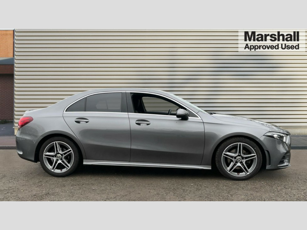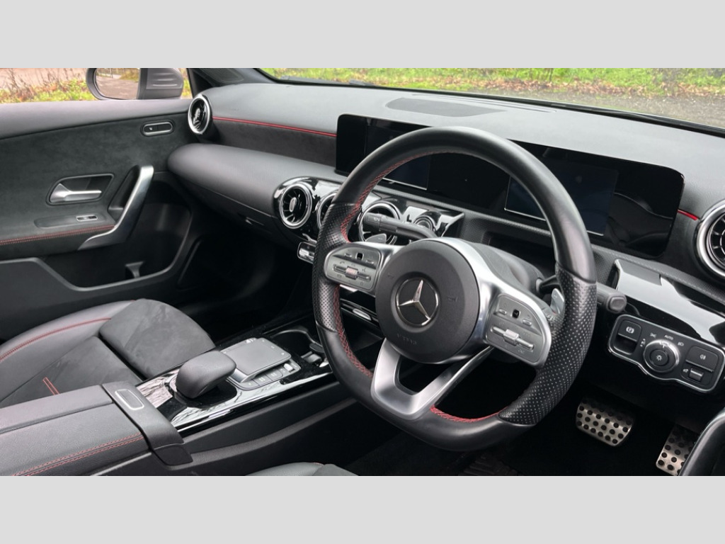 Mercedes-Benz A Class A200d AMG Line 4dr Auto 180 degree rear view camera with parking guidelines, 7" colour screen in instrument panel, 7" touchscreen media display, Attention assist, Brake pad wear indicator warning light, Car wash mode, Cruise control + speed limiter, Direct steering, Dual bluetooth interfaces, DYNAMIC SELECT with a choice of driving modes (ECO, Comfort, Sport and Individual), ECO start/stop function, Fluid level warning indicator for fuel, oil, coolant and washer fluid, Hard-disk navigation, Hey Mercedes Voice activation, Lamp failure indicator, Mercedes me connect including emergency call system, accident recovery, breakdown and maintenance management, Mercedes me remote services, Outside temperature gauge, Owners manual in English, Pre-installation for private car sharing, Preinstallation for Mercedes Benz link, Service indicator (ASSYST), Speed sensitive power steering, Trip computer, Lowered comfort suspension, Rear axle torsion beam, 2 USB ports (type C) in rear stowage compartment and one in front of center console, 6 speakers, DAB Digital radio, MBUX multimedia system with DAB digital radio and touchpad including satellite navigation, Mercedes-Benz sound system - 100W, 4 Electric Front and Rear windows, Adaptive brake lights, AMG bodystyling - Front apron with splitter in chrome, rear apron with chrome trim and chrome visible trim elements in tailpipe, Black weather strip, Body colour bumpers, Body colour door handles, Body colour side skirt, Body coloured door mirrors, Chrome beltline trim, Diamond radiator grille with chrome pins and silver louvre + chrome insert, Electric adjustable and heated door mirrors with integrated LED side indicators, Exhaust system - Twin visible tailpipes in polished stainless steel, Headlamp assist automatic headlamp activation, Heated glass rear windscreen + timer control, LED high performance headlamps with integrated LED daytime running lights, LED tail lamp, LED third brake light, Privacy glass, Radio aerial, Rain sensing windscreen wipers with two sensitivity settings, Rear fog lights, Window line trim strip in chrome, 3 Spoke flat bottom leather multi function steering wheel with perforated leather in grip area, 40:20:40 split folding rear seats, Artico man-made leather/Microfibre Dinamica upholstery with red contrast stitching, Auto Mercedes-Benz child seat recognition sensor, Black air vents with surround in silver chrome, Black roof lining, Brushed stainless steel sports pedals with rubber studs, Controller on centre console with chrome surround, Floor mats with stitched edging and AMG lettering, Front centre armrest with storage compartment, Front door sills with Mercedes Benz lettering, Front seat backs luggage nets, Front seat cushion length adjustment, Front sports seats with adjustable head restraints, Galvanished gear shift paddles on steering wheel, Heated front seats, Height/reach adjustable steering column, Interior mirror with reading lamps in black and frameless, Manual height adjustable front seats, Rear head restraints, Seat occupancy sensor for front passenger seat, Stowage compartment in centre console with retractable cover, Sunvisors with illuminated vanity mirrors, Touchpad on center console, Twin front cupholders, Two zone thermotronic luxury automatic climate control, Light and sight pack - A Class, Seat comfort pack - A Class, 3 rear 3 point seatbelts, ABS with Brake Assist, Active bonnet, Active brake assist includes forward collision warning system with autonomous braking, Adaptive brake assist with hold function and hill start assist, Black seatbelts, Childproof locks manually operated for rear doors and electrically operated for rear power windows, Crash responsive emergency lighting, Driver and passenger head and side airbags, Drivers knee airbag, Dual stage driver/passenger airbags, Electronic parking brake, ESP curve dynamic assist, ESP with ASR, Front and rear seatbelt reminder, Front brake callipers with Mercedes Benz lettering, ISOFIX and top tether child seat fixing points in two outer rear seats, Tyre pressure monitoring system, Warning triangle and first aid kit, Window airbags, Alarm system/interior protection/immobiliser, Keyless Go, Remote central locking and crash sensor with emergency opening function, Urban guard vehicle protection system with immobiliser and interior protection, Dinamica microfibre trim in black, 18" AMG 5 twin spoke light alloy wheels in titanium grey with highsheen finish, Summer tyres, Tirefit sealant kit
