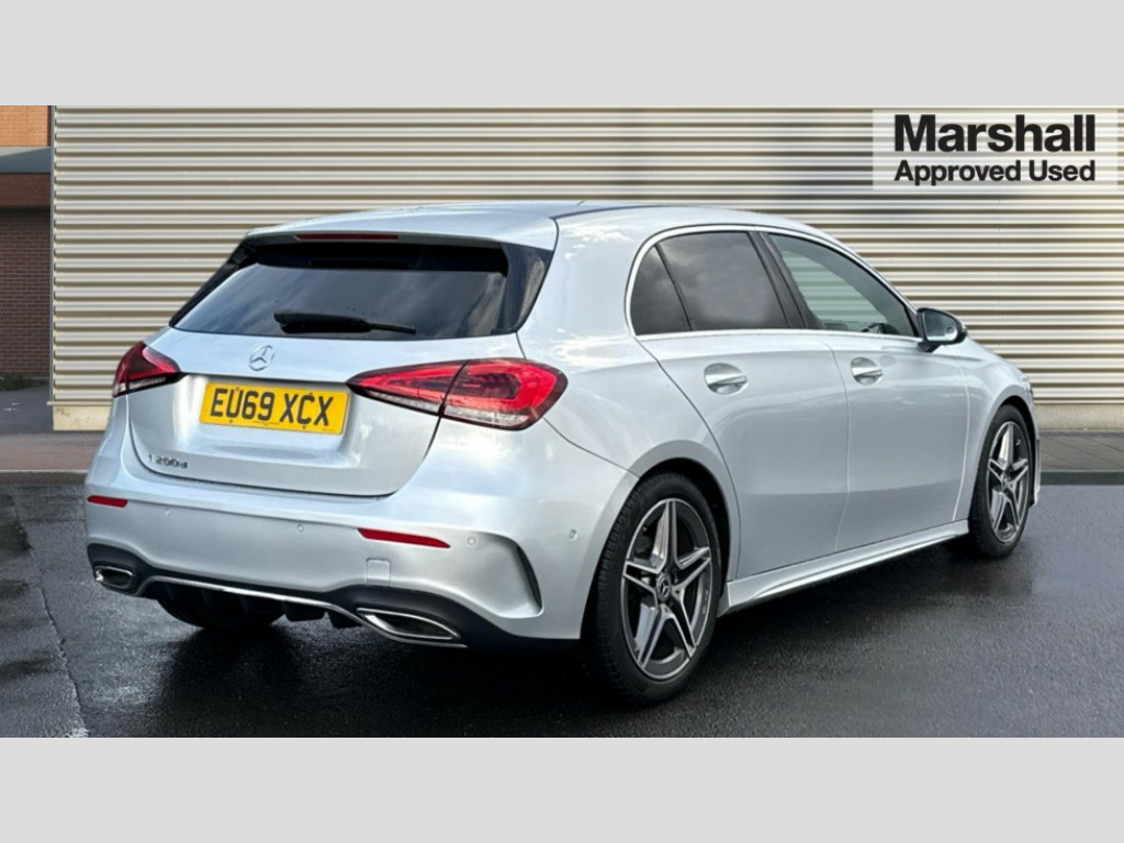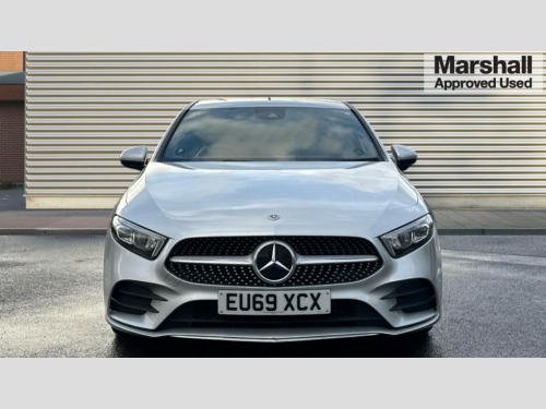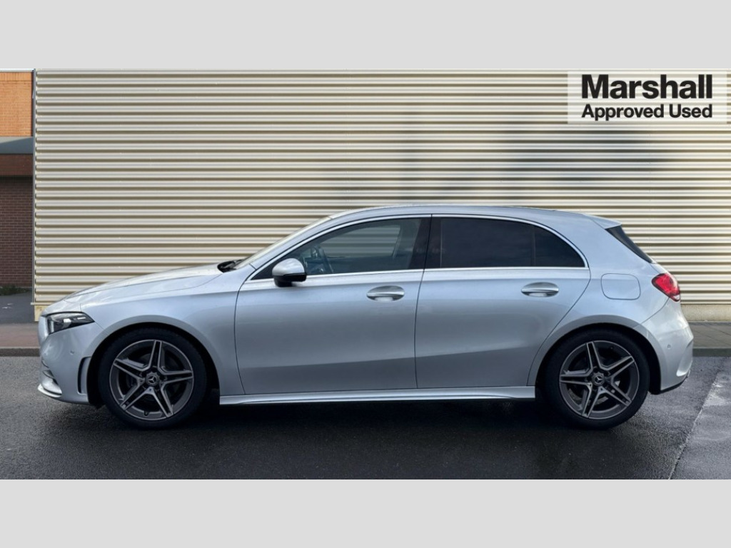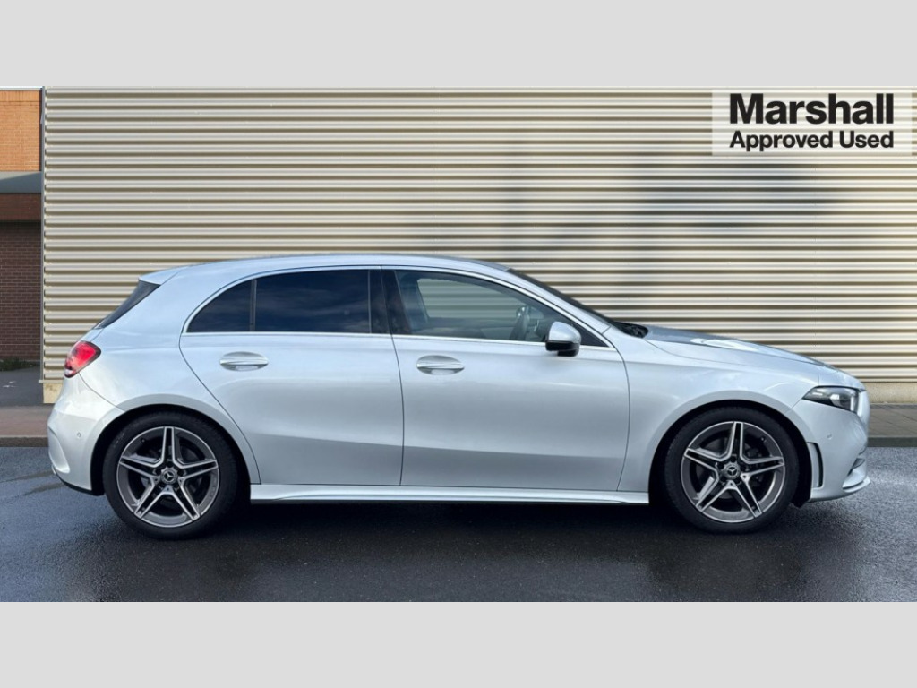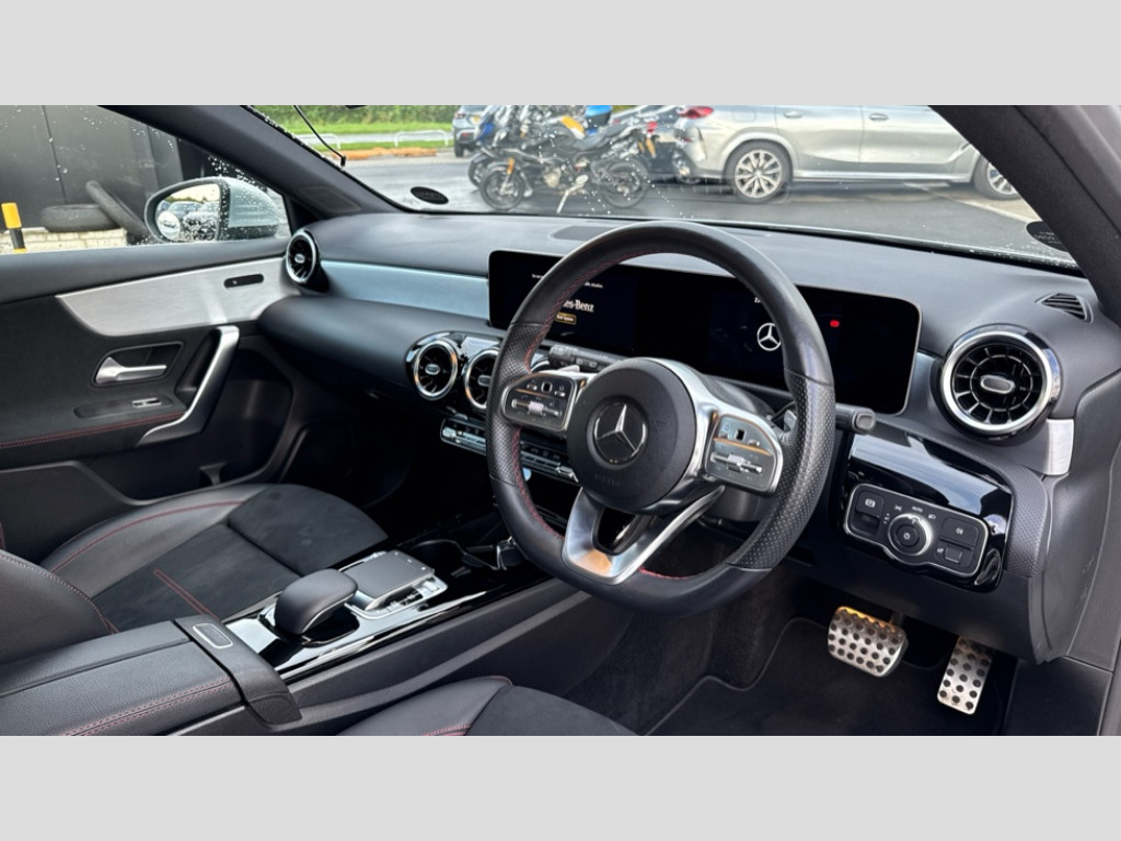 Mercedes-Benz A Class A200d AMG Line Executive 5dr Auto 180 degree rear view camera with parking guidelines, 7" colour screen in instrument panel, Active lane keep assist, Active park assist with parktronic system including front and rear parking sensors, Attention assist, Brake pad wear indicator warning light, Direct steering, DYNAMIC SELECT with a choice of driving modes (ECO, Comfort, Sport and Individual), ECO start/stop function, Fluid level warning indicator for fuel, oil, coolant and washer fluid, Hard-disk navigation, Hey Mercedes Voice activation, Lamp failure indicator, Mercedes me connect including emergency call system, accident recovery, breakdown and maintenance management, Outside temperature gauge, Radio aerial integrated into roof spoiler, Service indicator (ASSYST), Speed sensitive power steering, Trip computer, Lowered comfort suspension, DAB Digital radio, Dual bluetooth interface, 2 USB ports (type C), MBUX multimedia system with DAB digital radio and touchpad including satellite navigation, 4 Electric Front and Rear windows, Adaptive brake lights, AMG front, rear apron and side skirts, Blue tinted glass, Body colour bumpers, Body colour door handles, Body colour side skirt, Body coloured door mirrors, Chrome beltline trim, Diamond radiator grille with chrome pins and silver louvre + chrome insert, Electric adjustable and heated door mirrors with integrated LED side indicators, Exhaust system - Twin trapezoidal tailpipes in polished stainless steel, Headlamp assist automatic headlamp activation, Heated glass rear windscreen + timer control, LED high performance headlamps with integrated LED daytime running lights, LED tail lamp, LED third brake light, Privacy glass, Rain sensor windscreen wipers, Rear fog lights, Rear wiper, 12V socket, 3 Spoke flat bottom leather multi function steering wheel with perforated leather in grip area, 40:20:40 split folding rear seats, Air vents surround and cruciform nozzle in silver chrome, AMG floor mats with red stitching, Artico man-made leather/Microfibre Dinamica upholstery with red contrast stitching, Auto Mercedes-Benz child seat recognition sensor, Black roof lining, Brushed stainless steel sports pedals with rubber studs, Controller on centre console with chrome surround, Cup holder and stowage compartment lighting, Freight packaging without tie-down hooks, Front centre armrest with storage compartment, Front door sills with Mercedes Benz lettering, Front doors with ambient and signal light, Front footwell lights, Front reading lamps in left and right console downlighter, Front seat backs luggage nets, Front seat cushion length adjustment, Front signal exit lamp, Front vanity lights, Gearshift paddles on steering wheel, Handle recess/closing light, Heated front seats, Height/reach adjustable steering column, Illuminated glove compartment stowage, ISOFIX Child seat top tethers and anchor fixings, Luggage compartment cover, Manual height adjustable front seats, Oddments tray lighting, Rear head restraints, Rear Reading Lamps, Seat occupancy sensor for front passenger seat, Spectacles compartment for driver, Sports seats with integrated headrests, Storage compartment under load area floor, Stowage compartment in centre console with retractable cover, Sunvisors with illuminated vanity mirrors, Touchpad, Touchpad illumination, Twin front cupholders, Two zone thermotronic luxury automatic climate control, Light and sight pack - A Class, Mirror package - A Class, Seat comfort pack - A Class, 3 rear 3 point seatbelts, ABS with Brake Assist, Active bonnet, Adaptive brake assist with hold function and hill start assist, Black seatbelts, Childproof locks manually operated for rear doors and electrically operated for rear power windows, Crash responsive emergency lighting, Driver and passenger head and side airbags, Drivers knee airbag, Dual stage driver/passenger airbags, Electronic parking brake, ESP curve dynamic assist, ESP with ASR, Front and rear seatbelt reminder, Front brake callipers with Mercedes Benz lettering, Tyre pressure monitoring system, Warning triangle and first aid kit, Window airbags, Alarm system/interior protection/immobiliser, Keyless Go, Remote central locking and crash sensor with emergency opening function, 18" AMG 5 twin spoke light alloy wheels in titanium grey with highsheen finish, Summer tyres, Tirefit sealant kit
