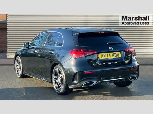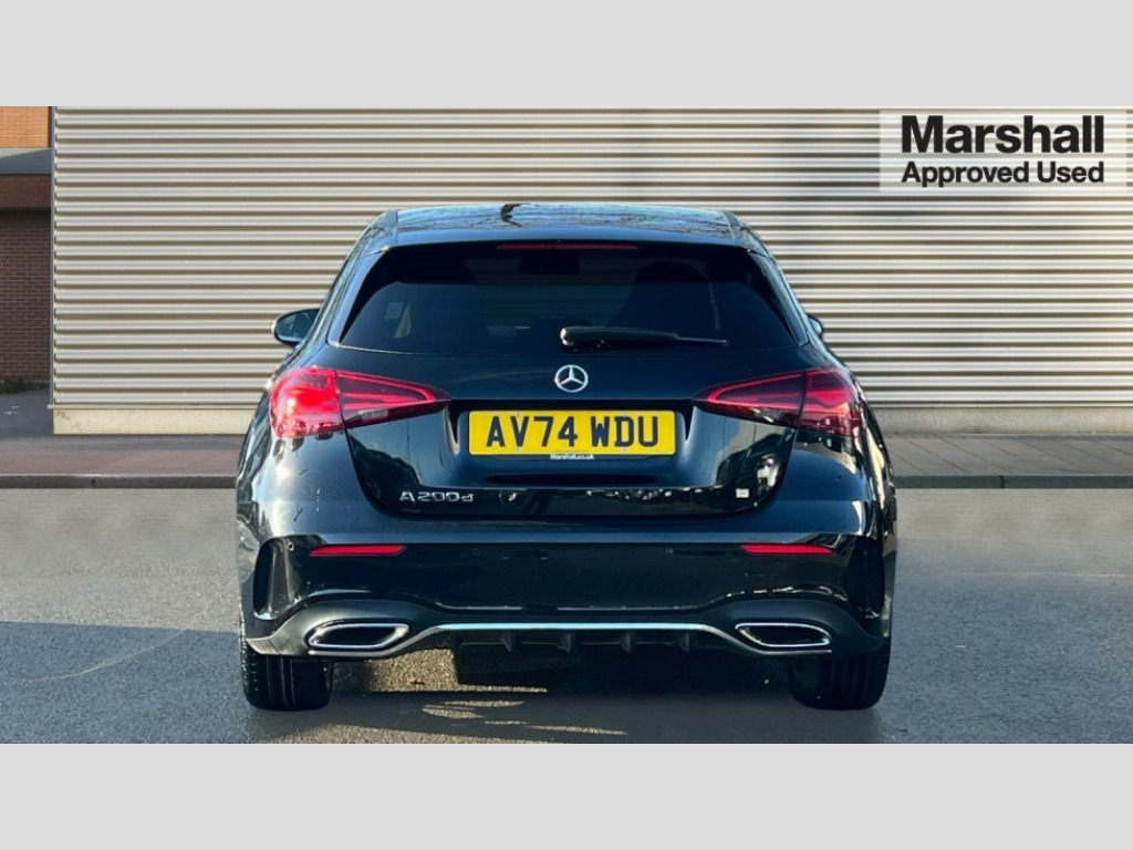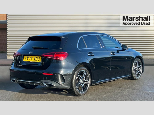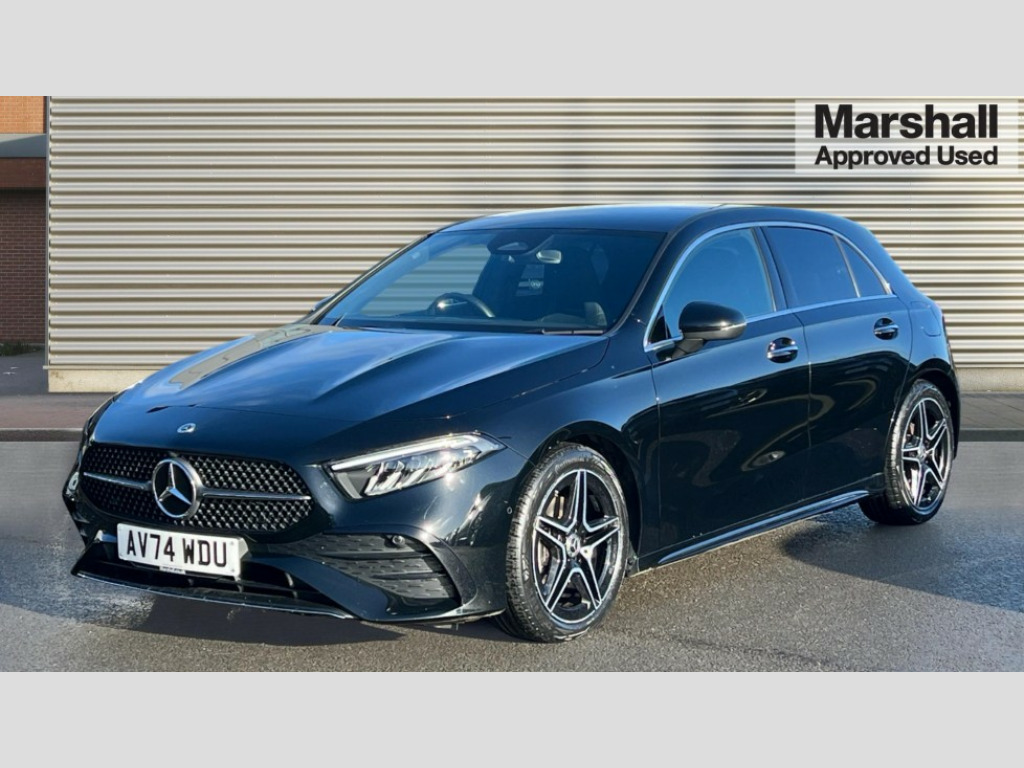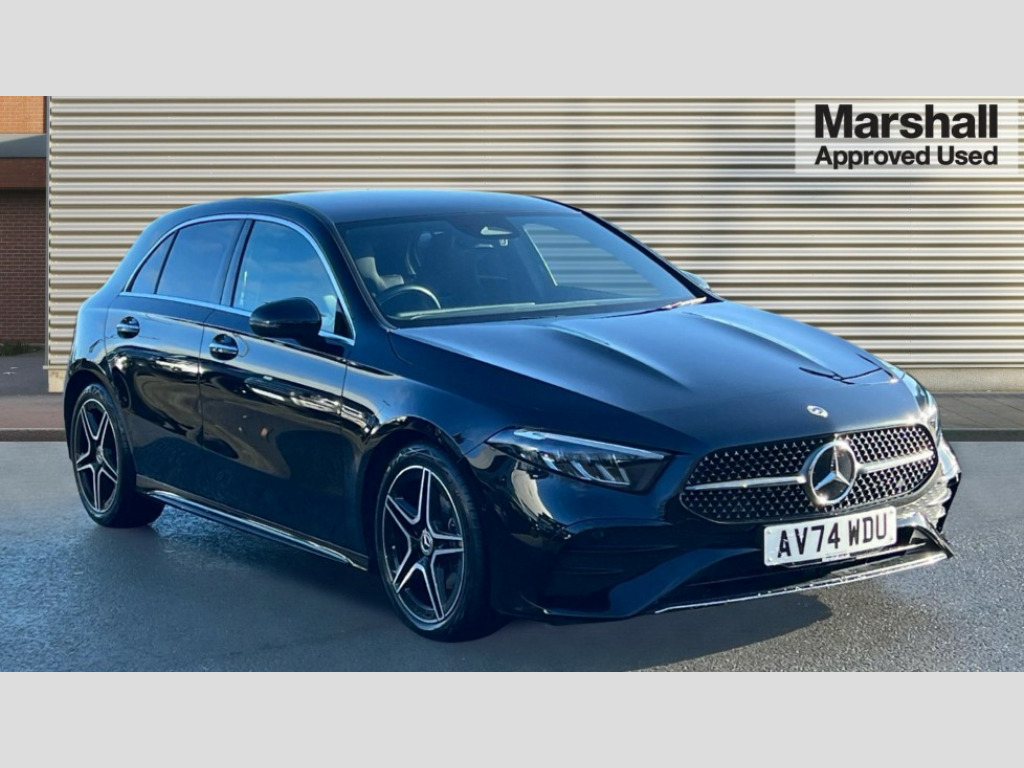 Mercedes-Benz A Class A200d AMG Line Executive 5dr Auto 10.25 inch touchscreen central media display, 10.25" Digital instrument cluster display screen, Attention assist, Blind spot assist, Brake pad wear indicator warning light, Car wash mode, Cruise control + speed limiter, Direct steering, Direction indicators with lane change function, Dual bluetooth interfaces, DYNAMIC SELECT with a choice of driving modes (ECO, Comfort, Sport and Individual), Easy pack tailgate hands-free access, ECO start/stop function, Engine start/stop button, Fingerprint scanner, Fluid level warning indicator for fuel, oil, coolant and washer fluid, Fluorescent jacket for driver, Hard-disk navigation, Hey Mercedes Voice activation, Lamp failure indicator, Lane keeping system, Mercedes me connect including emergency call system, accident recovery, breakdown and maintenance management, Mercedes me remote services, Outside temperature gauge, Owners manual in English, Pre-installation of private car share, Preinstallation for Mercedes Benz link, Remote boot closing, Service indicator (ASSYST), Smartphone integration with Apple CarPlay and Android auto, Speed limit assist, Speed sensitive power steering, Tailgate, Trip computer in multifunction display with current consumption indicator, Wireless charging, Lowered comfort suspension, DAB Digital radio, MBUX multimedia system, Mercedes Benz sound system (100 W) with 6 speakers, 4 Electric Front and Rear windows, Adaptive brake lights, AMG body styling - AMG front apron with front splitter and AMG rear apron and visible exhaust tailpipe trim elements, Body colour bumpers, Body colour door handles with chrome inserts, Body colour side skirt, Body coloured door mirrors, Chrome beltline strips, Diamond radiator grille with pins in fine star pattern, Electric adjustable and heated door mirrors with integrated LED side indicators, Exhaust system with 2 visible tailpipe trim elements and rear apron, Headlamp assist automatic headlamp activation, Heat insulating dark tinted rear and rear side windows, Heated glass rear windscreen + timer control, LED High level third brake light, LED High Performance headlamps including integral LED daytime running lamps and adaptive highbeam assist, LED tail lamp, Privacy glass, Radio aerial, Rain sensing windscreen wipers with two sensitivity settings, Rear fog lights, Rear side wing doors, Rear windscreen wiper, Window line trim strip in chrome, 3 seat bench in 2nd row, 3 Spoke flat bottom leather multi function steering wheel with perforated leather in grip area, 4 way lumbar support, 40:20:40 split folding rear seats, Air conditioning - One zone THERMATIC automatic climate control with automatically controlled air distribution, AMG floor mats, Automatic child seat recognition sensor, Black air vents with surround in silver chrome, Black roof lining, Brushed stainless steel sports pedals with rubber studs, Front centre armrest with stowage, Front door sills with Mercedes Benz lettering, Front seat backs luggage nets, Galvanished gear shift paddles on steering wheel, Heated front seats, Height/reach adjustable steering column, Interior lighting - 64 colour Ambient lighting, Interior mirror with reading lamps in black and frameless, Rear armrest with 2 cupholders, Seat occupancy sensor for front passenger seat, Single front passenger seat, Sports seats with integrated headrests, Stowage compartment in centre console with retractable cover, Sunvisors with illuminated vanity mirrors, Twin front cupholders, Light and sight package - A Class, Mirror package - A Class, Parking pack with 180 degree view - A Class, Seat comfort pack - A Class, USB pack plus - A Class, 3 rear 3 point seatbelts, ABS with Brake Assist, Active bonnet, Active brake assist includes forward collision warning system with autonomous braking, Adaptive brake assist with hold function and hill start assist, Black seatbelts, Bonnet with power domes, Childproof locks manually operated for rear doors and electrically operated for rear power windows, Crash responsive emergency lighting, Driver and passenger head and side airbags, Drivers knee airbag, Dual stage driver/passenger airbags, Electronic parking brake, ESP curve dynamic assist, ESP with ASR, Front and rear seatbelt reminder, ISOFIX and top tether child seat fixing points in two outer rear seats, Tyre pressure monitoring system, Warning triangle and first aid kit, Window airbags, Alarm system/interior protection/immobiliser, Guard 360 degree vehicle protection, Keyless entry lock/unlock, Keyless Go, Remote central locking and crash sensor with emergency opening function, Light longitudinal grain aluminium trim, 18" AMG 5 twin spoke light alloy wheels,aerodynamically optimised, painted in black with high sheen finish, Summer tyres, Tirefit sealant kit