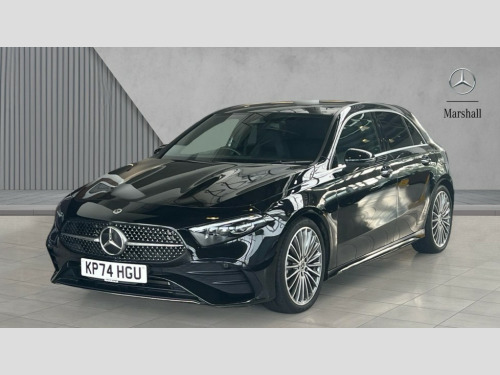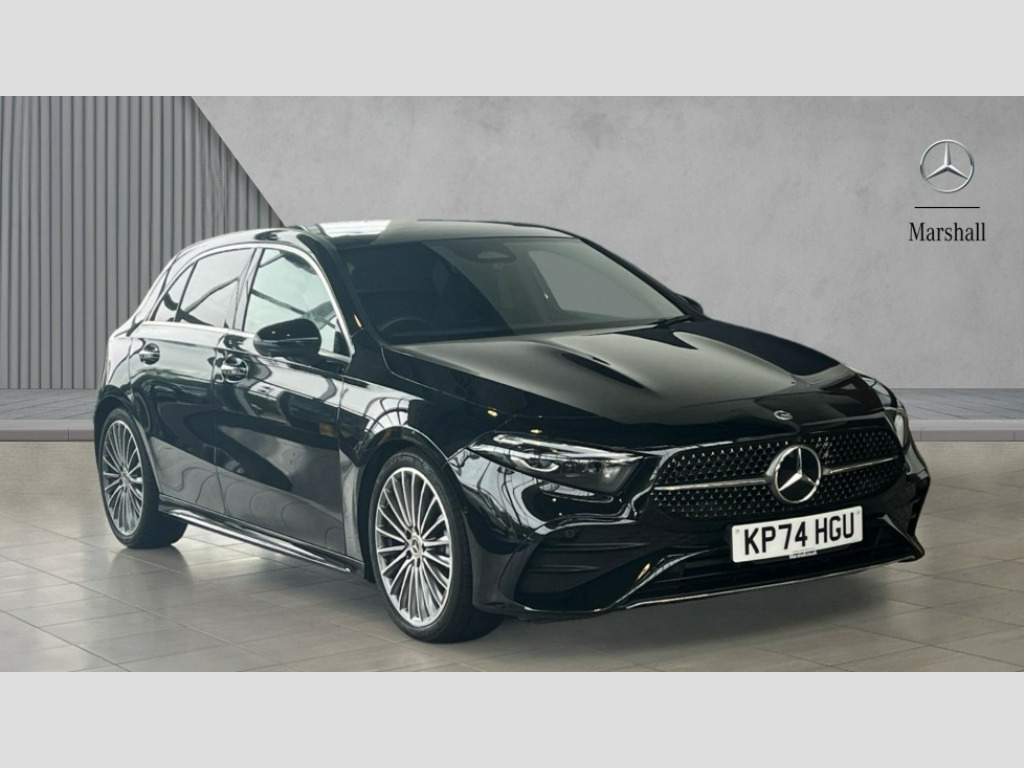 Mercedes-Benz A Class A200d AMG Line Premium Plus 5dr Auto 10.25 inch touchscreen central media display, 10.25" Digital instrument cluster display screen, Attention assist, Brake pad wear indicator warning light, Car wash mode, Direct steering, Direction indicators with lane change function, Dual bluetooth interfaces, DYNAMIC SELECT with a choice of driving modes (ECO, Comfort, Sport and Individual), Easy pack tailgate hands-free access, ECO start/stop function, Engine start/stop button, Fingerprint scanner, Fluid level warning indicator for fuel, oil, coolant and washer fluid, Fluorescent jacket for driver, Hard-disk navigation, Head up Display, Hey Mercedes Voice activation, Lamp failure indicator, Mercedes me connect including emergency call system, accident recovery, breakdown and maintenance management, Mercedes me remote services, Outside temperature gauge, Owners manual in English, Pre-installation of private car share, Preinstallation for Mercedes Benz link, Remote boot closing, Service indicator (ASSYST), Smartphone integration with Apple CarPlay and Android auto, Speed sensitive power steering, Tailgate, Traffic sign assist, Trip computer in multifunction display with current consumption indicator, Wireless charging, Lowered comfort suspension, DAB Digital radio, MBUX multimedia system, Mercedes Benz advanced sound system (225 W) with 10 speakers, 1 central speaker, speakers on doors, a tweeter on door,one sub woofer + boost amplifier, 4 Electric Front and Rear windows, Adaptive brake lights, AMG body styling - AMG front apron with front splitter and AMG rear apron and visible exhaust tailpipe trim elements, Body colour bumpers, Body colour door handles with chrome inserts, Body colour side skirt, Chrome beltline strips, Diamond radiator grille with pins in fine star pattern, Electric adjustable and heated door mirrors with integrated LED side indicators, Exhaust system with 2 visible tailpipe trim elements and rear apron, Headlamp assist automatic headlamp activation, Heat insulating dark tinted rear and rear side windows, Heated glass rear windscreen + timer control, LED daytime running lights, LED High level third brake light, LED tail lamp, Multibeam LED headlamps with adaptive highbeam assist and cornering function, Panoramic sliding sunroof, Privacy glass, Radio aerial, Rain sensing windscreen wipers with two sensitivity settings, Rear fog lights, Rear side wing doors, Rear windscreen wiper, 3 seat bench in 2nd row, 3 Spoke flat bottom leather multi function steering wheel with perforated leather in grip area, 40:20:40 split folding rear seats, Air conditioning - Two zone thermotronic luxury automatic climate control with display, AMG floor mats, Automatic child seat recognition sensor, Black air vents with surround in silver chrome, Black roof lining, Brushed stainless steel sports pedals with rubber studs, Electrically adjustable front memory seats including lumbar support and backrest inclination, Front centre armrest with stowage, Front seat backs luggage nets, Galvanished gear shift paddles on steering wheel, Height/reach adjustable steering column, Illuminated Mercedes Benz lettering front door sills with changeable cover, Interior lighting - 64 colour Ambient lighting, Interior mirror with reading lamps in black and frameless, Rear armrest with 2 cupholders, Seat occupancy sensor for front passenger seat, Single front passenger seat, Sports seats with integrated headrests, Stowage compartment in centre console with retractable cover, Sunvisors with illuminated vanity mirrors, Twin front cupholders, Light and sight package - A Class, Mirror package - A Class, Night pack - A Class Sport, Parking pack with 360 degree camera - A Class, Seat comfort pack - A Class, USB pack plus - A Class, Winter pack - A Class, 3 rear 3 point seatbelts, ABS with Brake Assist, Active bonnet, Adaptive brake assist with hold function and hill start assist, Black seatbelts, Bonnet with power domes, Childproof locks manually operated for rear doors and electrically operated for rear power windows, Crash responsive emergency lighting, Driver and passenger head and side airbags, Drivers knee airbag, Dual stage driver/passenger airbags, Electronic parking brake, ESP curve dynamic assist, ESP with ASR, Exit warning, Front and rear seatbelt reminder, ISOFIX and top tether child seat fixing points in two outer rear seats, Tyre pressure monitoring system, Warning triangle and first aid kit, Window airbags, Alarm system/interior protection/immobiliser, Guard 360 degree vehicle protection, Keyless entry lock/unlock, Keyless Go, Remote central locking and crash sensor with emergency opening function, Light longitudinal grain aluminium trim, 19" AMG multi-spoke light alloy wheels,aerodynamically optimised, painted in black with high sheen rim flange, Summer tyres, Tirefit sealant kit