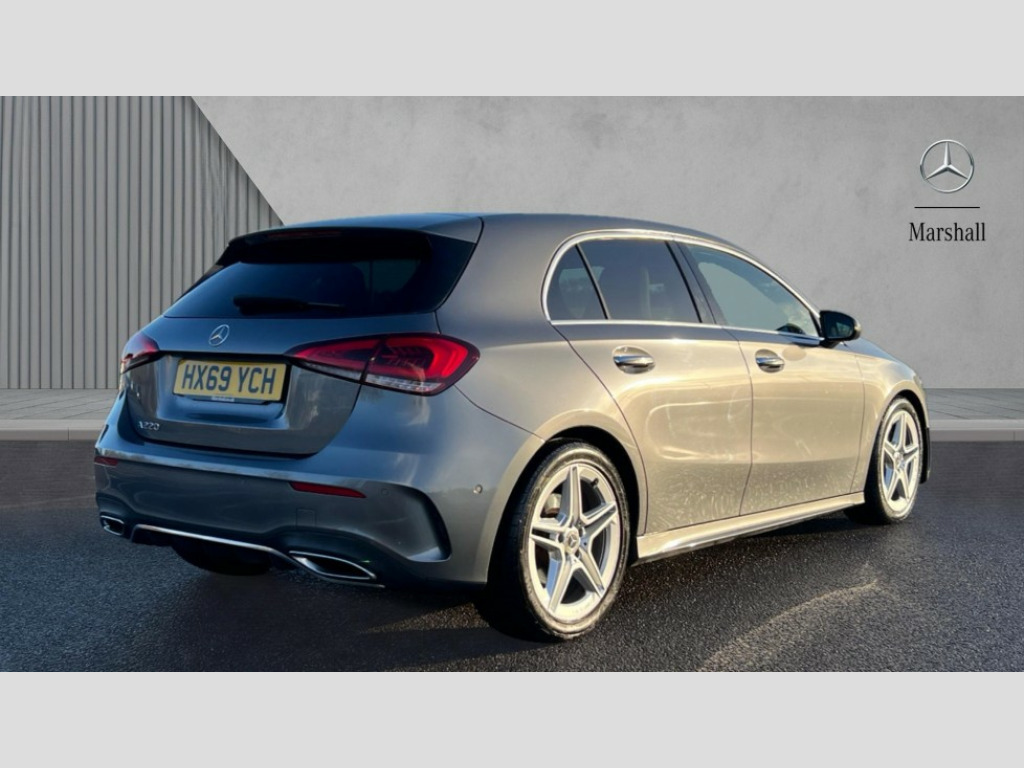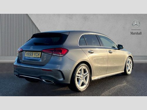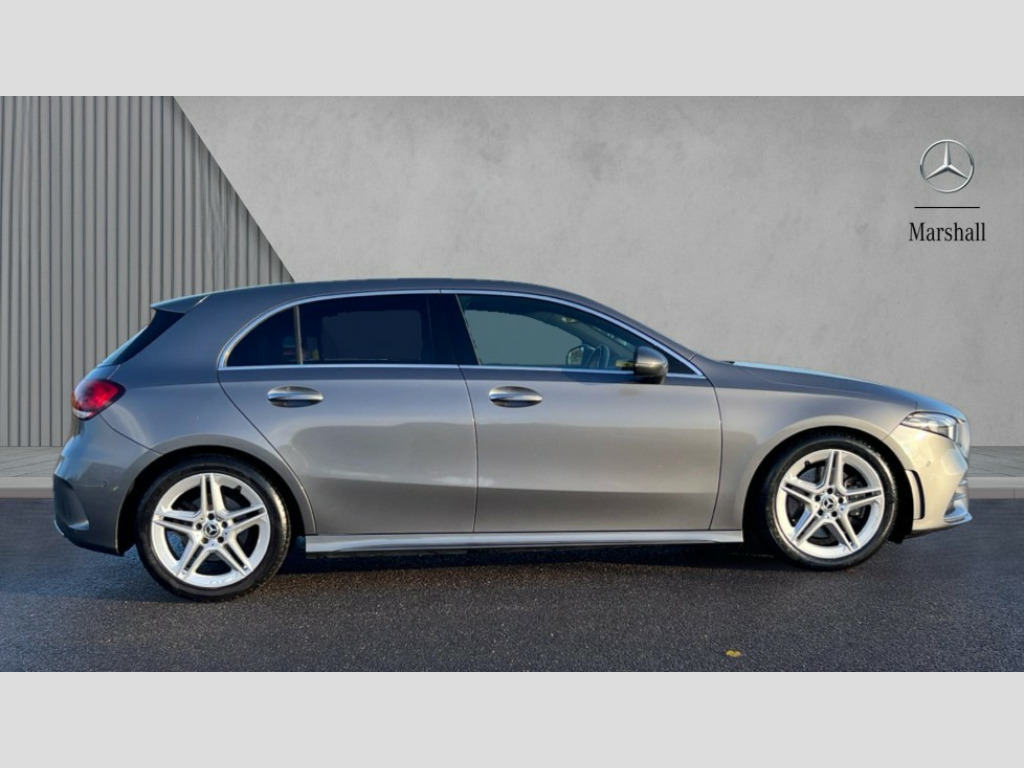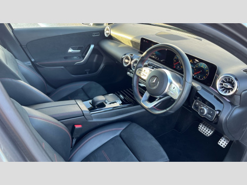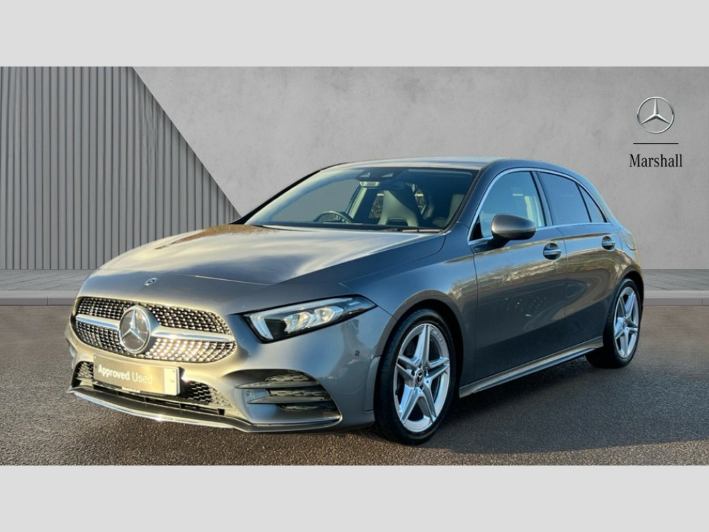Mercedes-Benz A Class A220 AMG Line Premium 5dr Auto 10.25" Digital instrument cluster display screen, 180 degree rear view camera with parking guidelines, Active lane keep assist, Active park assist with parktronic system including front and rear parking sensors, Attention assist, Brake pad wear indicator warning light, Direct steering, DYNAMIC SELECT with a choice of driving modes (ECO, Comfort, Sport and Individual), ECO start/stop function, Fluid level warning indicator for fuel, oil, coolant and washer fluid, Hard-disk navigation, Hey Mercedes Voice activation, Lamp failure indicator, Mercedes me connect including emergency call system, accident recovery, breakdown and maintenance management, Outside temperature gauge, Radio aerial integrated into roof spoiler, Service indicator (ASSYST), Speed sensitive power steering, Trip computer, Lowered comfort suspension, DAB Digital radio, Dual bluetooth interface, 2 USB ports (type C), MBUX multimedia system with DAB digital radio and touchpad including satellite navigation, Mid-range sound system, 4 Electric Front and Rear windows, Active aerodynamics with AIRPANEL in the front apron, Adaptive brake lights, AMG front, rear apron and side skirts, Blue tinted glass, Body colour bumpers, Body colour door handles, Body colour side skirt, Body coloured door mirrors, Chrome beltline trim, Diamond radiator grille with chrome pins and silver louvre + chrome insert, Electric adjustable and heated door mirrors with integrated LED side indicators, Exhaust system - Twin trapezoidal tailpipes in polished stainless steel, Headlamp assist automatic headlamp activation, Heated glass rear windscreen + timer control, LED high performance headlamps with integrated LED daytime running lights, LED tail lamp, LED third brake light, Privacy glass, Rain sensor windscreen wipers, Rear fog lights, Rear wiper, 12V socket, 3 Spoke flat bottom leather multi function steering wheel with perforated leather in grip area, 40:20:40 split folding rear seats, Air vents surround and cruciform nozzle in silver chrome, AMG floor mats with red stitching, Artico man-made leather/Microfibre Dinamica upholstery with red contrast stitching, Auto Mercedes-Benz child seat recognition sensor, Black roof lining, Brushed stainless steel sports pedals with rubber studs, Controller on centre console with chrome surround, Cup holder and stowage compartment lighting, Freight packaging without tie-down hooks, Front centre armrest with storage compartment, Front door sills with Mercedes Benz lettering, Front footwell lights, Front reading lamps in left and right console downlighter, Front seat backs luggage nets, Front seat cushion length adjustment, Front signal exit lamp, Front vanity lights, Gearshift paddles on steering wheel, Handle recess/closing light, Heated front seats, Height/reach adjustable steering column, Illuminated door sills, Illuminated glove compartment stowage, Interior lighting - 64 colour Ambient lighting, ISOFIX Child seat top tethers and anchor fixings, Luggage compartment cover, Manual height adjustable front seats, Oddments tray lighting, Rear armrest, Rear head restraints, Rear Reading Lamps, Seat occupancy sensor for front passenger seat, Spectacles compartment for driver, Sports seats with integrated headrests, Storage compartment under load area floor, Stowage compartment in centre console with retractable cover, Sunvisors with illuminated vanity mirrors, Touchpad, Touchpad illumination, Twin front cupholders, Two zone thermotronic luxury automatic climate control, Light and sight pack - A Class, Mirror package - A Class, Seat comfort pack - A Class, 3 rear 3 point seatbelts, ABS with Brake Assist, Active bonnet, Adaptive brake assist with hold function and hill start assist, Black seatbelts, Childproof locks manually operated for rear doors and electrically operated for rear power windows, Crash responsive emergency lighting, Driver and passenger head and side airbags, Drivers knee airbag, Dual stage driver/passenger airbags, Electronic parking brake, ESP curve dynamic assist, ESP with ASR, Front and rear seatbelt reminder, Front brake callipers with Mercedes Benz lettering, Perforated front brake discs, Tyre pressure monitoring system, Warning triangle and first aid kit, Window airbags, Alarm system/interior protection/immobiliser, Keyless entry lock/unlock, Remote central locking and crash sensor with emergency opening function, 18" AMG 5 twin spoke light alloy wheels in titanium grey with highsheen finish, Summer tyres, Tirefit sealant kit