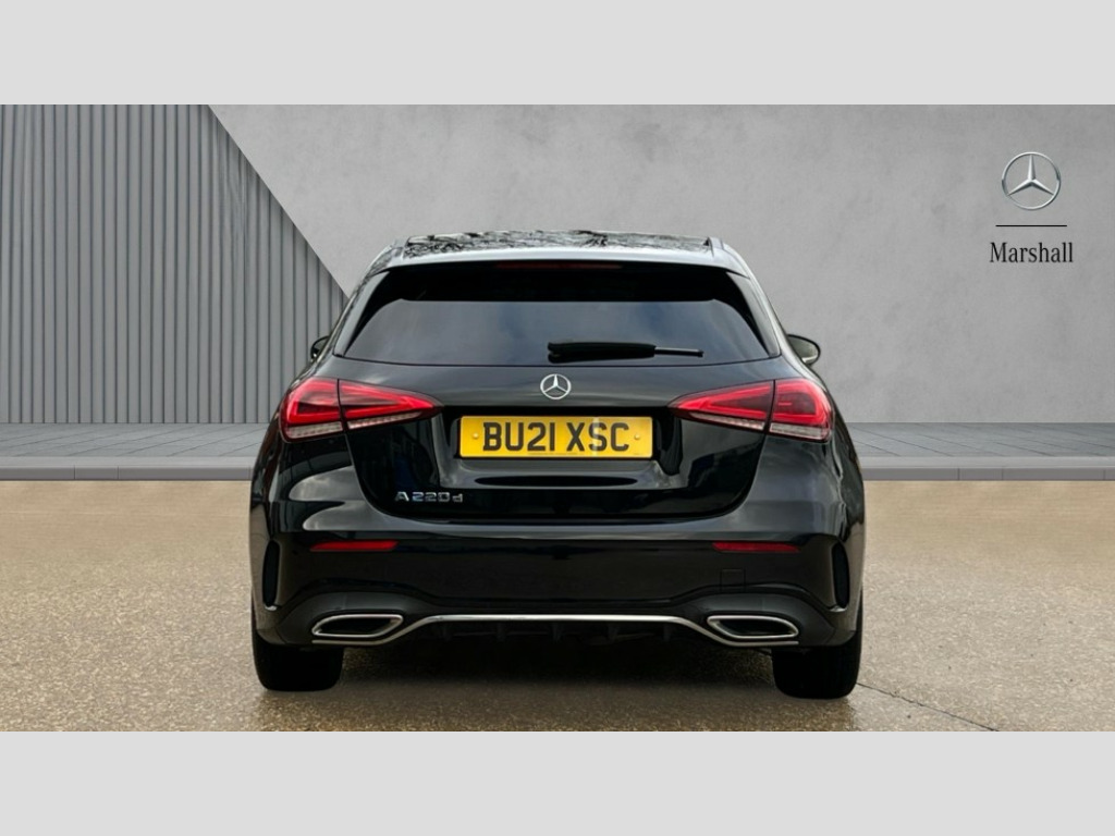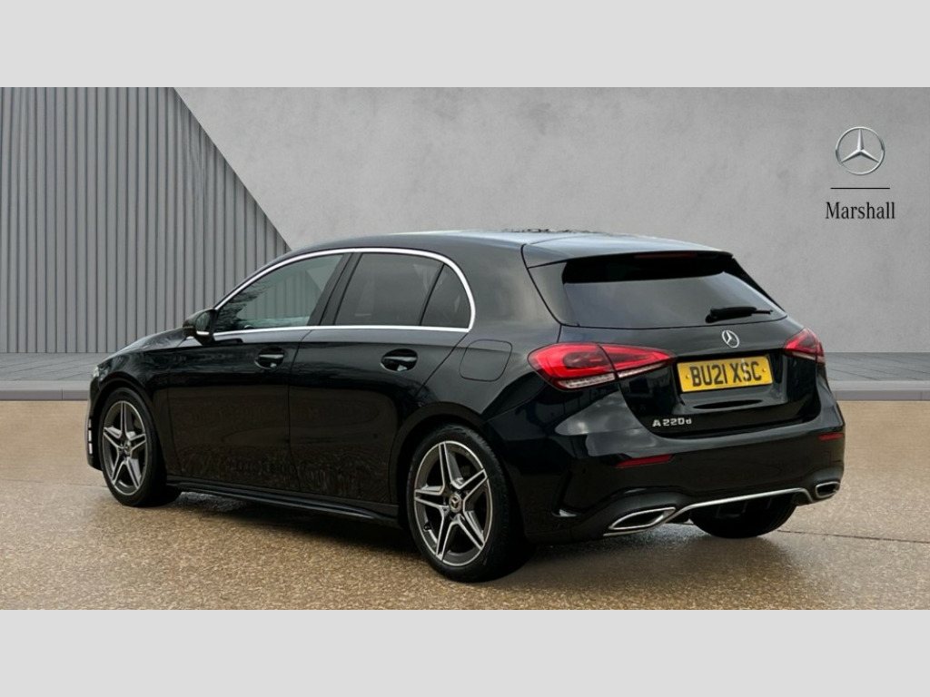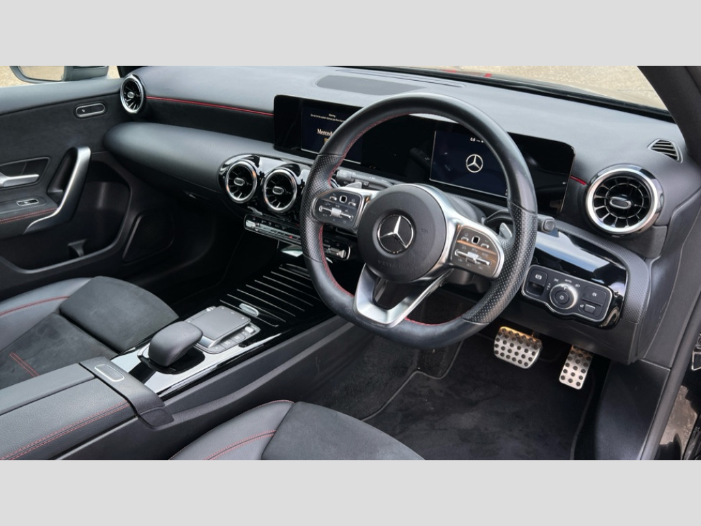 Mercedes-Benz A Class A220d AMG Line 5dr Auto 180 degree rear view camera with parking guidelines, 7" colour screen in instrument panel, 7" touchscreen media display, Attention assist, Brake pad wear indicator warning light, Car wash mode, Cruise control + speed limiter, Direct steering, Dual bluetooth interfaces, DYNAMIC SELECT with a choice of driving modes (ECO, Comfort, Sport and Individual), ECO start/stop function, Fluid level warning indicator for fuel, oil, coolant and washer fluid, Hard-disk navigation, Hey Mercedes Voice activation, Lamp failure indicator, Mercedes me connect including emergency call system, accident recovery, breakdown and maintenance management, Mercedes me remote services, Outside temperature gauge, Owners manual in English, Pre-installation for private car sharing, Preinstallation for Mercedes Benz link, Service indicator (ASSYST), Speed sensitive power steering, Trip computer, Lowered comfort suspension, Rear axle multi-link, 2 USB ports (type C) in rear stowage compartment and one in front of center console, 6 speakers, DAB Digital radio, MBUX multimedia system with DAB digital radio and touchpad including satellite navigation, Mercedes-Benz sound system - 100W, 4 Electric Front and Rear windows, Adaptive brake lights, AMG bodystyling - Front apron with splitter in chrome, rear apron with chrome trim and chrome visible trim elements in tailpipe, Black weather strip, Body colour bumpers, Body colour door handles, Body colour side skirt, Body coloured door mirrors, Chrome beltline trim, Diamond radiator grille with chrome pins and silver louvre + chrome insert, Electric adjustable and heated door mirrors with integrated LED side indicators, Exhaust system - Twin visible tailpipes in polished stainless steel, Headlamp assist automatic headlamp activation, Heated glass rear windscreen + timer control, LED high performance headlamps with integrated LED daytime running lights, LED tail lamp, LED third brake light, Privacy glass, Radio aerial, Rain sensing windscreen wipers with two sensitivity settings, Rear fog lights, Rear wiper, Window line trim strip in chrome, 3 Spoke flat bottom leather multi function steering wheel with perforated leather in grip area, 40:20:40 split folding rear seats, Artico man-made leather/Microfibre Dinamica upholstery with red contrast stitching, Auto Mercedes-Benz child seat recognition sensor, Black air vents with surround in silver chrome, Black roof lining, Brushed stainless steel sports pedals with rubber studs, Controller on centre console with chrome surround, Floor mats with stitched edging and AMG lettering, Front centre armrest with storage compartment, Front door sills with Mercedes Benz lettering, Front seat backs luggage nets, Front seat cushion length adjustment, Galvanished gear shift paddles on steering wheel, Heated front seats, Height/reach adjustable steering column, Interior mirror with reading lamps in black and frameless, Manual height adjustable front seats, Rear head restraints, Seat occupancy sensor for front passenger seat, Sports seats with integrated headrests, Stowage compartment in centre console with retractable cover, Sunvisors with illuminated vanity mirrors, Touchpad on center console, Twin front cupholders, Two zone thermotronic luxury automatic climate control, Light and sight pack - A Class, Seat comfort pack - A Class, 3 rear 3 point seatbelts, ABS with Brake Assist, Active bonnet, Active brake assist includes forward collision warning system with autonomous braking, Adaptive brake assist with hold function and hill start assist, Black seatbelts, Childproof locks manually operated for rear doors and electrically operated for rear power windows, Crash responsive emergency lighting, Driver and passenger head and side airbags, Drivers knee airbag, Dual stage driver/passenger airbags, Electronic parking brake, ESP curve dynamic assist, ESP with ASR, Front and rear seatbelt reminder, Front brake callipers with Mercedes Benz lettering, ISOFIX and top tether child seat fixing points in two outer rear seats, Tyre pressure monitoring system, Warning triangle and first aid kit, Window airbags, Alarm system/interior protection/immobiliser, Keyless Go, Remote central locking and crash sensor with emergency opening function, Urban guard vehicle protection system with immobiliser and interior protection, Dinamica microfibre trim in black, 18" AMG 5 twin spoke light alloy wheels in titanium grey with highsheen finish, Summer tyres, Tirefit sealant kit