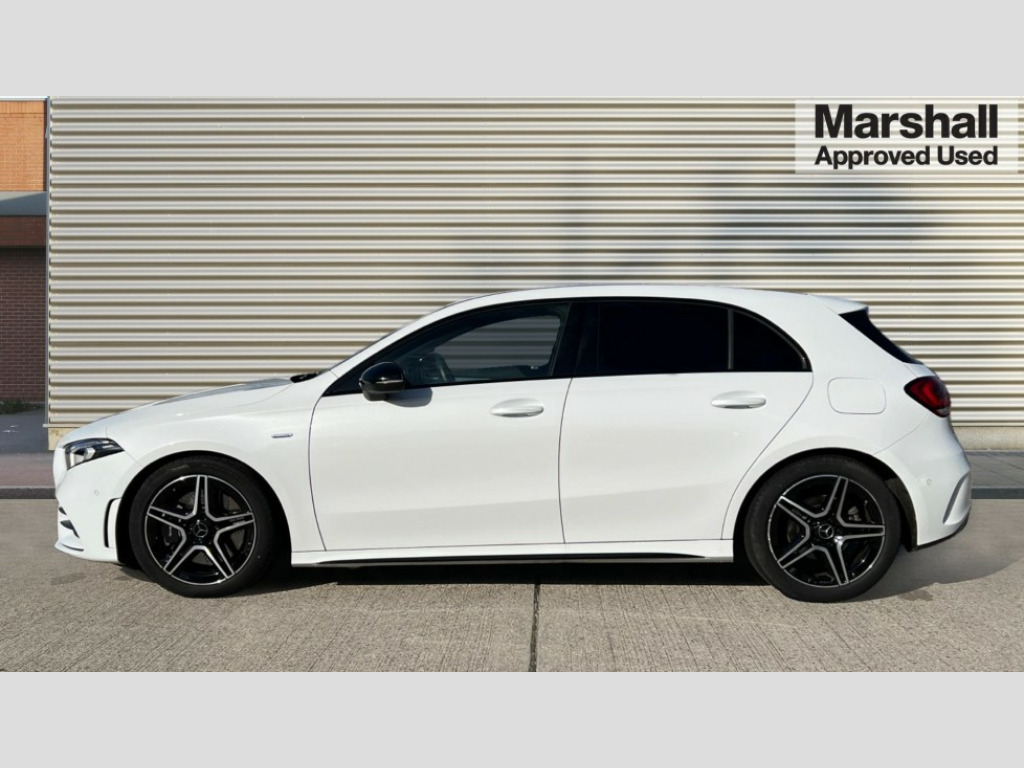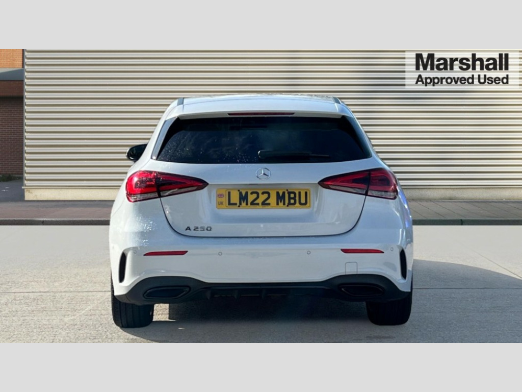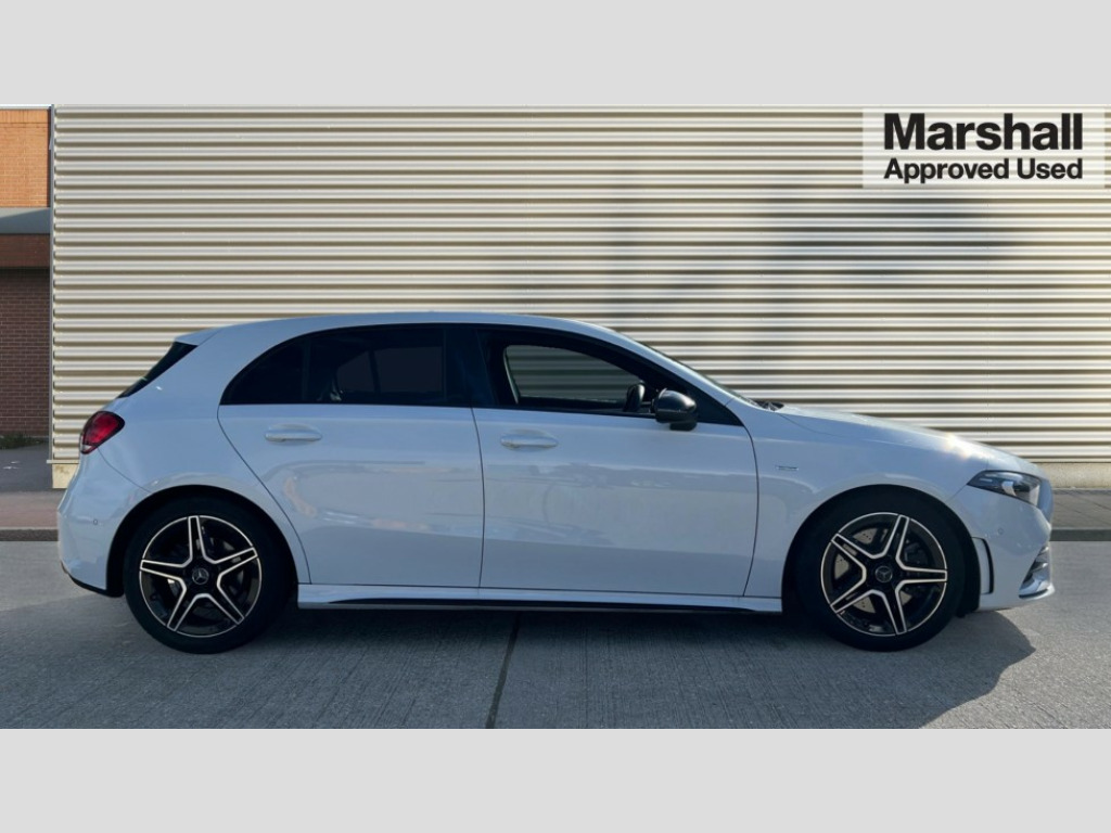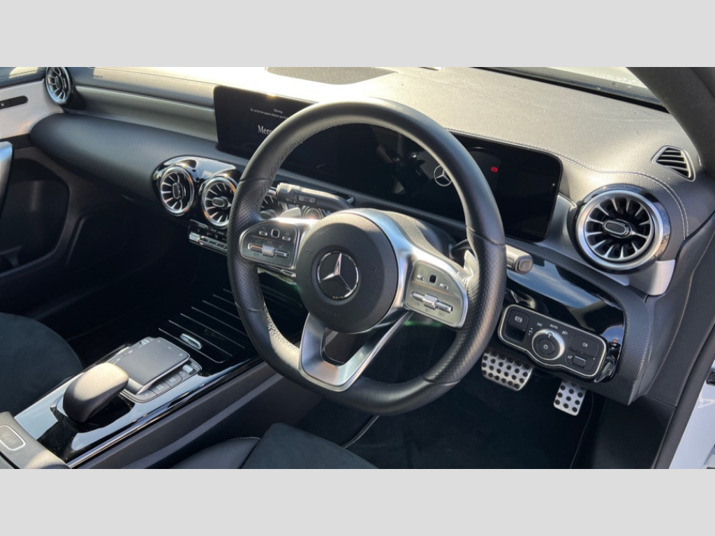 Mercedes-Benz A Class A250 AMG Line Executive Edition 5dr Auto 10.25" media display, 180 degree rear view camera with parking guidelines, 7" colour screen in instrument panel, Active parking assist with visual and audible warning of detected obstacles, Attention assist, Brake pad wear indicator warning light, Car wash mode, Cruise control + speed limiter, Direct steering, Dual bluetooth interfaces, DYNAMIC SELECT with a choice of driving modes (ECO, Comfort, Sport and Individual), ECO start/stop function, Fluid level warning indicator for fuel, oil, coolant and washer fluid, Hard-disk navigation, Hey Mercedes Voice activation, Lamp failure indicator, Lane keeping system, Mercedes me connect including emergency call system, accident recovery, breakdown and maintenance management, Mercedes me remote services, Outside temperature gauge, Owners manual in English, Pre-installation for private car sharing, Preinstallation for Mercedes Benz link, Service indicator (ASSYST), Smartphone integration with Apple CarPlay and Android auto, Speed sensitive power steering, Trip computer, Ultrasonic sensors positioned in the front and rear bumpers, Lowered comfort suspension, Rear axle multi-link, 2 USB ports (type C) in rear stowage compartment and one in front of center console, 6 speakers, DAB Digital radio, MBUX multimedia system with DAB digital radio and touchpad including satellite navigation, Mercedes-Benz sound system - 100W, 4 Electric Front and Rear windows, Adaptive brake lights, AMG bodystyling - Front apron with splitter in chrome, rear apron with chrome trim and chrome visible trim elements in tailpipe, Automatic headlights, Black weather strip, Body colour bumpers, Body colour door handles, Body colour side skirt, Body coloured door mirrors, Electric adjustable and heated door mirrors with integrated LED side indicators, Exclusive diamond radiator grille, Exhaust system - Twin visible tailpipes in polished stainless steel, Headlamp assist automatic headlamp activation, Heated glass rear windscreen + timer control, High gloss black beltline, LED High level third brake light, LED high performance headlamps with integrated LED daytime running lights, LED tail lamp, Privacy glass, Radio aerial, Rain sensing windscreen wipers with two sensitivity settings, Rear fog lights, Rear side wing doors, Rear wiper, Window line trim strip in high gloss black, 3 seat bench in 2nd row, 3 Spoke flat bottom leather multi function steering wheel with perforated leather in grip area, 40:20:40 split folding rear seats, Artico man-made leather/Microfibre Dinamica upholstery with contrast stitching in light grey, Auto Mercedes-Benz child seat recognition sensor, Black air vents with surround in silver chrome, Black roof lining, Brushed stainless steel sports pedals with rubber studs, Controller on centre console with chrome surround, Floor mats with black top stitching and embroidered edition logo and piping in light grey, Front centre armrest with storage compartment, Front door sills with Mercedes Benz lettering, Front seat backs luggage nets, Front seat cushion length adjustment, Galvanished gear shift paddles on steering wheel, Heated front seats, Height/reach adjustable steering column, Interior lighting - 64 colour Ambient lighting, Interior mirror with reading lamps in black and frameless, Manual height adjustable front seats, Rear head restraints, Seat occupancy sensor for front passenger seat, Single front passenger seat, Sports seats with integrated headrests, Stowage compartment in centre console with retractable cover, Sunvisors with illuminated vanity mirrors, Touchpad on center console, Twin front cupholders, Two zone thermotronic luxury automatic climate control, Light and sight pack - A Class, Mirror package - A Class, Night pack - A Class Saloon/Hatchback, Seat comfort pack - A Class, 3 rear 3 point seatbelts, ABS with Brake Assist, Active bonnet, Active brake assist includes forward collision warning system with autonomous braking, Adaptive brake assist with hold function and hill start assist, Black seatbelts, Childproof locks manually operated for rear doors and electrically operated for rear power windows, Crash responsive emergency lighting, Driver and passenger head and side airbags, Drivers knee airbag, Dual stage driver/passenger airbags, Electronic parking brake, ESP curve dynamic assist, ESP with ASR, Front and rear seatbelt reminder, Front brake callipers with Mercedes Benz lettering, ISOFIX and top tether child seat fixing points in two outer rear seats, Perforated front brake discs, Tyre pressure monitoring system, Warning triangle and first aid kit, Window airbags, Alarm system/interior protection/immobiliser, Keyless Go, Remote central locking and crash sensor with emergency opening function, Urban guard vehicle protection system with immobiliser and interior protection, Matrix look light longitudinal grain aluminium trim element, 18" AMG 5 twin spoke light alloy wheels aerodynamically optimised painted in black with highsheen finish, Summer tyres, Tirefit sealant kit