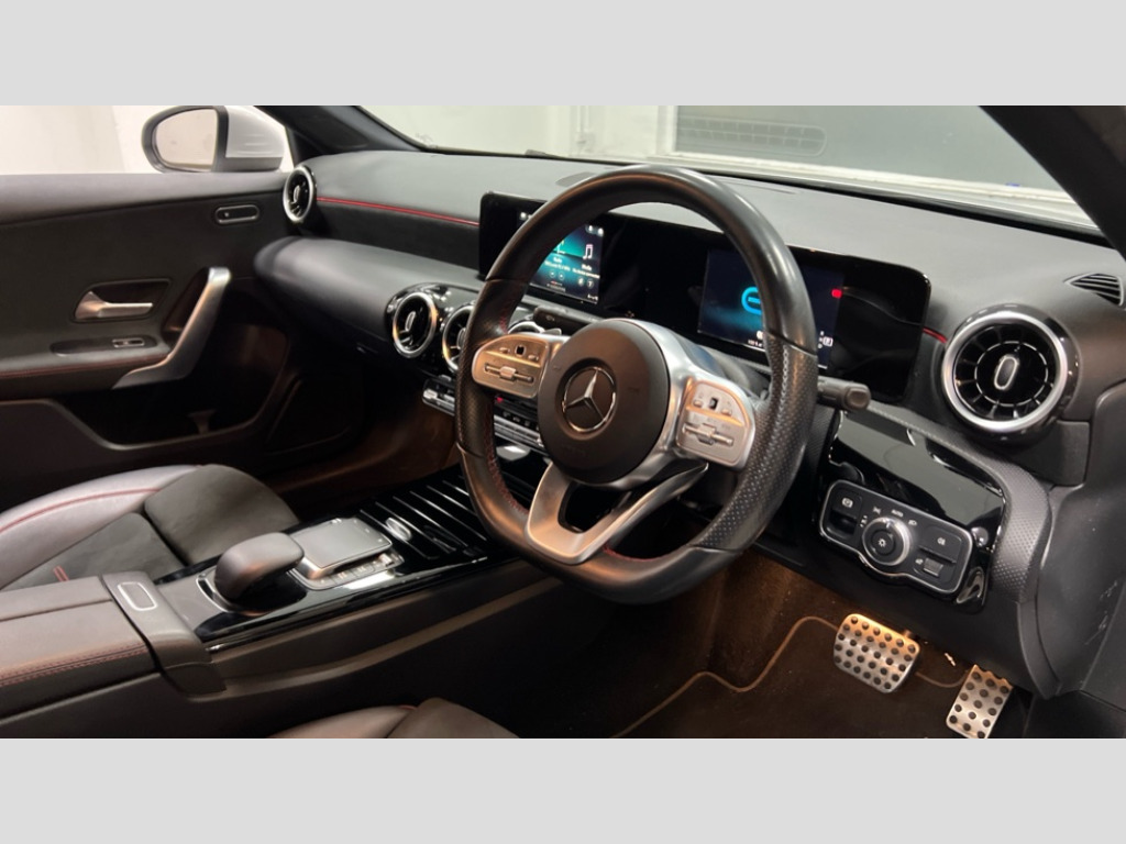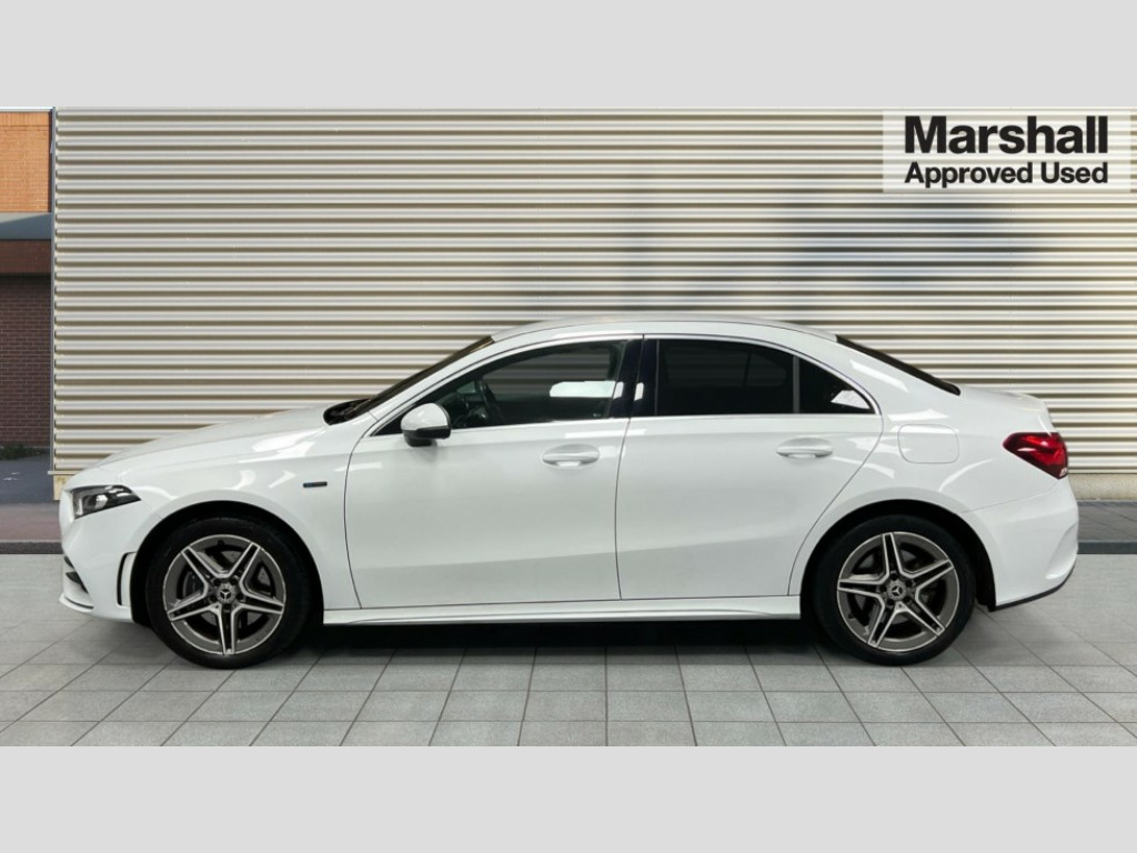 Mercedes-Benz A Class A250e AMG Line 4dr Auto 180 degree rear view camera with parking guidelines, 7" colour screen in instrument panel, 7" touchscreen media display, Acoustic ambient protection, Attention assist, Brake pad wear indicator warning light, Car wash mode, Cruise control + speed limiter, Direct steering, Dual bluetooth interfaces, DYNAMIC SELECT with a choice of driving modes (ECO, Comfort, Sport and Individual), ECO start/stop function, Fluid level warning indicator for fuel, oil, coolant and washer fluid, Hard-disk navigation, Hey Mercedes Voice activation, Lamp failure indicator, Mercedes me connect including emergency call system, accident recovery, breakdown and maintenance management, Mercedes me remote services, Outside temperature gauge, Owners manual in English, Pre-installation for private car sharing, Preinstallation for Mercedes Benz link, Remote and charging services plus, Service indicator (ASSYST), Speed sensitive power steering, Trip computer, 7.4 kW monophase on board charger, Comfort suspension, Mode 3 charging cable 11 kW, Rear axle multi-link, 2 USB ports (type C) in rear stowage compartment and one in front of center console, 6 speakers, DAB Digital radio, MBUX multimedia system with DAB digital radio and touchpad including satellite navigation, Mercedes-Benz sound system - 100W, 4 Electric Front and Rear windows, Adaptive brake lights, AMG bodystyling - Front apron with splitter in chrome, rear apron with chrome trim and chrome visible trim elements in tailpipe, Black weather strip, Body colour bumpers, Body colour door handles, Body colour side skirt, Body coloured door mirrors, Chrome beltline trim, Diamond radiator grille with chrome pins and silver louvre + chrome insert, Electric adjustable and heated door mirrors with integrated LED side indicators, EQ badging, Exhaust system - Twin visible tailpipes in polished stainless steel, Headlamp assist automatic headlamp activation, Heated glass rear windscreen + timer control, LED high performance headlamps with integrated LED daytime running lights, LED tail lamp, LED third brake light, Privacy glass, Radio aerial, Rain sensing windscreen wipers with two sensitivity settings, Rear fog lights, Window line trim strip in chrome, 3 pin charging cable plug, 3 Spoke flat bottom leather multi function steering wheel with perforated leather in grip area, 40:20:40 split folding rear seats, Artico man-made leather/Microfibre Dinamica upholstery with red contrast stitching, Auto Mercedes-Benz child seat recognition sensor, Black air vents with surround in silver chrome, Black roof lining, Brushed stainless steel sports pedals with rubber studs, Charging socket, Controller on centre console with chrome surround, Floor mats with stitched edging and AMG lettering, Front centre armrest with storage compartment, Front door sills with Mercedes Benz lettering, Front seat backs luggage nets, Front seat cushion length adjustment, Front sports seats with adjustable head restraints, Galvanished gear shift paddles on steering wheel, Heated front seats, Height/reach adjustable steering column, Interior mirror with reading lamps in black and frameless, Manual height adjustable front seats, Pre-entry climate control, Rear head restraints, Seat occupancy sensor for front passenger seat, Stowage compartment in centre console with retractable cover, Sunvisors with illuminated vanity mirrors, Touchpad on center console, Twin front cupholders, Two zone thermotronic luxury automatic climate control, Light and sight pack - A Class, Seat comfort pack - A Class, 3 rear 3 point seatbelts, ABS with Brake Assist, Active bonnet, Active brake assist includes forward collision warning system with autonomous braking, Adaptive brake assist with hold function and hill start assist, Black seatbelts, Childproof locks manually operated for rear doors and electrically operated for rear power windows, Crash responsive emergency lighting, Driver and passenger head and side airbags, Drivers knee airbag, Dual stage driver/passenger airbags, Electronic parking brake, ESP curve dynamic assist, ESP with ASR, Front and rear seatbelt reminder, Front brake callipers with Mercedes Benz lettering, ISOFIX and top tether child seat fixing points in two outer rear seats, Perforated front brake discs, Radar based regeneration, Tyre pressure monitoring system, Warning triangle and first aid kit, Window airbags, Alarm system/interior protection/immobiliser, Keyless Go, Remote central locking and crash sensor with emergency opening function, Urban guard vehicle protection system with immobiliser and interior protection, Dinamica microfibre trim in black, 18" AMG 5 twin spoke light alloy wheels in titanium grey with highsheen finish, Summer tyres, Tirefit sealant kit