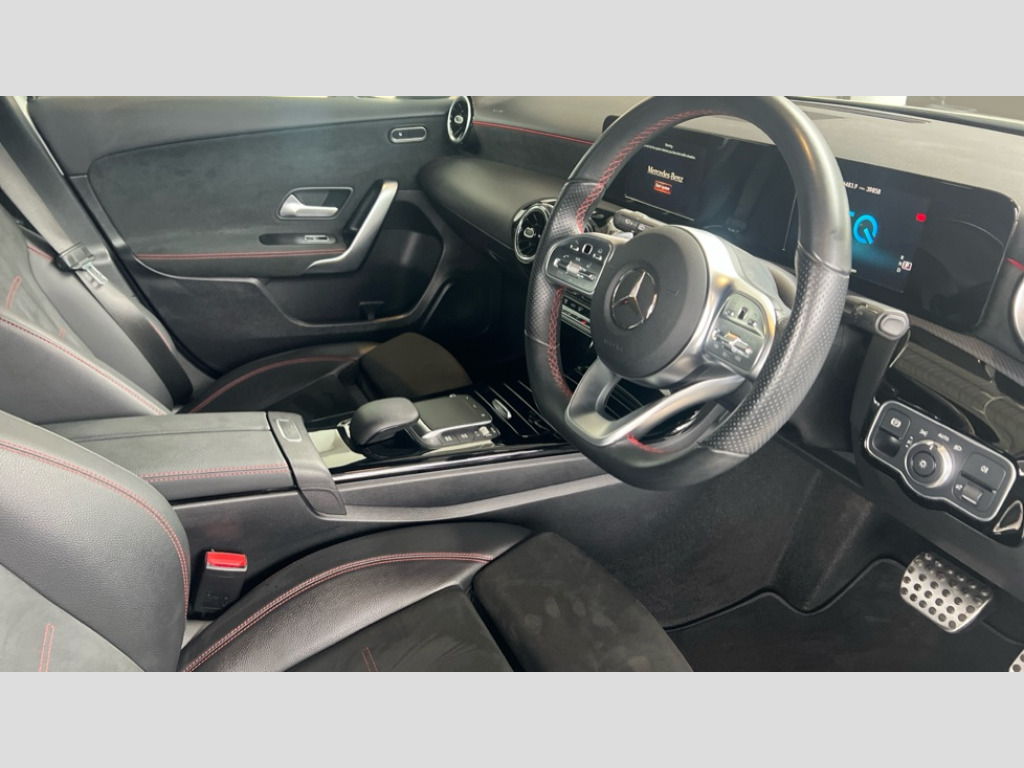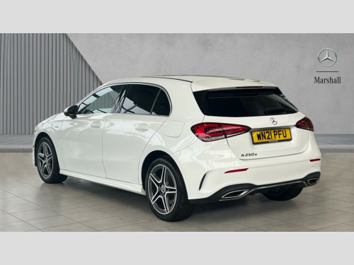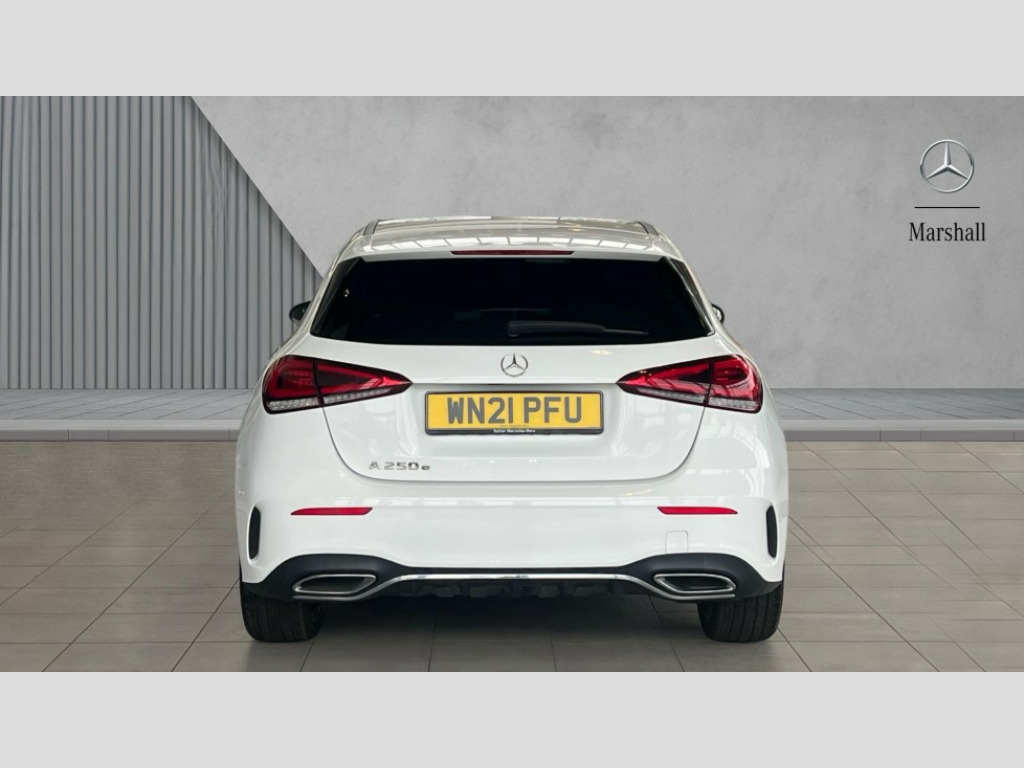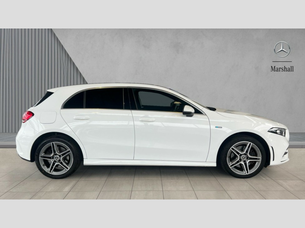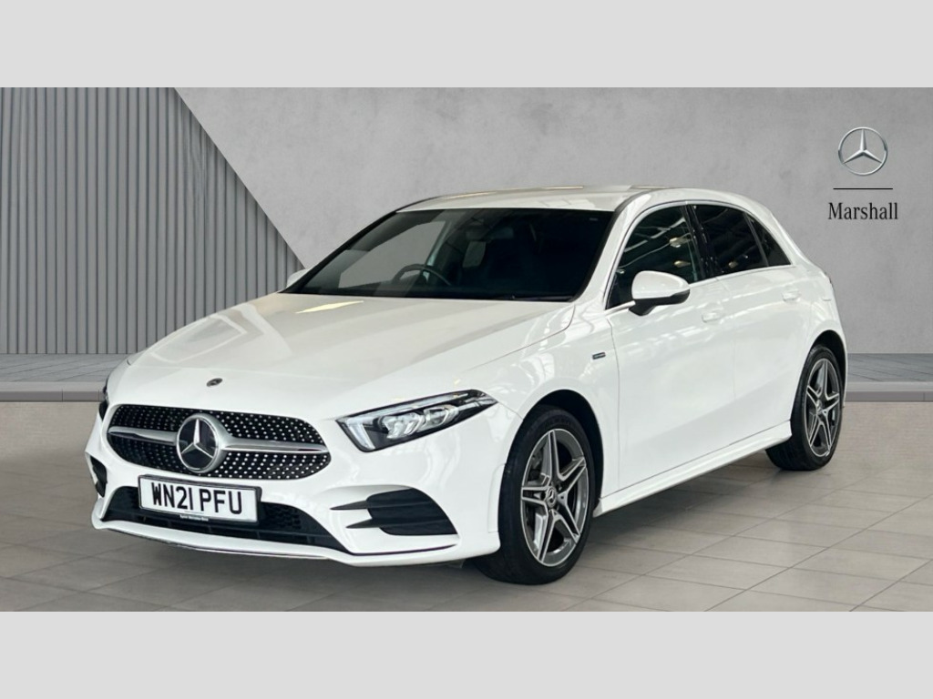 Mercedes-Benz A Class A250e AMG Line 5dr Auto 180 degree rear view camera with parking guidelines, 7" colour screen in instrument panel, 7" touchscreen media display, Acoustic ambient protection, Attention assist, Brake pad wear indicator warning light, Car wash mode, Cruise control + speed limiter, Direct steering, Dual bluetooth interfaces, DYNAMIC SELECT with a choice of driving modes (ECO, Comfort, Sport and Individual), ECO start/stop function, Fluid level warning indicator for fuel, oil, coolant and washer fluid, Hard-disk navigation, Hey Mercedes Voice activation, Lamp failure indicator, Mercedes me connect including emergency call system, accident recovery, breakdown and maintenance management, Mercedes me remote services, Outside temperature gauge, Owners manual in English, Pre-installation for private car sharing, Preinstallation for Mercedes Benz link, Remote and charging services plus, Service indicator (ASSYST), Speed sensitive power steering, Trip computer, 7.4 kW monophase on board charger, Comfort suspension, Mode 3 charging cable 11 kW, Rear axle multi-link, 2 USB ports (type C) in rear stowage compartment and one in front of center console, 6 speakers, DAB Digital radio, MBUX multimedia system with DAB digital radio and touchpad including satellite navigation, Mercedes-Benz sound system - 100W, 4 Electric Front and Rear windows, Adaptive brake lights, AMG bodystyling - Front apron with splitter in chrome, rear apron with chrome trim and chrome visible trim elements in tailpipe, Black weather strip, Body colour bumpers, Body colour door handles, Body colour side skirt, Body coloured door mirrors, Chrome beltline trim, Diamond radiator grille with chrome pins and silver louvre + chrome insert, Electric adjustable and heated door mirrors with integrated LED side indicators, EQ badging, Exhaust system - Twin visible tailpipes in polished stainless steel, Headlamp assist automatic headlamp activation, Heated glass rear windscreen + timer control, LED high performance headlamps with integrated LED daytime running lights, LED tail lamp, LED third brake light, Privacy glass, Radio aerial, Rain sensing windscreen wipers with two sensitivity settings, Rear fog lights, Rear wiper, Window line trim strip in chrome, 3 pin charging cable plug, 3 Spoke flat bottom leather multi function steering wheel with perforated leather in grip area, 40:20:40 split folding rear seats, Artico man-made leather/Microfibre Dinamica upholstery with red contrast stitching, Auto Mercedes-Benz child seat recognition sensor, Black air vents with surround in silver chrome, Black roof lining, Brushed stainless steel sports pedals with rubber studs, Charging socket, Controller on centre console with chrome surround, Floor mats with stitched edging and AMG lettering, Front centre armrest with storage compartment, Front door sills with Mercedes Benz lettering, Front seat backs luggage nets, Front seat cushion length adjustment, Galvanished gear shift paddles on steering wheel, Heated front seats, Height/reach adjustable steering column, Interior mirror with reading lamps in black and frameless, Manual height adjustable front seats, Pre-entry climate control, Rear head restraints, Seat occupancy sensor for front passenger seat, Sports seats with integrated headrests, Stowage compartment in centre console with retractable cover, Sunvisors with illuminated vanity mirrors, Touchpad on center console, Twin front cupholders, Two zone thermotronic luxury automatic climate control, Light and sight pack - A Class, Seat comfort pack - A Class, 3 rear 3 point seatbelts, ABS with Brake Assist, Active bonnet, Active brake assist includes forward collision warning system with autonomous braking, Adaptive brake assist with hold function and hill start assist, Black seatbelts, Childproof locks manually operated for rear doors and electrically operated for rear power windows, Crash responsive emergency lighting, Driver and passenger head and side airbags, Drivers knee airbag, Dual stage driver/passenger airbags, Electronic parking brake, ESP curve dynamic assist, ESP with ASR, Front and rear seatbelt reminder, Front brake callipers with Mercedes Benz lettering, ISOFIX and top tether child seat fixing points in two outer rear seats, Perforated front brake discs, Radar based regeneration, Tyre pressure monitoring system, Warning triangle and first aid kit, Window airbags, Alarm system/interior protection/immobiliser, Keyless Go, Remote central locking and crash sensor with emergency opening function, Urban guard vehicle protection system with immobiliser and interior protection, Dinamica microfibre trim in black, 18" AMG 5 twin spoke light alloy wheels in titanium grey with highsheen finish, Summer tyres, Tirefit sealant kit