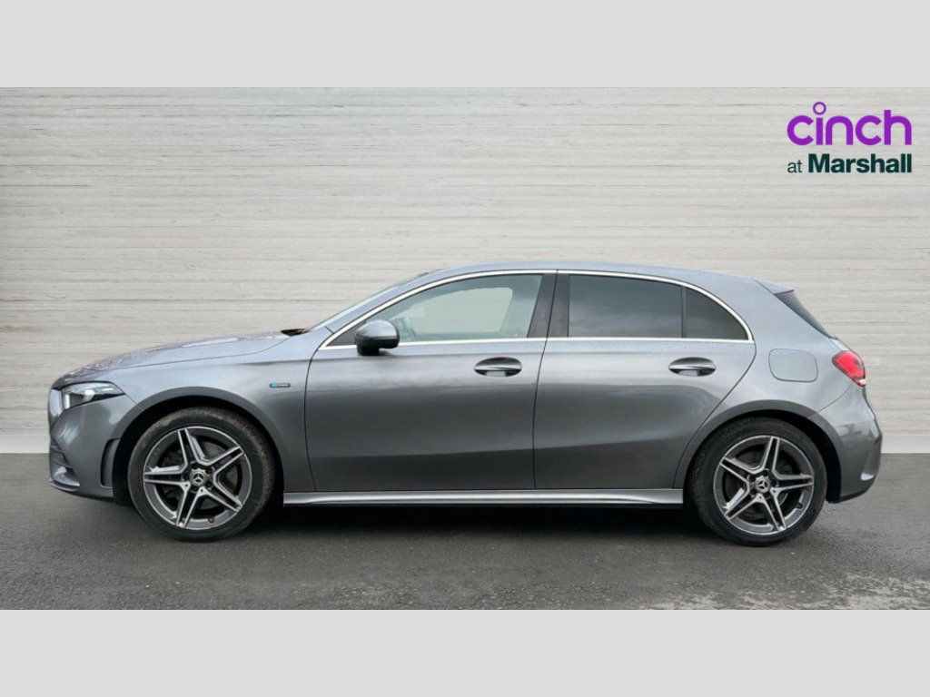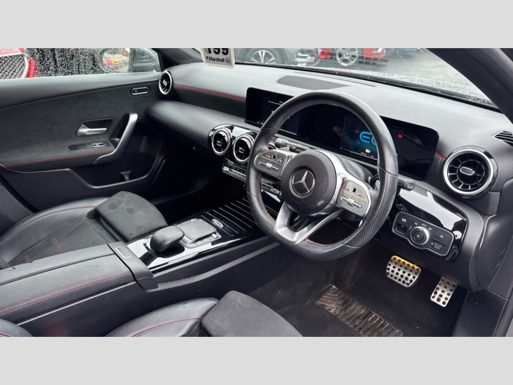 Mercedes-Benz A Class A250e AMG Line 5dr Auto 180 degree rear view camera with parking guidelines, 7" colour screen in instrument panel, 7" touchscreen media display, Acoustic ambient protection, Active lane keep assist, Attention assist, Brake pad wear indicator warning light, Car wash mode, Cruise control + speed limiter, Direct steering, Dual bluetooth interfaces, DYNAMIC SELECT with a choice of driving modes (ECO, Comfort, Sport and Individual), ECO start/stop function, Fluid level warning indicator for fuel, oil, coolant and washer fluid, Hard-disk navigation, Hey Mercedes Voice activation, Lamp failure indicator, Mercedes me connect including emergency call system, accident recovery, breakdown and maintenance management, Outside temperature gauge, Owners manual in English, Pre-installation for private car sharing, Pre-installation for Vehicle Monitoring, Pre-installation for Vehicle Setup, Preinstallation for Mercedes Benz link, Service indicator (ASSYST), Speed sensitive power steering, Trip computer, 7.4 kW monophase on board charger, Comfort suspension, Mode 3 charging cable 11 kW, Rear axle multi-link, 2 USB ports (type C) in rear stowage compartment and one in front of center console, 6 speakers, DAB Digital radio, MBUX multimedia system with DAB digital radio and touchpad including satellite navigation, Mercedes-Benz sound system - 100W, 4 Electric Front and Rear windows, Adaptive brake lights, AMG bodystyling - Front apron with splitter in chrome, rear apron with chrome trim and chrome visible trim elements in tailpipe, Black weather strip, Body colour bumpers, Body colour door handles, Body colour side skirt, Body coloured door mirrors, Chrome beltline trim, Diamond radiator grille with chrome pins and silver louvre + chrome insert, Electric adjustable and heated door mirrors with integrated LED side indicators, EQ badging, Exhaust system - Twin visible tailpipes in polished stainless steel, Headlamp assist automatic headlamp activation, Heated glass rear windscreen + timer control, LED high performance headlamps with integrated LED daytime running lights, LED tail lamp, LED third brake light, Privacy glass, Radio aerial, Rain sensing windscreen wipers with two sensitivity settings, Rear fog lights, Rear wiper, Window line trim strip in chrome, 3 pin charging cable plug, 3 Spoke flat bottom leather multi function steering wheel with perforated leather in grip area, 40:20:40 split folding rear seats, Artico man-made leather/Microfibre Dinamica upholstery with red contrast stitching, Auto Mercedes-Benz child seat recognition sensor, Black air vents with surround in silver chrome, Black roof lining, Brushed stainless steel sports pedals with rubber studs, Charging socket, Controller on centre console with chrome surround, Floor mats with stitched edging and AMG lettering, Front centre armrest with storage compartment, Front door sills with Mercedes Benz lettering, Front seat backs luggage nets, Front seat cushion length adjustment, Galvanished gear shift paddles on steering wheel, Heated front seats, Height/reach adjustable steering column, Interior mirror with reading lamps in black and frameless, Manual height adjustable front seats, Pre-entry climate control, Rear head restraints, Seat occupancy sensor for front passenger seat, Sports seats with integrated headrests, Stowage compartment in centre console with retractable cover, Sunvisors with illuminated vanity mirrors, Touchpad on center console, Twin front cupholders, Two zone thermotronic luxury automatic climate control, Light and sight pack - A Class, Seat comfort pack - A Class, 3 rear 3 point seatbelts, ABS with Brake Assist, Active bonnet, Active brake assist includes forward collision warning system with autonomous braking, Adaptive brake assist with hold function and hill start assist, Black seatbelts, Childproof locks manually operated for rear doors and electrically operated for rear power windows, Crash responsive emergency lighting, Driver and passenger head and side airbags, Drivers knee airbag, Dual stage driver/passenger airbags, Electronic parking brake, ESP curve dynamic assist, ESP with ASR, Front and rear seatbelt reminder, Front brake callipers with Mercedes Benz lettering, ISOFIX and top tether child seat fixing points in two outer rear seats, Perforated front brake discs, Radar based regeneration, Tyre pressure monitoring system, Warning triangle and first aid kit, Window airbags, Alarm system/interior protection/immobiliser, Keyless Go, Remote central locking and crash sensor with emergency opening function, Urban guard vehicle protection system with immobiliser and interior protection, Dinamica microfibre trim in black, 18" AMG 5 twin spoke light alloy wheels in titanium grey with highsheen finish, Summer tyres, Tirefit sealant kit
