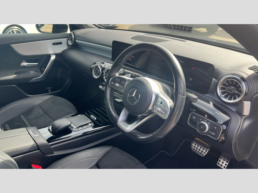 Mercedes-Benz A Class A250e AMG Line Edition 5dr Auto 180 degree rear view camera with parking guidelines, 7" colour screen in instrument panel, 7" touchscreen media display, Acoustic ambient protection, Attention assist, Brake pad wear indicator warning light, Car wash mode, Cruise control + speed limiter, Direct steering, Dual bluetooth interfaces, DYNAMIC SELECT with a choice of driving modes (ECO, Comfort, Sport and Individual), ECO start/stop function, Fluid level warning indicator for fuel, oil, coolant and washer fluid, Hard-disk navigation, Hey Mercedes Voice activation, Lamp failure indicator, Lane keeping system, Mercedes me connect including emergency call system, accident recovery, breakdown and maintenance management, Mercedes me remote services, Outside temperature gauge, Owners manual in English, Pre-installation for private car sharing, Preinstallation for Mercedes Benz link, Service indicator (ASSYST), Speed sensitive power steering, Trip computer, 7.4 kW monophase on board charger, Comfort suspension, Mode 3 charging cable 11 kW, Rear axle multi-link, 2 USB ports (type C) in rear stowage compartment and one in front of center console, 6 speakers, DAB Digital radio, MBUX multimedia system with DAB digital radio and touchpad including satellite navigation, Mercedes-Benz sound system - 100W, 4 Electric Front and Rear windows, Adaptive brake lights, AMG bodystyling - Front apron with splitter in chrome, rear apron with chrome trim and chrome visible trim elements in tailpipe, Automatic headlights, Black weather strip, Body colour bumpers, Body colour door handles, Body colour side skirt, Body coloured door mirrors, Edition badging on the front wings, Electric adjustable and heated door mirrors with integrated LED side indicators, Exclusive diamond radiator grille, Exhaust system - Twin visible tailpipes in polished stainless steel, Headlamp assist automatic headlamp activation, Heated glass rear windscreen + timer control, High gloss black beltline, LED High level third brake light, LED high performance headlamps with integrated LED daytime running lights, LED tail lamp, Privacy glass, Radio aerial, Rain sensing windscreen wipers with two sensitivity settings, Rear fog lights, Rear side wing doors, Rear wiper, Window line trim strip in high gloss black, 3 pin charging cable plug, 3 seat bench in 2nd row, 3 Spoke flat bottom leather multi function steering wheel with perforated leather in grip area, 40:20:40 split folding rear seats, Artico man-made leather/Microfibre Dinamica upholstery with contrast stitching in light grey, Auto Mercedes-Benz child seat recognition sensor, Black air vents with surround in silver chrome, Black roof lining, Brushed stainless steel sports pedals with rubber studs, Charging socket, Controller on centre console with chrome surround, Floor mats with black top stitching and embroidered edition logo and piping in light grey, Front centre armrest with storage compartment, Front door sills with Mercedes Benz lettering, Front seat backs luggage nets, Front seat cushion length adjustment, Galvanished gear shift paddles on steering wheel, Heated front seats, Height/reach adjustable steering column, Interior lighting - 64 colour Ambient lighting, Interior mirror with reading lamps in black and frameless, Manual height adjustable front seats, Pre-entry climate control, Rear head restraints, Seat occupancy sensor for front passenger seat, Single front passenger seat, Sports seats with integrated headrests, Stowage compartment in centre console with retractable cover, Sunvisors with illuminated vanity mirrors, Touchpad on center console, Twin front cupholders, Two zone thermotronic luxury automatic climate control, Light and sight pack - A Class, Night pack - A Class Saloon/Hatchback, Seat comfort pack - A Class, 3 rear 3 point seatbelts, ABS with Brake Assist, Active bonnet, Active brake assist includes forward collision warning system with autonomous braking, Adaptive brake assist with hold function and hill start assist, Black seatbelts, Childproof locks manually operated for rear doors and electrically operated for rear power windows, Crash responsive emergency lighting, Driver and passenger head and side airbags, Drivers knee airbag, Dual stage driver/passenger airbags, Electronic parking brake, ESP curve dynamic assist, ESP with ASR, Front and rear seatbelt reminder, Front brake callipers with Mercedes Benz lettering, ISOFIX and top tether child seat fixing points in two outer rear seats, Perforated front brake discs, Radar based regeneration, Tyre pressure monitoring system, Warning triangle and first aid kit, Window airbags, Alarm system/interior protection/immobiliser, Keyless Go, Remote central locking and crash sensor with emergency opening function, Urban guard vehicle protection system with immobiliser and interior protection, Matrix look light longitudinal grain aluminium trim element, 18" AMG 5 twin spoke light alloy wheels aerodynamically optimised painted in black with highsheen finish, Summer tyres, Tirefit sealant kit
