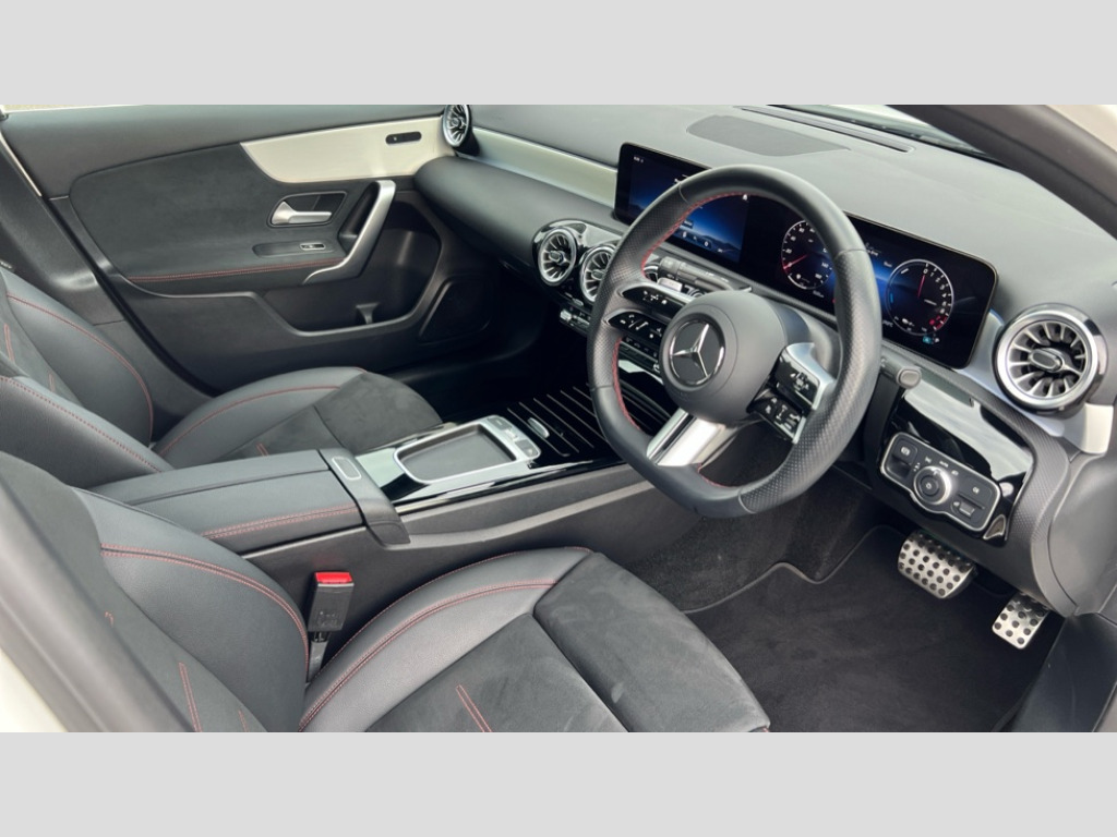 Terms and conditions apply 10.25 inch touchscreen central media display, 10.25" Digital instrument cluster display screen, Acoustic ambient protection, Attention assist, Brake pad wear indicator warning light, Car wash mode, Cruise control + speed limiter, Direct steering, Direction indicators with lane change function, Dual bluetooth interfaces, DYNAMIC SELECT with a choice of driving modes (ECO, Comfort, Sport and Individual), ECO start/stop function, Engine start/stop button, Fluid level warning indicator for fuel, oil, coolant and washer fluid, Fluorescent jacket for driver, Hard-disk navigation, Hey Mercedes Voice activation, Lamp failure indicator, Lane keeping system, Mercedes me connect including emergency call system, accident recovery, breakdown and maintenance management, Mercedes me remote services, Outside temperature gauge, Owners manual in English, Pre-installation of private car share, Preinstallation for Mercedes Benz link, Remote and charging services plus, Remote boot closing, Service indicator (ASSYST), Smartphone integration with Apple CarPlay and Android auto, Speed limit assist, Speed sensitive power steering, Trip computer in multifunction display with current consumption indicator, Wireless charging, Charging system - AC charging system rated at 11kW, Charging system - DC charging system rated at 22 kW, Comfort suspension, Mode 2 charging cable for domestic socket with 5m up to 1.8kW, Mode 3 charging cable for wallbox and public charging stations with 4m upto 22 kW, DAB Digital radio, MBUX multimedia system, Mercedes Benz sound system (100 W) with 6 speakers, 4 Electric Front and Rear windows, Adaptive brake lights, AMG body styling - AMG front apron with front splitter and AMG rear apron and visible exhaust tailpipe trim elements, Body colour bumpers, Body colour door handles with chrome inserts, Body colour side skirt, Body coloured door mirrors, Chrome beltline strips, Diamond radiator grille with pins in fine star pattern, Electric adjustable and heated door mirrors with integrated LED side indicators, Exhaust system with 2 visible tailpipe trim elements and rear apron, Headlamp assist automatic headlamp activation, Heat insulating dark tinted rear and rear side windows, Heated glass rear windscreen + timer control, LED High Performance headlamps including integral LED daytime running lamps and adaptive highbeam assist, LED tail lamp, Privacy glass, Radio aerial, Rain sensing windscreen wipers with two sensitivity settings, Rear boot, Rear fog lights, Rear side wing doors, Third brake light featuring LED technology, Window line trim strip in chrome, 3 seat bench in 2nd row, 3 Spoke flat bottom leather multi function steering wheel with perforated leather in grip area, 4 way lumbar support, 40:20:40 split folding rear seats, Air conditioning - One zone THERMATIC automatic climate control with automatically controlled air distribution, Automatic child seat recognition sensor, Black air vents with surround in silver chrome, Black roof lining, Brushed stainless steel sports pedals with rubber studs, Charging socket, Floor mats with AMG lettering, Front centre armrest with stowage, Front door sills with Mercedes Benz lettering, Front seat backs luggage nets, Front sports seats with adjustable head restraints, Galvanished gear shift paddles on steering wheel, Heated front seats, Height/reach adjustable steering column, Interior lighting - 64 colour Ambient lighting, Interior mirror with reading lamps in black and frameless, Pre-entry climate control, Rear armrest with 2 cupholders, Seat occupancy sensor for front passenger seat, Single front passenger seat, Stowage compartment in centre console with retractable cover, Sunvisors with illuminated vanity mirrors, Twin front cupholders, Keyless go comfort pack - A Class, Light and sight pack - A Class, Mirror package - A Class, Parking pack - A Class, Seat comfort pack - A Class, USB pack plus - A Class, 3 rear 3 point seatbelts, ABS with Brake Assist, Active bonnet, Active brake assist includes forward collision warning system with autonomous braking, Adaptive brake assist with hold function and hill start assist, Black seatbelts, Bonnet with power domes, Childproof locks manually operated for rear doors and electrically operated for rear power windows, Crash responsive emergency lighting, Driver and passenger head and side airbags, Drivers knee airbag, Dual stage driver/passenger airbags, Electronic parking brake, ESP curve dynamic assist, ESP with ASR, Front and rear seatbelt reminder, ISOFIX and top tether child seat fixing points in two outer rear seats, Perforated front brake discs, Radar based regeneration, Tyre pressure monitoring system, Warning triangle and first aid kit, Window airbags, Alarm system/interior protection/immobiliser, Guard 360 degree vehicle protection, Remote central locking and crash sensor with emergency opening function, Light longitudinal grain aluminium trim, 18" AMG 5 twin spoke light alloy wheels,aerodynamically optimised, painted in termolite grey with high sheen finish, Summer tyres, Tirefit sealant kit