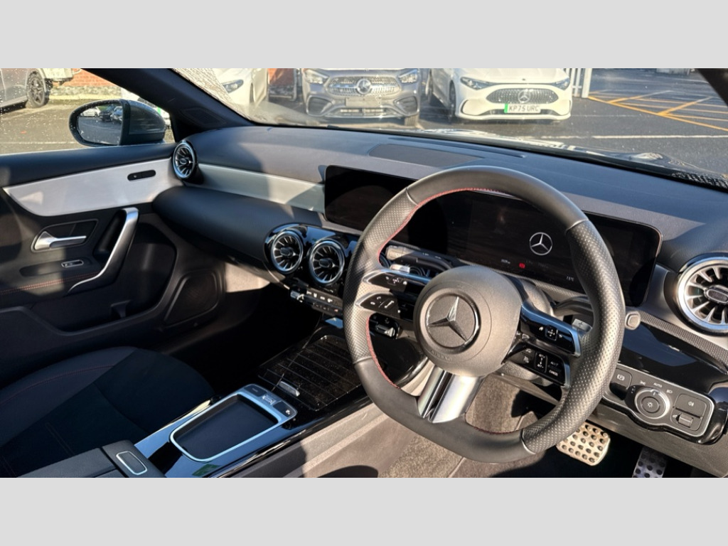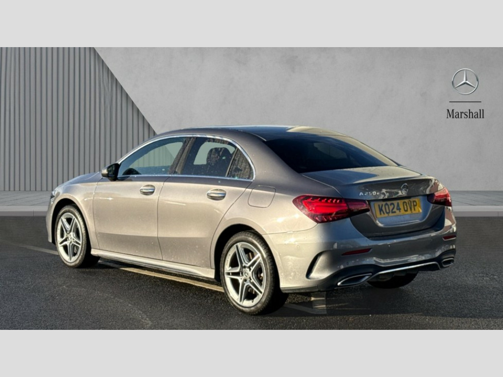 Mercedes-Benz A Class A250e AMG Line Executive 4dr Auto 10.25 inch touchscreen central media display, 10.25" Digital instrument cluster display screen, Acoustic ambient protection, Attention assist, Brake pad wear indicator warning light, Car wash mode, Cruise control + speed limiter, Direct steering, Direction indicators with lane change function, Dual bluetooth interfaces, DYNAMIC SELECT with a choice of driving modes (ECO, Comfort, Sport and Individual), ECO start/stop function, Engine start/stop button, Fluid level warning indicator for fuel, oil, coolant and washer fluid, Fluorescent jacket for driver, Hard-disk navigation, Hey Mercedes Voice activation, Lamp failure indicator, Lane keeping system, Mercedes me connect including emergency call system, accident recovery, breakdown and maintenance management, Mercedes me remote services, Outside temperature gauge, Owners manual in English, Pre-installation of private car share, Preinstallation for Mercedes Benz link, Remote and charging services plus, Remote boot closing, Service indicator (ASSYST), Smartphone integration with Apple CarPlay and Android auto, Speed limit assist, Speed sensitive power steering, Trip computer in multifunction display with current consumption indicator, Wireless charging, Charging system - AC charging system rated at 11kW, Charging system - DC charging system rated at 22 kW, Comfort suspension, Mode 2 charging cable for domestic socket with 5m up to 1.8kW, Mode 3 charging cable for wallbox and public charging stations with 4m upto 22 kW, DAB Digital radio, MBUX multimedia system, Mercedes Benz sound system (100 W) with 6 speakers, 4 Electric Front and Rear windows, Adaptive brake lights, AMG body styling - AMG front apron with front splitter and AMG rear apron and visible exhaust tailpipe trim elements, Body colour bumpers, Body colour door handles with chrome inserts, Body colour side skirt, Body coloured door mirrors, Chrome beltline strips, Diamond radiator grille with pins in fine star pattern, Electric adjustable and heated door mirrors with integrated LED side indicators, Exhaust system with 2 visible tailpipe trim elements and rear apron, Headlamp assist automatic headlamp activation, Heat insulating dark tinted rear and rear side windows, Heated glass rear windscreen + timer control, LED High Performance headlamps including integral LED daytime running lamps and adaptive highbeam assist, LED tail lamp, Privacy glass, Radio aerial, Rain sensing windscreen wipers with two sensitivity settings, Rear boot, Rear fog lights, Rear side wing doors, Third brake light featuring LED technology, Window line trim strip in chrome, 3 seat bench in 2nd row, 3 Spoke flat bottom leather multi function steering wheel with perforated leather in grip area, 4 way lumbar support, 40:20:40 split folding rear seats, Air conditioning - One zone THERMATIC automatic climate control with automatically controlled air distribution, Automatic child seat recognition sensor, Black air vents with surround in silver chrome, Black roof lining, Brushed stainless steel sports pedals with rubber studs, Charging socket, Floor mats with AMG lettering, Front centre armrest with stowage, Front door sills with Mercedes Benz lettering, Front seat backs luggage nets, Front sports seats with adjustable head restraints, Galvanished gear shift paddles on steering wheel, Heated front seats, Height/reach adjustable steering column, Interior lighting - 64 colour Ambient lighting, Interior mirror with reading lamps in black and frameless, Pre-entry climate control, Rear armrest with 2 cupholders, Seat occupancy sensor for front passenger seat, Single front passenger seat, Stowage compartment in centre console with retractable cover, Sunvisors with illuminated vanity mirrors, Twin front cupholders, Keyless go comfort pack - A Class, Light and sight pack - A Class, Mirror package - A Class, Parking pack - A Class, Seat comfort pack - A Class, USB pack plus - A Class, 3 rear 3 point seatbelts, ABS with Brake Assist, Active bonnet, Active brake assist includes forward collision warning system with autonomous braking, Adaptive brake assist with hold function and hill start assist, Black seatbelts, Bonnet with power domes, Childproof locks manually operated for rear doors and electrically operated for rear power windows, Crash responsive emergency lighting, Driver and passenger head and side airbags, Drivers knee airbag, Dual stage driver/passenger airbags, Electronic parking brake, ESP curve dynamic assist, ESP with ASR, Front and rear seatbelt reminder, ISOFIX and top tether child seat fixing points in two outer rear seats, Perforated front brake discs, Radar based regeneration, Tyre pressure monitoring system, Warning triangle and first aid kit, Window airbags, Alarm system/interior protection/immobiliser, Guard 360 degree vehicle protection, Remote central locking and crash sensor with emergency opening function, Light longitudinal grain aluminium trim, 18" AMG 5 twin spoke light alloy wheels,aerodynamically optimised, painted in termolite grey with high sheen finish, Summer tyres, Tirefit sealant kit