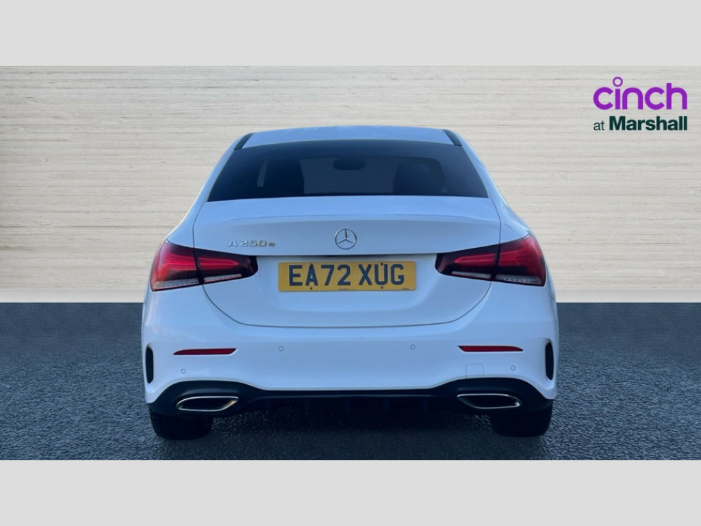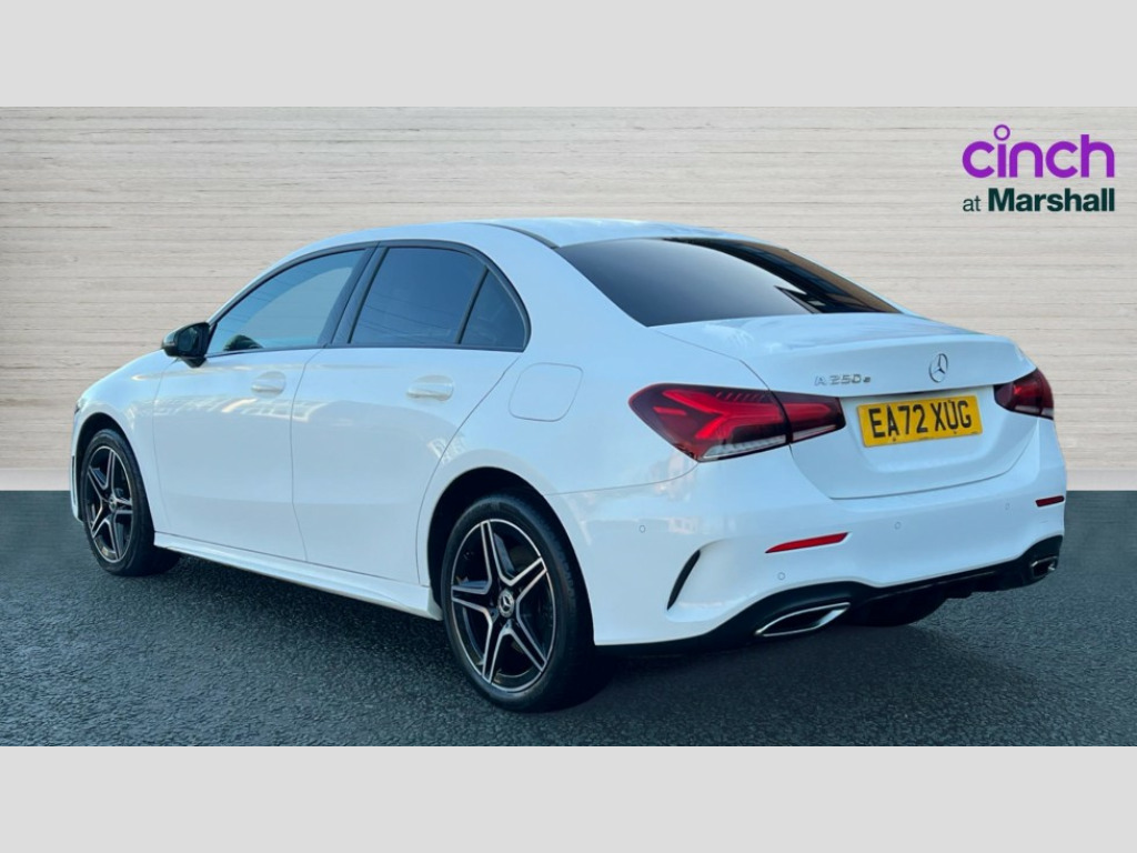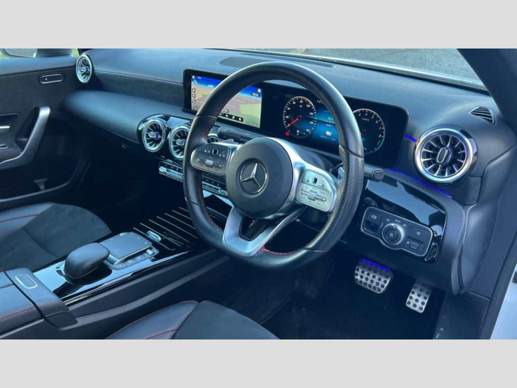 Mercedes-Benz A Class A250e AMG Line Executive 4dr Auto 10.25" Digital instrument cluster display screen, 10.25" media display, 180 degree rear view camera with parking guidelines, Acoustic ambient protection, Active parking assist with visual and audible warning of detected obstacles, Attention assist, Brake pad wear indicator warning light, Car wash mode, Cruise control + speed limiter, Direct steering, Dual bluetooth interfaces, DYNAMIC SELECT with a choice of driving modes (ECO, Comfort, Sport and Individual), ECO start/stop function, Fluid level warning indicator for fuel, oil, coolant and washer fluid, Hard-disk navigation, Hey Mercedes Voice activation, Lamp failure indicator, Lane keeping system, Mercedes me connect including emergency call system, accident recovery, breakdown and maintenance management, Mercedes me remote services, Outside temperature gauge, Owners manual in English, Pre-installation for private car sharing, Preinstallation for Mercedes Benz link, Remote and charging services plus, Service indicator (ASSYST), Smartphone integration with Apple CarPlay and Android auto, Speed limit assist, Speed sensitive power steering, Trip computer, Ultrasonic sensors positioned in the front and rear bumpers, 7.4 kW monophase on board charger, Comfort suspension, Mode 2 charging cable and 5m upto 2.3kW, Mode 3 charging cable 22 kW, Rear axle multi-link, 2 USB ports (type C) in rear stowage compartment and one in front of center console, 6 speakers, DAB Digital radio, MBUX multimedia system with DAB digital radio and touchpad including satellite navigation, Mercedes-Benz sound system - 100W, 4 Electric Front and Rear windows, Adaptive brake lights, AMG bodystyling - Front apron with splitter in chrome, rear apron with chrome trim and chrome visible trim elements in tailpipe, Automatic headlights, Black weather strip, Body colour bumpers, Body colour door handles with chrome inserts, Body colour side skirt, Electric adjustable and heated door mirrors with integrated LED side indicators, Exclusive diamond radiator grille, Exhaust system - Twin visible tailpipes in polished stainless steel, Headlamp assist automatic headlamp activation, Heated glass rear windscreen + timer control, LED high performance headlamps with integrated LED daytime running lights, LED tail lamp, Privacy glass, Radio aerial, Rain sensing windscreen wipers with two sensitivity settings, Rear boot, Rear fog lights, Rear side wing doors, Third brake light featuring LED technology, 3 seat bench in 2nd row, 3 Spoke flat bottom leather multi function steering wheel with perforated leather in grip area, 40:20:40 split folding rear seats, Artico man-made leather/Microfibre Dinamica upholstery with red contrast stitching, Auto Mercedes-Benz child seat recognition sensor, Black air vents with surround in silver chrome, Black roof lining, Brushed stainless steel sports pedals with rubber studs, Charging socket, Controller on centre console with chrome surround, Floor mats with AMG lettering, Front centre armrest with storage compartment, Front seat backs luggage nets, Front sports seats with adjustable head restraints, Galvanished gear shift paddles on steering wheel, Heated front seats, Height/reach adjustable steering column, Illuminated Mercedes Benz lettering front door sills with changeable cover, Interior lighting - 64 colour Ambient lighting, Interior mirror with reading lamps in black and frameless, Manual height adjustable front seats, Pre-entry climate control, Rear head restraints, Seat occupancy sensor for front passenger seat, Single front passenger seat, Stowage compartment in centre console with retractable cover, Sunvisors with illuminated vanity mirrors, Touchpad on center console, Twin front cupholders, Two zone thermotronic luxury automatic climate control, Light and sight pack - A Class, Mirror package - A Class, Night pack - A Class Saloon/Hatchback, Seat comfort pack - A Class, 3 rear 3 point seatbelts, ABS with Brake Assist, Active bonnet, Active brake assist includes forward collision warning system with autonomous braking, Adaptive brake assist with hold function and hill start assist, Black seatbelts, Childproof locks manually operated for rear doors and electrically operated for rear power windows, Crash responsive emergency lighting, Driver and passenger head and side airbags, Drivers knee airbag, Dual stage driver/passenger airbags, Electronic parking brake, ESP curve dynamic assist, ESP with ASR, Front and rear seatbelt reminder, Front brake callipers with Mercedes Benz lettering, ISOFIX and top tether child seat fixing points in two outer rear seats, Perforated front brake discs, Radar based regeneration, Tyre pressure monitoring system, Warning triangle and first aid kit, Window airbags, Alarm system/interior protection/immobiliser, Keyless Go, Remote central locking and crash sensor with emergency opening function, Urban guard vehicle protection system with immobiliser and interior protection, Matrix look light longitudinal grain aluminium trim element, 18" AMG 5 twin spoke light alloy wheels aerodynamically optimised painted in black with highsheen finish, Summer tyres, Tirefit sealant kit