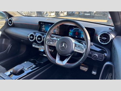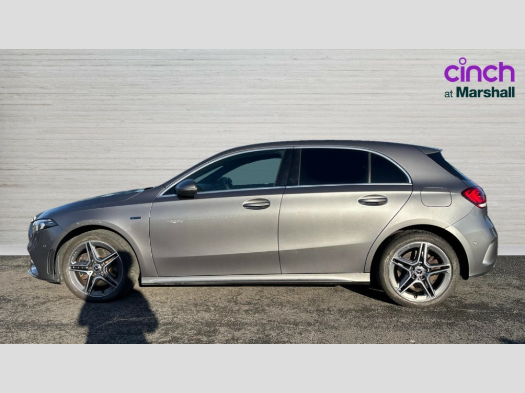 Mercedes-Benz A Class A250e AMG Line Executive 5dr Auto 10.25" media display, 180 degree rear view camera with parking guidelines, 7" colour screen in instrument panel, Acoustic ambient protection, Active parking assist with visual and audible warning of detected obstacles, Attention assist, Brake pad wear indicator warning light, Car wash mode, Cruise control + speed limiter, Direct steering, Dual bluetooth interfaces, DYNAMIC SELECT with a choice of driving modes (ECO, Comfort, Sport and Individual), ECO start/stop function, Fluid level warning indicator for fuel, oil, coolant and washer fluid, Hard-disk navigation, Hey Mercedes Voice activation, Lamp failure indicator, Mercedes me connect including emergency call system, accident recovery, breakdown and maintenance management, Mercedes me remote services, Outside temperature gauge, Owners manual in English, Pre-installation for private car sharing, Preinstallation for Mercedes Benz link, Remote and charging services plus, Service indicator (ASSYST), Smartphone integration with Apple CarPlay and Android auto, Speed sensitive power steering, Trip computer, Ultrasonic sensors positioned in the front and rear bumpers, Wireless charging, 7.4 kW monophase on board charger, Comfort suspension, Mode 3 charging cable 11 kW, Rear axle multi-link, 2 USB ports (type C) in rear stowage compartment and one in front of center console, 6 speakers, DAB Digital radio, MBUX multimedia system with DAB digital radio and touchpad including satellite navigation, Mercedes-Benz sound system - 100W, 4 Electric Front and Rear windows, Adaptive brake lights, AMG bodystyling - Front apron with splitter in chrome, rear apron with chrome trim and chrome visible trim elements in tailpipe, Black weather strip, Body colour bumpers, Body colour door handles, Body colour side skirt, Body coloured door mirrors, Chrome beltline trim, Diamond radiator grille with chrome pins and silver louvre + chrome insert, Electric adjustable and heated door mirrors with integrated LED side indicators, EQ badging, Exhaust system - Twin visible tailpipes in polished stainless steel, Headlamp assist automatic headlamp activation, Heated glass rear windscreen + timer control, LED high performance headlamps with integrated LED daytime running lights, LED tail lamp, LED third brake light, Privacy glass, Radio aerial, Rain sensing windscreen wipers with two sensitivity settings, Rear fog lights, Rear wiper, Window line trim strip in chrome, 3 Spoke flat bottom leather multi function steering wheel with perforated leather in grip area, 40:20:40 split folding rear seats, Artico man-made leather/Microfibre Dinamica upholstery with red contrast stitching, Auto Mercedes-Benz child seat recognition sensor, Black air vents with surround in silver chrome, Black roof lining, Brushed stainless steel sports pedals with rubber studs, Charging socket, Controller on centre console with chrome surround, Floor mats with stitched edging and AMG lettering, Front centre armrest with storage compartment, Front door sills with Mercedes Benz lettering, Front seat backs luggage nets, Front seat cushion length adjustment, Galvanished gear shift paddles on steering wheel, Heated front seats, Height/reach adjustable steering column, Interior mirror with reading lamps in black and frameless, Manual height adjustable front seats, Pre-entry climate control, Rear head restraints, Seat occupancy sensor for front passenger seat, Sports seats with integrated headrests, Stowage compartment in centre console with retractable cover, Sunvisors with illuminated vanity mirrors, Touchpad on center console, Twin front cupholders, Two zone thermotronic luxury automatic climate control, Light and sight pack - A Class, Mirror package - A Class, Seat comfort pack - A Class, 3 rear 3 point seatbelts, ABS with Brake Assist, Active bonnet, Active brake assist includes forward collision warning system with autonomous braking, Adaptive brake assist with hold function and hill start assist, Black seatbelts, Childproof locks manually operated for rear doors and electrically operated for rear power windows, Crash responsive emergency lighting, Driver and passenger head and side airbags, Drivers knee airbag, Dual stage driver/passenger airbags, Electronic parking brake, ESP curve dynamic assist, ESP with ASR, Front and rear seatbelt reminder, Front brake callipers with Mercedes Benz lettering, ISOFIX and top tether child seat fixing points in two outer rear seats, Perforated front brake discs, Radar based regeneration, Tyre pressure monitoring system, Warning triangle and first aid kit, Window airbags, Alarm system/interior protection/immobiliser, Keyless Go, Remote central locking and crash sensor with emergency opening function, Urban guard vehicle protection system with immobiliser and interior protection, Dinamica microfibre trim in black, 18" AMG 5 twin spoke light alloy wheels in titanium grey with highsheen finish, Summer tyres, Tirefit sealant kit