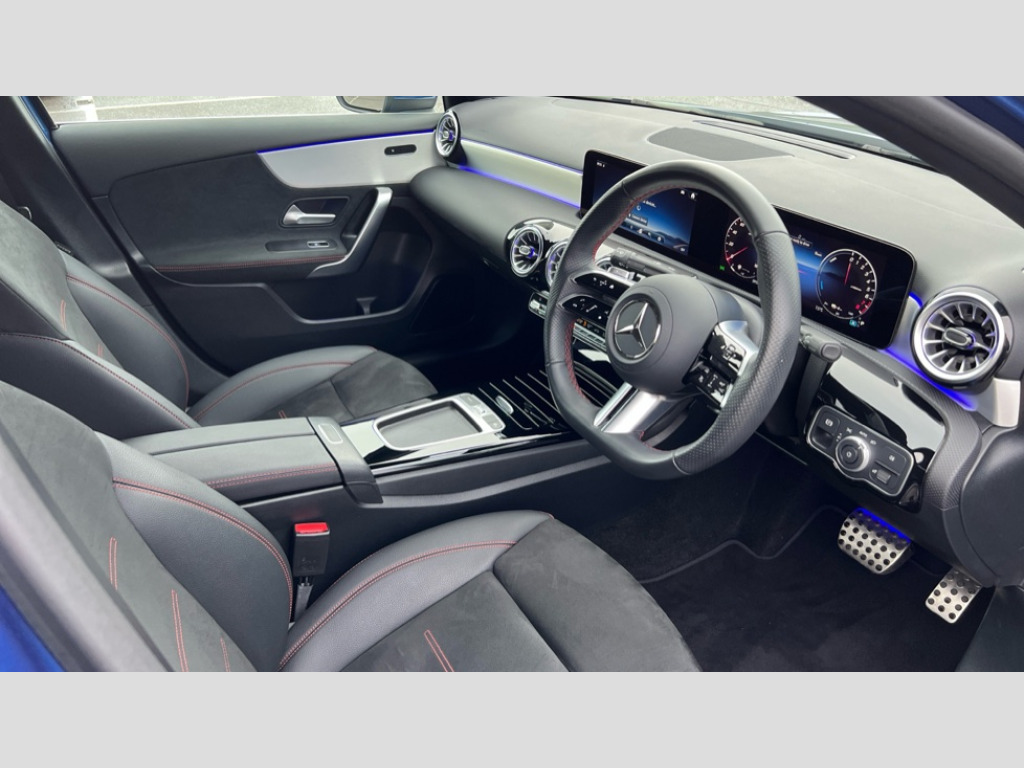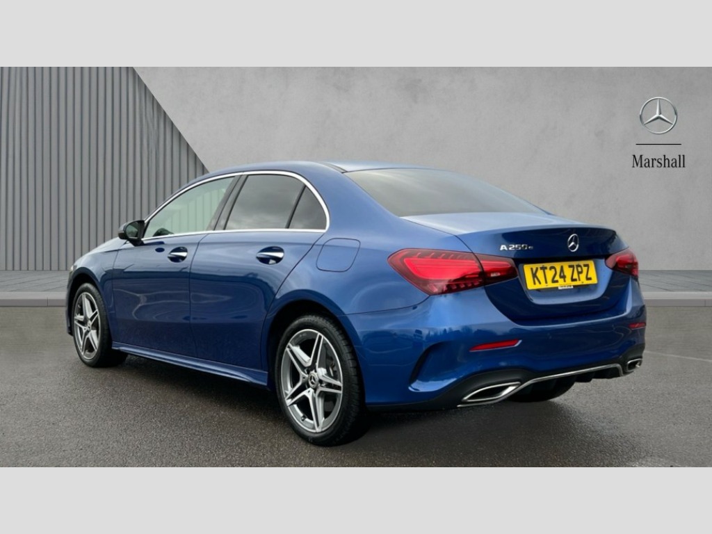 Mercedes-Benz A Class A250e AMG Line Premium 4dr Auto 10.25 inch touchscreen central media display, 10.25" Digital instrument cluster display screen, Acoustic ambient protection, Attention assist, Blind spot assist, Brake pad wear indicator warning light, Car wash mode, Cruise control + speed limiter, Direct steering, Direction indicators with lane change function, Dual bluetooth interfaces, DYNAMIC SELECT with a choice of driving modes (ECO, Comfort, Sport and Individual), ECO start/stop function, Engine start/stop button, Fluid level warning indicator for fuel, oil, coolant and washer fluid, Fluorescent jacket for driver, Hard-disk navigation, Hey Mercedes Voice activation, Lamp failure indicator, Lane keeping system, Mercedes me connect including emergency call system, accident recovery, breakdown and maintenance management, Mercedes me remote services, Outside temperature gauge, Owners manual in English, Pre-installation of private car share, Preinstallation for Mercedes Benz link, Remote and charging services plus, Remote boot closing, Service indicator (ASSYST), Smartphone integration with Apple CarPlay and Android auto, Speed limit assist, Speed sensitive power steering, Trip computer in multifunction display with current consumption indicator, Wireless charging, Charging system - AC charging system rated at 11kW, Charging system - DC charging system rated at 22 kW, Comfort suspension, Mode 2 charging cable for domestic socket with 5m up to 1.8kW, Mode 3 charging cable for wallbox and public charging stations with 4m upto 22 kW, DAB Digital radio, MBUX multimedia system, Mercedes Benz advanced sound system (225 W) with 10 speakers, 1 central speaker, speakers on doors, a tweeter on door,one sub woofer + boost amplifier, 4 Electric Front and Rear windows, Adaptive brake lights, AMG body styling - AMG front apron with front splitter and AMG rear apron and visible exhaust tailpipe trim elements, Body colour bumpers, Body colour door handles with chrome inserts, Body colour side skirt, Body coloured door mirrors, Chrome beltline strips, Diamond radiator grille with pins in fine star pattern, Electric adjustable and heated door mirrors with integrated LED side indicators, Exhaust system with 2 visible tailpipe trim elements and rear apron, Headlamp assist automatic headlamp activation, Heat insulating dark tinted rear and rear side windows, Heated glass rear windscreen + timer control, LED High Performance headlamps including integral LED daytime running lamps and adaptive highbeam assist, LED tail lamp, Privacy glass, Radio aerial, Rain sensing windscreen wipers with two sensitivity settings, Rear boot, Rear fog lights, Rear side wing doors, Third brake light featuring LED technology, Window line trim strip in chrome, 3 seat bench in 2nd row, 3 Spoke flat bottom leather multi function steering wheel with perforated leather in grip area, 4 way lumbar support, 40:20:40 split folding rear seats, Air conditioning - Two zone thermotronic luxury automatic climate control with display, Automatic child seat recognition sensor, Black air vents with surround in silver chrome, Black roof lining, Brushed stainless steel sports pedals with rubber studs, Charging socket, Floor mats with AMG lettering, Front centre armrest with stowage, Front seat backs luggage nets, Front sports seats with adjustable head restraints, Galvanished gear shift paddles on steering wheel, Heated front seats, Height/reach adjustable steering column, Illuminated Mercedes Benz lettering front door sills with changeable cover, Interior lighting - 64 colour Ambient lighting, Interior mirror with reading lamps in black and frameless, Pre-entry climate control, Rear armrest with 2 cupholders, Seat occupancy sensor for front passenger seat, Single front passenger seat, Stowage compartment in centre console with retractable cover, Sunvisors with illuminated vanity mirrors, Twin front cupholders, Keyless go comfort pack - A Class, Light and sight pack - A Class, Mirror package - A Class, Parking pack - A Class, Seat comfort pack - A Class, USB pack plus - A Class, 3 rear 3 point seatbelts, ABS with Brake Assist, Active bonnet, Active brake assist includes forward collision warning system with autonomous braking, Adaptive brake assist with hold function and hill start assist, Black seatbelts, Bonnet with power domes, Childproof locks manually operated for rear doors and electrically operated for rear power windows, Crash responsive emergency lighting, Driver and passenger head and side airbags, Drivers knee airbag, Dual stage driver/passenger airbags, Electronic parking brake, ESP curve dynamic assist, ESP with ASR, Front and rear seatbelt reminder, ISOFIX and top tether child seat fixing points in two outer rear seats, Perforated front brake discs, Radar based regeneration, Tyre pressure monitoring system, Warning triangle and first aid kit, Window airbags, Alarm system/interior protection/immobiliser, Guard 360 degree vehicle protection, Remote central locking and crash sensor with emergency opening function, Light longitudinal grain aluminium trim, 18" AMG 5 twin spoke light alloy wheels,aerodynamically optimised, painted in termolite grey with high sheen finish, Summer tyres, Tirefit sealant kit
