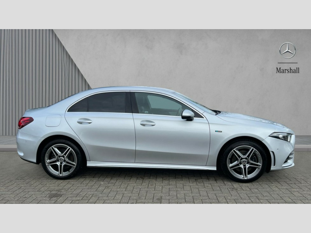Mercedes-Benz A Class A250e AMG Line Premium 4dr Auto 10.25" Digital instrument cluster display screen, 10.25" media display, 180 degree rear view camera with parking guidelines, Acoustic ambient protection, Active lane keep assist, Active park assist with parktronic system including front and rear parking sensors, Attention assist, Brake pad wear indicator warning light, Car wash mode, Cruise control + speed limiter, Direct steering, Dual bluetooth interfaces, DYNAMIC SELECT with a choice of driving modes (ECO, Comfort, Sport and Individual), ECO start/stop function, Fluid level warning indicator for fuel, oil, coolant and washer fluid, Hard-disk navigation, Hey Mercedes Voice activation, Lamp failure indicator, MBUX augmented reality for navigation, Mercedes me connect including emergency call system, accident recovery, breakdown and maintenance management, Outside temperature gauge, Owners manual in English, Pre-installation for private car sharing, Pre-installation for Vehicle Monitoring, Pre-installation for Vehicle Setup, Preinstallation for Mercedes Benz link, Service indicator (ASSYST), Smartphone integration with Apple CarPlay and Android auto, Speed sensitive power steering, Trip computer, Wireless charging, 7.4 kW monophase on board charger, Comfort suspension, Mode 3 charging cable 11 kW, Rear axle multi-link, 10 speakers, 2 USB ports (type C) in rear stowage compartment and one in front of center console, DAB Digital radio, MBUX multimedia system with DAB digital radio and touchpad including satellite navigation, Mercedes-Benz advanced sound system - 225W, 4 Electric Front and Rear windows, Adaptive brake lights, AMG bodystyling - Front apron with splitter in chrome, rear apron with chrome trim and chrome visible trim elements in tailpipe, Black weather strip, Body colour bumpers, Body colour door handles, Body colour side skirt, Body coloured door mirrors, Chrome beltline trim, Diamond radiator grille with chrome pins and silver louvre + chrome insert, Electric adjustable and heated door mirrors with integrated LED side indicators, EQ badging, Exhaust system - Twin visible tailpipes in polished stainless steel, Headlamp assist automatic headlamp activation, Heated glass rear windscreen + timer control, Illuminated front door sill panels with Mercedes-Benz lettering, LED high performance headlamps with integrated LED daytime running lights, LED tail lamp, LED third brake light, Privacy glass, Radio aerial, Rain sensing windscreen wipers with two sensitivity settings, Rear fog lights, Window line trim strip in chrome, 3 Spoke flat bottom leather multi function steering wheel with perforated leather in grip area, 40:20:40 split folding rear seats, Artico man-made leather/Microfibre Dinamica upholstery with red contrast stitching, Auto Mercedes-Benz child seat recognition sensor, Black air vents with surround in silver chrome, Black roof lining, Brushed stainless steel sports pedals with rubber studs, Charging socket, Controller on centre console with chrome surround, Floor mats with stitched edging and AMG lettering, Front centre armrest with storage compartment, Front seat backs luggage nets, Front seat cushion length adjustment, Front sports seats with adjustable head restraints, Galvanished gear shift paddles on steering wheel, Heated front seats, Height/reach adjustable steering column, Interior lighting - 64 colour Ambient lighting, Interior mirror with reading lamps in black and frameless, Manual height adjustable front seats, Pre-entry climate control, Rear armrest with 2 cupholders, Rear head restraints, Seat occupancy sensor for front passenger seat, Stowage compartment in centre console with retractable cover, Sunvisors with illuminated vanity mirrors, Touchpad on center console, Twin front cupholders, Two zone thermotronic luxury automatic climate control, Light and sight pack - A Class, Mirror package - A Class, Seat comfort pack - A Class, 3 rear 3 point seatbelts, ABS with Brake Assist, Active bonnet, Active brake assist includes forward collision warning system with autonomous braking, Adaptive brake assist with hold function and hill start assist, Black seatbelts, Childproof locks manually operated for rear doors and electrically operated for rear power windows, Crash responsive emergency lighting, Driver and passenger head and side airbags, Drivers knee airbag, Dual stage driver/passenger airbags, Electronic parking brake, ESP curve dynamic assist, ESP with ASR, Front and rear seatbelt reminder, Front brake callipers with Mercedes Benz lettering, ISOFIX and top tether child seat fixing points in two outer rear seats, Perforated front brake discs, Radar based regeneration, Tyre pressure monitoring system, Warning triangle and first aid kit, Window airbags, Alarm system/interior protection/immobiliser, Keyless entry lock/unlock, Keyless Go, Remote central locking and crash sensor with emergency opening function, Urban guard vehicle protection system with immobiliser and interior protection, Light aluminium with longitudinal grain interior trim, 18" AMG 5 twin spoke light alloy wheels in titanium grey with highsheen finish, Summer tyres, Tirefit sealant kit