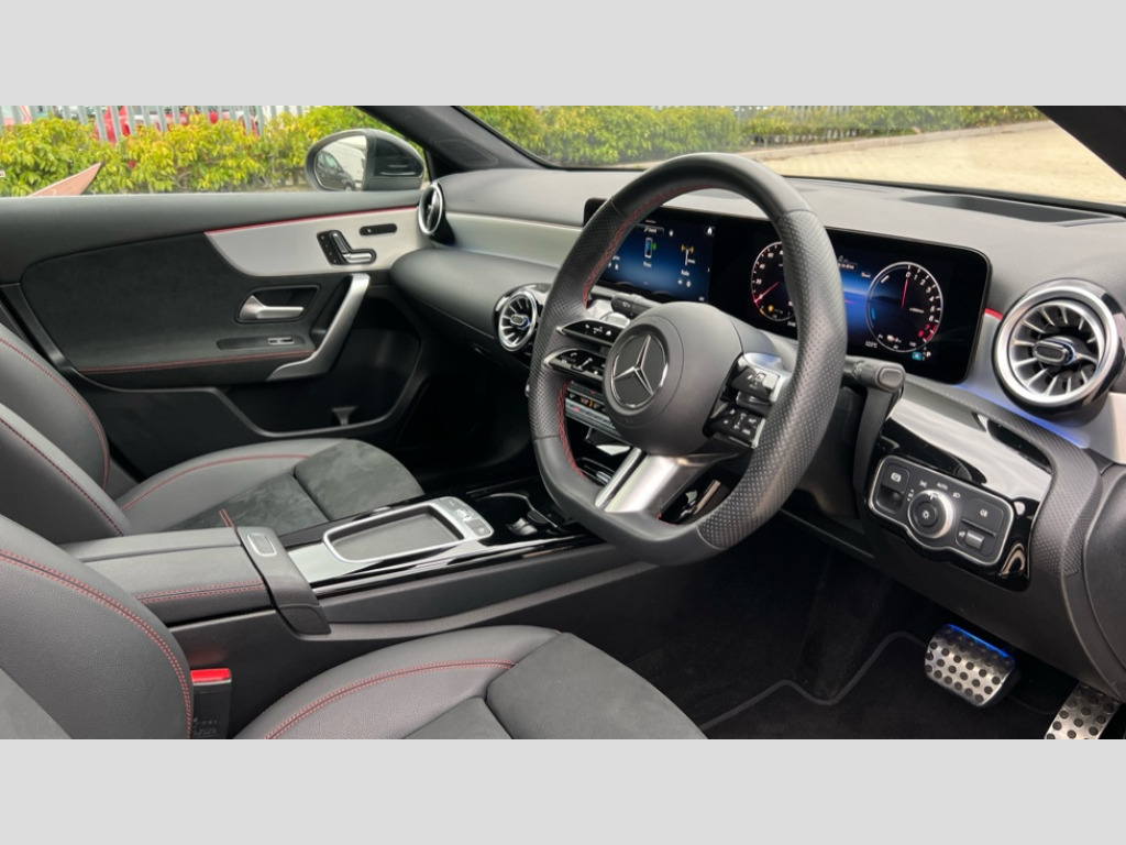 Mercedes-Benz A Class A250e AMG Line Premium Plus 4dr Auto 10.25 inch touchscreen central media display, 10.25" Digital instrument cluster display screen, Acoustic ambient protection, Attention assist, Brake pad wear indicator warning light, Car wash mode, Direct steering, Direction indicators with lane change function, Dual bluetooth interfaces, DYNAMIC SELECT with a choice of driving modes (ECO, Comfort, Sport and Individual), ECO start/stop function, Engine start/stop button, Fluid level warning indicator for fuel, oil, coolant and washer fluid, Hard-disk navigation, Head up Display, Hey Mercedes Voice activation, Lamp failure indicator, MBUX augmented reality for navigation, MBUX Interior assistant, Mercedes me connect including emergency call system, accident recovery, breakdown and maintenance management, Mercedes me remote services, Outside temperature gauge, Owners manual in English, Pre-installation of private car share, Preinstallation for Mercedes Benz link, Remote and charging services plus, Remote boot closing, Service indicator (ASSYST), Smartphone integration with Apple CarPlay and Android auto, Speed limit assist, Speed sensitive power steering, Trip computer in multifunction display with current consumption indicator, Wireless charging, Charging system - AC charging system rated at 11kW, Lowered comfort suspension, Mode 2 charging cable for domestic socket with 5m up to 1.8kW, Mode 3 charging cable for wallbox and public charging stations with 4m upto 22 kW, DAB Digital radio, MBUX multimedia system, Mercedes Benz advanced sound system (225 W) with 10 speakers, 1 central speaker, speakers on doors, a tweeter on door,one sub woofer + boost amplifier, 4 Electric Front and Rear windows, Adaptive brake lights, AMG body styling - AMG front apron with front splitter and AMG rear apron and visible exhaust tailpipe trim elements, Body colour bumpers, Body colour door handles with chrome inserts, Body colour side skirt, Body coloured door mirrors, Chrome beltline strips, Diamond radiator grille with pins in fine star pattern, Electric adjustable and heated door mirrors with integrated LED side indicators, Exhaust system with 2 visible tailpipe trim elements and rear apron, Headlamp assist automatic headlamp activation, Heat insulating dark tinted rear and rear side windows, Heated glass rear windscreen + timer control, LED daytime running lights, LED tail lamp, Multibeam LED headlamps with adaptive highbeam assist and cornering function, Panoramic sliding sunroof, Privacy glass, Radio aerial, Rain sensing windscreen wipers with two sensitivity settings, Rear boot, Rear fog lights, Rear side wing doors, Third brake light featuring LED technology, Window line trim strip in chrome, 3 seat bench in 2nd row, 3 Spoke flat bottom leather multi function steering wheel with perforated leather in grip area, 40:20:40 split folding rear seats, Automatic child seat recognition sensor, Black air vents with surround in silver chrome, Black roof lining, Brushed stainless steel sports pedals with rubber studs, Charging socket, Electrically adjustable front memory seats including lumbar support and backrest inclination, Floor mats with AMG lettering, Front centre armrest with stowage, Front seat backs luggage nets, Front sports seats with adjustable head restraints, Galvanished gear shift paddles on steering wheel, Heated front seats, Height/reach adjustable steering column, Illuminated Mercedes Benz lettering front door sills with changeable cover, Interior lighting - 64 colour Ambient lighting, Interior mirror with reading lamps in black and frameless, Pre-entry climate control, Rear armrest with 2 cupholders, Seat occupancy sensor for front passenger seat, Single front passenger seat, Stowage compartment in centre console with retractable cover, Sunvisors with illuminated vanity mirrors, Twin front cupholders, Two zone thermotronic luxury automatic climate control, Keyless go comfort pack - A Class, Light and sight pack - A Class, Mirror package - A Class, Parking pack with 360 degree camera - A Class, Seat comfort pack - A Class, USB pack plus - A Class, 3 rear 3 point seatbelts, ABS with Brake Assist, Active bonnet, Adaptive brake assist with hold function and hill start assist, Black seatbelts, Bonnet with power domes, Childproof locks manually operated for rear doors and electrically operated for rear power windows, Crash responsive emergency lighting, Driver and passenger head and side airbags, Drivers knee airbag, Dual stage driver/passenger airbags, Electronic parking brake, ESP curve dynamic assist, ESP with ASR, Front and rear seatbelt reminder, ISOFIX and top tether child seat fixing points in two outer rear seats, Perforated front brake discs, Radar based regeneration, Tyre pressure monitoring system, Warning triangle and first aid kit, Window airbags, Alarm system/interior protection/immobiliser, Guard 360 degree vehicle protection, Remote central locking and crash sensor with emergency opening function, Light longitudinal grain aluminium trim, 19" AMG multi-spoke light alloy wheels,aerodynamically optimised, painted in titanium grey with high sheen finish, Summer tyres, Tirefit sealant kit