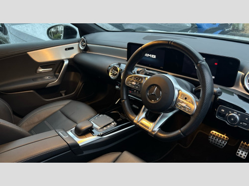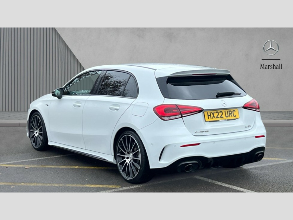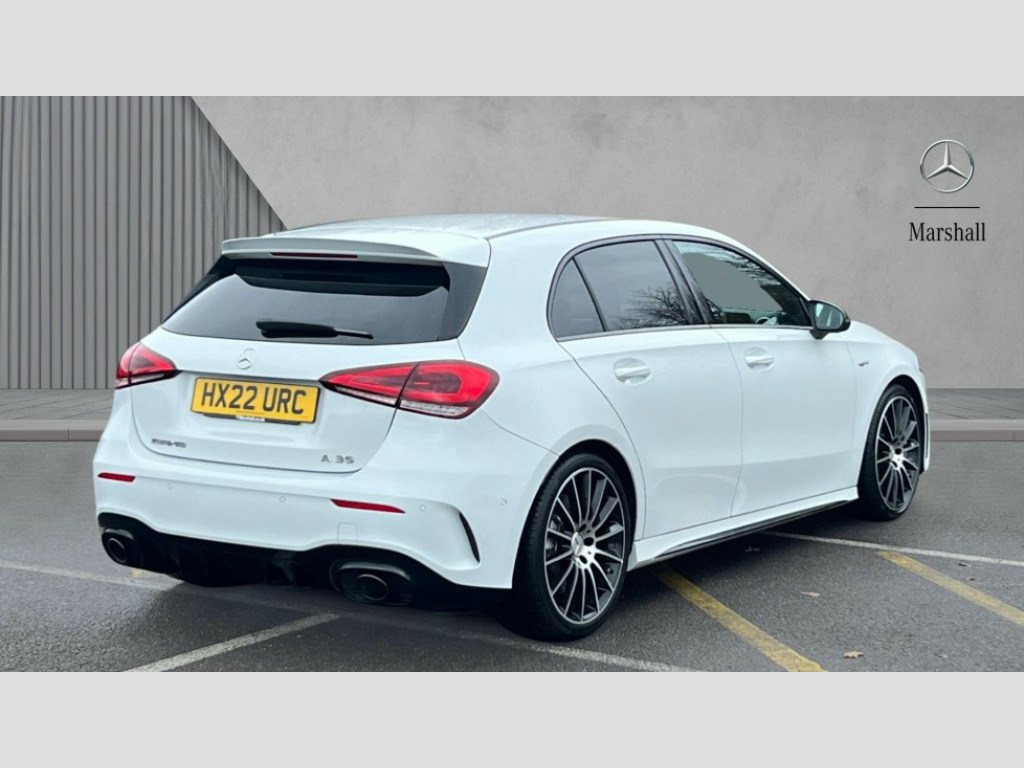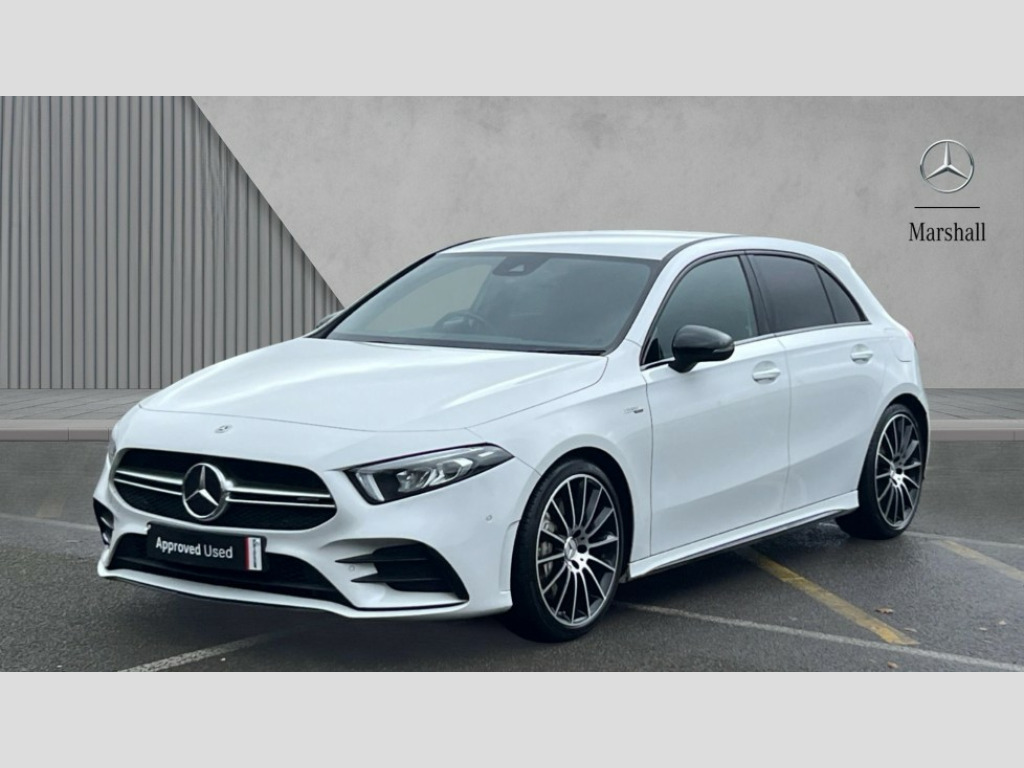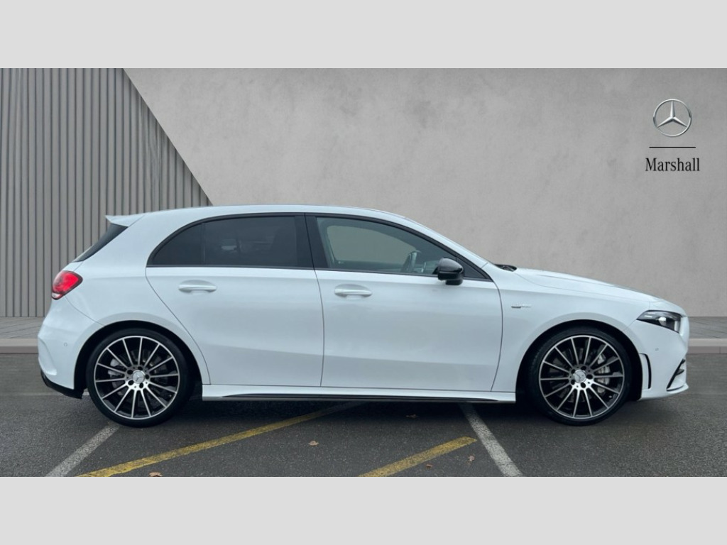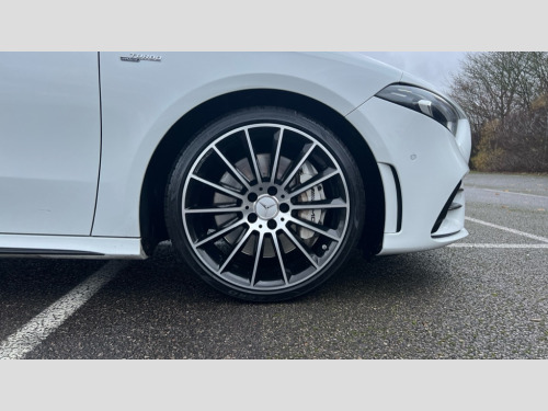 Mercedes-Benz A Class A35 4Matic Executive Edition 5dr Auto 10.25" media display, 180 degree rear view camera with parking guidelines, 7" colour screen in instrument panel, Active parking assist with visual and audible warning of detected obstacles, Attention assist, Brake pad wear indicator warning light, Car wash mode, Cruise control + speed limiter, Direct steering, Dual bluetooth interfaces, DYNAMIC SELECT with driving programs (Slippery, Comfort, Sport, Sport+ and Individual), ECO start/stop function, Fluid level warning indicator for fuel, oil, coolant and washer fluid, Hard-disk navigation, Hey Mercedes Voice activation, Lamp failure indicator, Lane keeping system, Mercedes me connect including emergency call system, accident recovery, breakdown and maintenance management, Mercedes me remote services, Outside temperature gauge, Owners manual in English, Pre-installation for private car sharing, Preinstallation for Mercedes Benz link, Service indicator (ASSYST), Smartphone integration with Apple CarPlay and Android auto, Speed sensitive power steering, Trip computer, Ultrasonic sensors positioned in the front and rear bumpers, AMG performance suspension, Rear axle multi-link, 2 USB ports (type C) in rear stowage compartment and one in front of center console, 6 speakers, DAB Digital radio, MBUX multimedia system with DAB digital radio and touchpad including satellite navigation, Mercedes-Benz sound system - 100W, 4 Electric Front and Rear windows, Adaptive brake lights, AMG bodystyling - Front apron with splitter in chrome, rear apron with chrome trim and chrome visible trim elements in tailpipe, AMG Front apron with flics as air deflector elements on the outer air intakes, AMG radiator grille with twin blade lamella and AMG Lettering, AMG Rear apron with specific diffuser look with four vertical fins and two round chrome plated tailpipe trim elements with a diameter of 90 mm, AMG spoiler lip on roof, AMG Sports exhaust system with two round tailpipes measuring 90 mm in diameter attached in rear apron, AMG lettering plus ribbing on the inside of the, Automatic headlights, Black weather strip, Body colour bumpers, Body colour door handles, Body colour side skirt, Body coloured door mirrors, Electric adjustable and heated door mirrors with integrated LED side indicators, Front wings wheel arches with TURBO 4MATIC lettering, Headlamp assist automatic headlamp activation, Heated glass rear windscreen + timer control, High gloss black beltline, LED High level third brake light, LED high performance headlamps with integrated LED daytime running lights, LED tail lamp, Privacy glass, Radio aerial, Rain sensing windscreen wipers with two sensitivity settings, Rear fog lights, Rear side wing doors, Rear wiper, Trim elements on louvres in outer air inlets in high gloss black, Wider wheel arches for AMG wheels, Window line trim strip in high gloss black, 3 seat bench in 2nd row, 40:20:40 split folding rear seats, AMG Performance steering wheel in nappa leather, Auto Mercedes-Benz child seat recognition sensor, Black air vents with surround in silver chrome, Black roof lining, Brushed stainless steel sports pedals with rubber studs, Controller on centre console with chrome surround, Floor mats with stitched edging and AMG lettering, Front centre armrest with storage compartment, Front door sills with AMG lettering, Front seat backs luggage nets, Front seat cushion length adjustment, Heated front seats, Height/reach adjustable steering column, Interior lighting - 64 colour Ambient lighting, Interior mirror with reading lamps in black and frameless, Manual height adjustable front seats, Rear head restraints, Seat occupancy sensor for front passenger seat, Silver coloured aluminium gear shift paddles on steering wheel, Single front passenger seat, Sports seats with integrated headrests, Stowage compartment in centre console with retractable cover, Sunvisors with illuminated vanity mirrors, Touchpad on center console, Twin front cupholders, Two zone thermotronic luxury automatic climate control, AMG night pack - A Class, Light and sight pack - A Class, Mirror package - A Class, Seat comfort pack - A Class, 3 rear 3 point seatbelts, ABS with Brake Assist, Active bonnet, Active brake assist includes forward collision warning system with autonomous braking, Adaptive brake assist with hold function and hill start assist, Black seatbelts, Childproof locks manually operated for rear doors and electrically operated for rear power windows, Crash responsive emergency lighting, Driver and passenger head and side airbags, Drivers knee airbag, Dual stage driver/passenger airbags, Electronic parking brake, ESP curve dynamic assist, ESP with ASR, Front and rear seatbelt reminder, Front brake calipers with AMG lettering, ISOFIX and top tether child seat fixing points in two outer rear seats, Perforated front brake discs, Tyre pressure monitoring system, Warning triangle and first aid kit, Window airbags, Alarm system/interior protection/immobiliser, Keyless Go, Remote central locking and crash sensor with emergency opening function, Urban guard vehicle protection system with immobiliser and interior protection, Light aluminium with longitudinal grain interior trim, 19" AMG multi-spoke high gloss black painted light alloy wheels with high sheen finish, Summer tyres, Tirefit sealant kit
